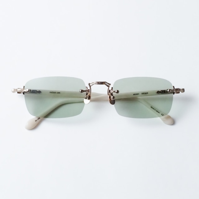 Brand : MATSUDA Model : M5009 Size : 52 □ 22 – 145 Color : BG-MW VIP店舗限定で展開される特別仕様の「M5009」。 削ぎ落とされた美しさと繊細な装飾性を融合させた、リムレス仕様のスクエアフレーム。 レンズには淡いグリーンカラーを採用。視界に柔らかなニュアンスをもたらすと同時に、表情全体に涼やかで知的な印象を添えます。 テンプルにはオフホワイトカラーを配し、クリーンで上品なアクセントに。 そこに組み合わされるブラッシュゴールドのメタルパーツが、柔らかな光沢で全体を引き締めます。 随所に施された精緻な彫金は、確かな存在感と奥行きを与えています。 控えめでありながらも、細部にまで美意識が行き届いた一本。 限定30本のみのモデル。 付属するギャランティカードには和紙を使用し、一点ごとにシリアルナンバーを刻印されます。 ※シリアルナンバーは一点ごと異なり、選ぶことができません。あらかじめご了承ください。 ---------------------------------------------- 【MATSUDA】 ファッションブランド「NICOLE」の創設者であり、80年代に日本の“トップデザイナーシックス”(TD6)の一人として活躍したデザイナー、松田光弘氏によって1989年に設立された高級アイウェアブランド。 日本の職人技術と厳選された素材を組み合わせて作り出される美術品のような精緻なデザインが特徴。 海外映画でMATSUDAが使用されたことが人気に拍車をかけ、海外のセレブリティーやファッショニスタの間でカルト的な人気を誇った。その後、ブランドの一時休止を経て2011年に新たなデザインチームにより再始動を果たす。 スチームパンクを感じさせる精巧かつ重厚なデザインは、現在も世界中で高い評価を得るとともに、高級アイウェアブランドとして確固たる地位を築いている。