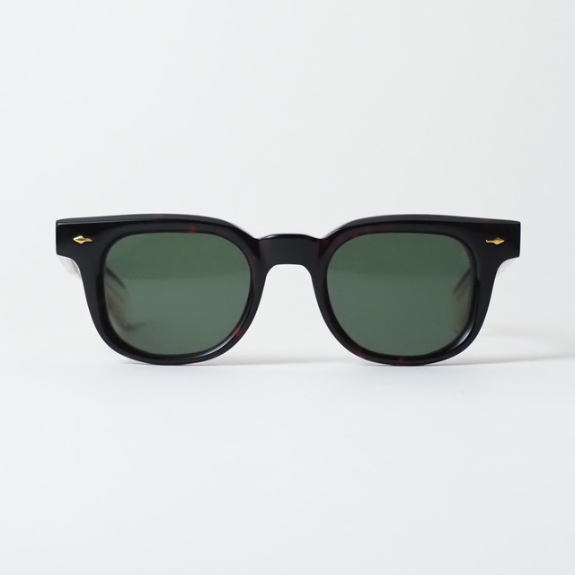 Brand : JACQUES MARIE MAGE Model : JAX Size : 48 □ 23 – 146 Color : Willow 20世紀を代表するアメリカの画家、ジャクソン・ポロックにちなんで名付けられたモデル。 1950年代のヴィンテージアイテムをオマージュしたデザインで、フロントからサイドにかけて太く力強いリムラインが特徴のウェリントンシェイプ。 10mm厚のアセテート生地を使用した、存在感のある一本。 ストレートのブロウラインや、落とし込んだブリッジによってシェイプの美しさを際立たせています。 また、キーホールブリッジなどのクラシカルなディテールも取り入れることで、ボリューム感がありながらもクセが少なく、掛けやすいスタイリッシュなデザインに仕上がっています。 ※模様や色味が実物と異なる場合がございます。あらかじめご了承ください。 ---------------------------------------------- 【Jacques Marie Mage】 2015年にアメリカ・ロサンゼルスにて設立されたアイウェアブランド。創業者でありクリエイティブディレクターを務めるジェローム・マージュ(Jérôme Mage)は、フランス出身のインダストリアルデザイナー。時計、ジュエリー、モトライド、建築、写真などの造詣を背景に、20世紀の美学と現代的な感性を融合させた独自の世界観を築いている。 フレームは日本の福井県鯖江市にて熟練の職人によって少量生産されており、 アセテートの切削・研磨からチタンパーツの加工、手作業によるリベットの打ち込みに至るまで、伝統技術と最新テクノロジーの融合がその完成度を支えている。 JMMのアイウェアは、限られた数量のみ生産される「エディション制」を採用しており、すべてにシリアルナンバーが刻印されており、この希少性とオーセンティックな造形美によって世界中の眼鏡愛好家から熱烈な支持を集めている。
