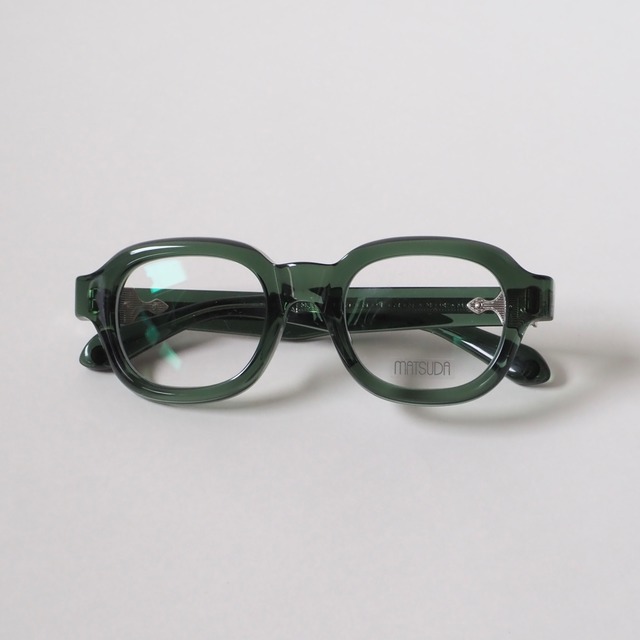 Brand : MATSUDA Model : M1028 Size : 47 □ 25 – 145 49 □ 23 – 145 Color : BGN ※写真は49サイズになります。予めご了承ください。 MATSUDAの太セルフレームM1028。 丸みのあるウェリントンシェイプでかっちりしすぎない落ち着いた雰囲気に。 DNC(ボトルグリーン)カラー 10mmの厚さのアセテートを使用。 丁番には7枚丁番を使用。 テンプルの芯金、丁番などメタル素材の随所にMATSUDAならではの繊細な彫金も必見。 ---------------------------------------------- 【MATSUDA】 ファッションブランド「NICOLE」の創設者であり、80年代に日本の“トップデザイナーシックス”(TD6)の一人として活躍したデザイナー、松田光弘氏によって1989年に設立された高級アイウェアブランド。 日本の職人技術と厳選された素材を組み合わせて作り出される美術品のような精緻なデザインが特徴。 海外映画でMATSUDAが使用されたことが人気に拍車をかけ、海外のセレブリティーやファッショニスタの間でカルト的な人気を誇った。その後、ブランドの一時休止を経て2011年に新たなデザインチームにより再始動を果たす。 スチームパンクを感じさせる精巧かつ重厚なデザインは、現在も世界中で高い評価を得るとともに、高級アイウェアブランドとして確固たる地位を築いている。