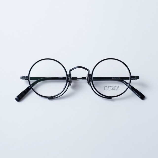 Brand : MATSUDA Model : 10103H-i Size : 43 □ 28 – 145 Color : BBK-BLK MATSUDAを代表する名作「10103H」をアップデートしたリニューアルモデルです。 鼻に挟んで使用する鼻眼鏡(フィンチ型眼鏡)から着想を得た構造は、MATSUDAならではの独創性を象徴するディテール。 ラウンドシェイプのメタルフレームにインナーリムを加えたことで、「10103H」と比べて輪郭がより際立ち、程よくカジュアルな印象がプラスされています。 テンプルやリム、ブリッジに至るまで、メタルパーツの随所にはMATSUDAならではの緻密な彫金が施され、工芸品のような存在感を放ちます。 クラシックとモダンが融合したこのモデルは、 MATSUDAのメガネの魅力を存分に味わいたい方におすすめの一本です。 ---------------------------------------------- 【MATSUDA】 ファッションブランド「NICOLE」の創設者であり、80年代に日本の“トップデザイナーシックス”(TD6)の一人として活躍したデザイナー、松田光弘氏によって1989年に設立された高級アイウェアブランド。 日本の職人技術と厳選された素材を組み合わせて作り出される美術品のような精緻なデザインが特徴。 海外映画でMATSUDAが使用されたことが人気に拍車をかけ、海外のセレブリティーやファッショニスタの間でカルト的な人気を誇った。その後、ブランドの一時休止を経て2011年に新たなデザインチームにより再始動を果たす。 スチームパンクを感じさせる精巧かつ重厚なデザインは、現在も世界中で高い評価を得るとともに、高級アイウェアブランドとして確固たる地位を築いている。