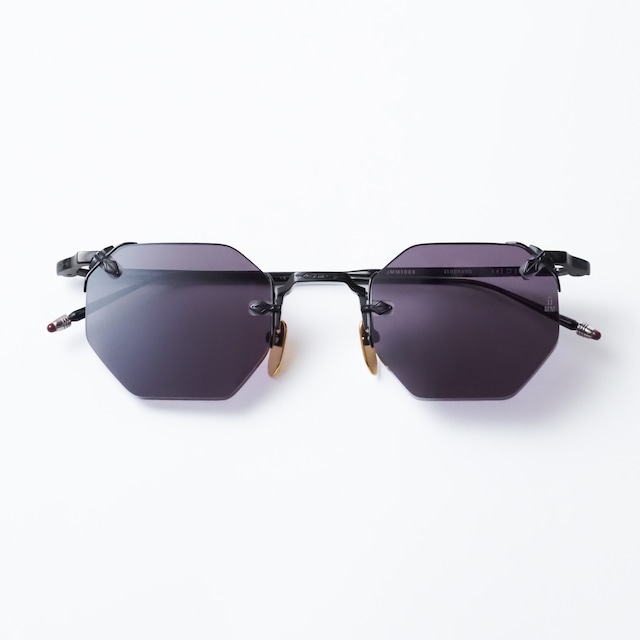 Brand : JACQUES MARIE MAGE Model : SARTRE Size : 49 □ 21 Color : NOIRⅩ サーモント特有の強さとJMMらしい造形が光るモデル「SARTRE」。 智に向かって徐々にボリュームを増していくブローラインは、 直線的ではなく、緩やかな抑揚を持たせることで、 重厚でありながらもどこか知的で、緊張感ある雰囲気を漂わせます。 リムには、約4mmにも及ぶ肉厚なメタルリムを採用。 フロント下部に明確な存在感を与えつつ、 レンズを縁取る金属のラインが全体を引き締めます。 メタルパーツはシルバーを基調としながら、 ブリッジ中央や細部にはゴールドの装飾をプラス。 控えめでありながらも確かな主張があり、 一般的なサーモントとは一線を画す、JMMならではのこだわりを感じさせます。 全体のバランスは非常に端正で、ボリュームのあるブローとシャープなメタルリム、JMMらしい装飾が拮抗し、 クラシックでありながら、モダンな空気を纏っています。 ---------------------------------------------- 【Jacques Marie Mage】 2015年にアメリカ・ロサンゼルスにて設立されたアイウェアブランド。創業者でありクリエイティブディレクターを務めるジェローム・マージュ(Jérôme Mage)は、フランス出身のインダストリアルデザイナー。時計、ジュエリー、モトライド、建築、写真などの造詣を背景に、20世紀の美学と現代的な感性を融合させた独自の世界観を築いている。 フレームは日本の福井県鯖江市にて熟練の職人によって少量生産されており、 アセテートの切削・研磨からチタンパーツの加工、手作業によるリベットの打ち込みに至るまで、伝統技術と最新テクノロジーの融合がその完成度を支えている。 JMMのアイウェアは、限られた数量のみ生産される「エディション制」を採用しており、すべてにシリアルナンバーが刻印されており、この希少性とオーセンティックな造形美によって世界中の眼鏡愛好家から熱烈な支持を集めている。
