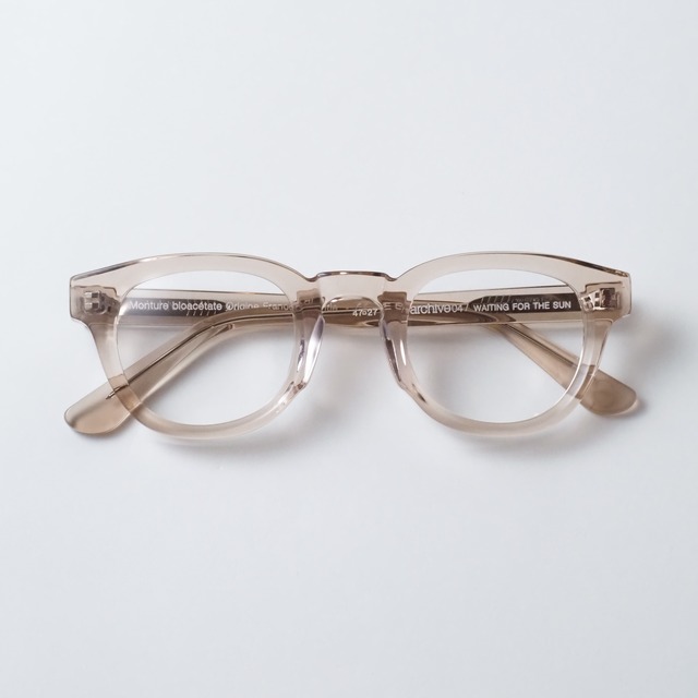Brand : /WAITING FOR THE SUN Model : archive04 Size : 47 □ 27 Color : E55 ---------------------------------------------- 【/WAITING FOR THE SUN】 グラフィック/ファッションの領域で活動していたAntoine Mocquard(アントワーヌ・モカール)とJulien Tual(ジュリアン・トゥアル)によって2010年に設立されたパリ発のサステナブルアイウェアブランド。 イタリアの老舗生地メーカー Mazzucchelli(マツケリ)社 が開発した「バイオアセテート」や/WAITING FOR THE SUNの独自開発素材「BOIS²(ボワ・ドゥ)」など植物由来の生地を使用して作られる。環境配慮とファッション性を両立したプロダクトが特徴のブランド。