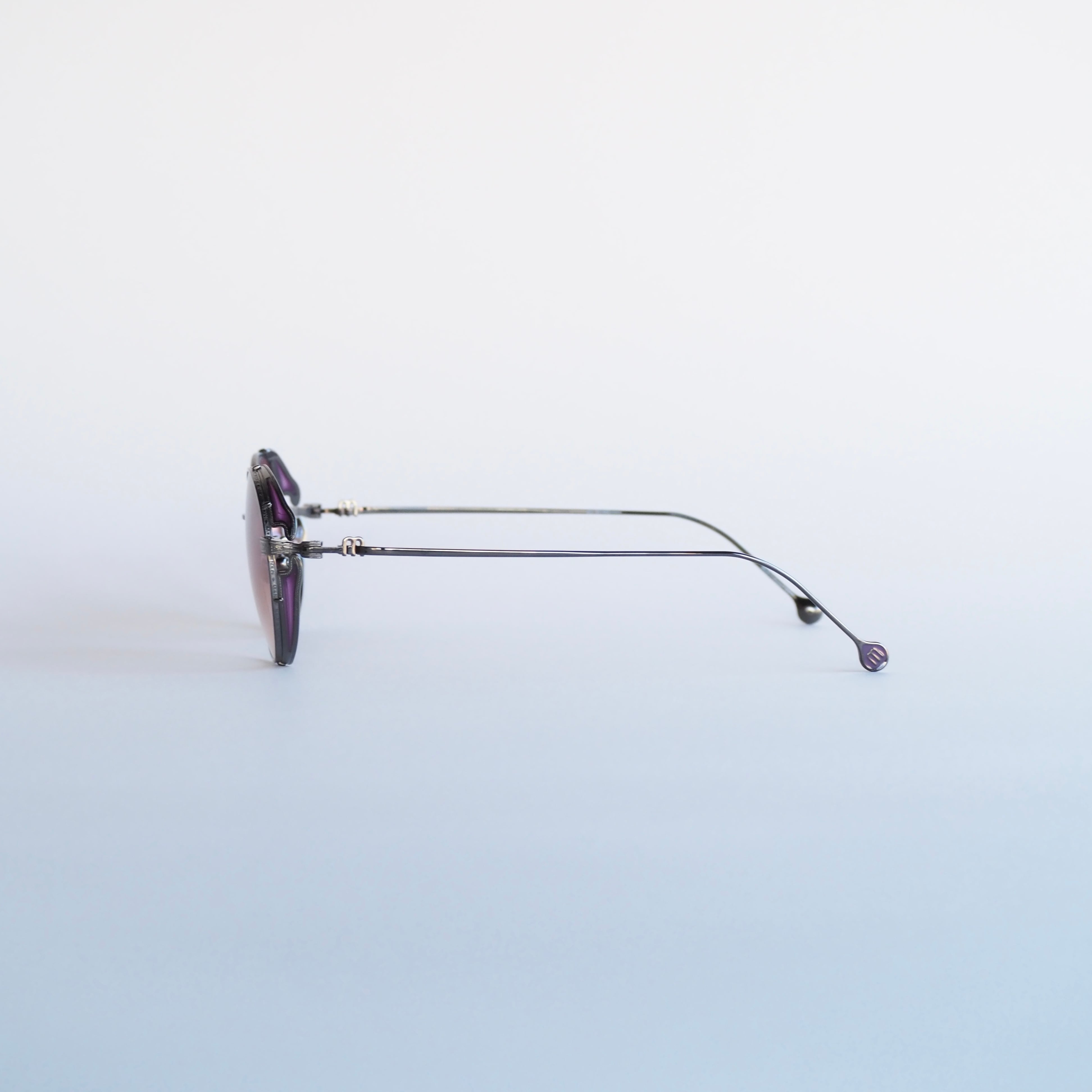 テンプルにはブランドロゴのイニシャル“M”のマークが立体的に絡み合うように配され、どの角度からもその意匠を楽しんでいただけます。