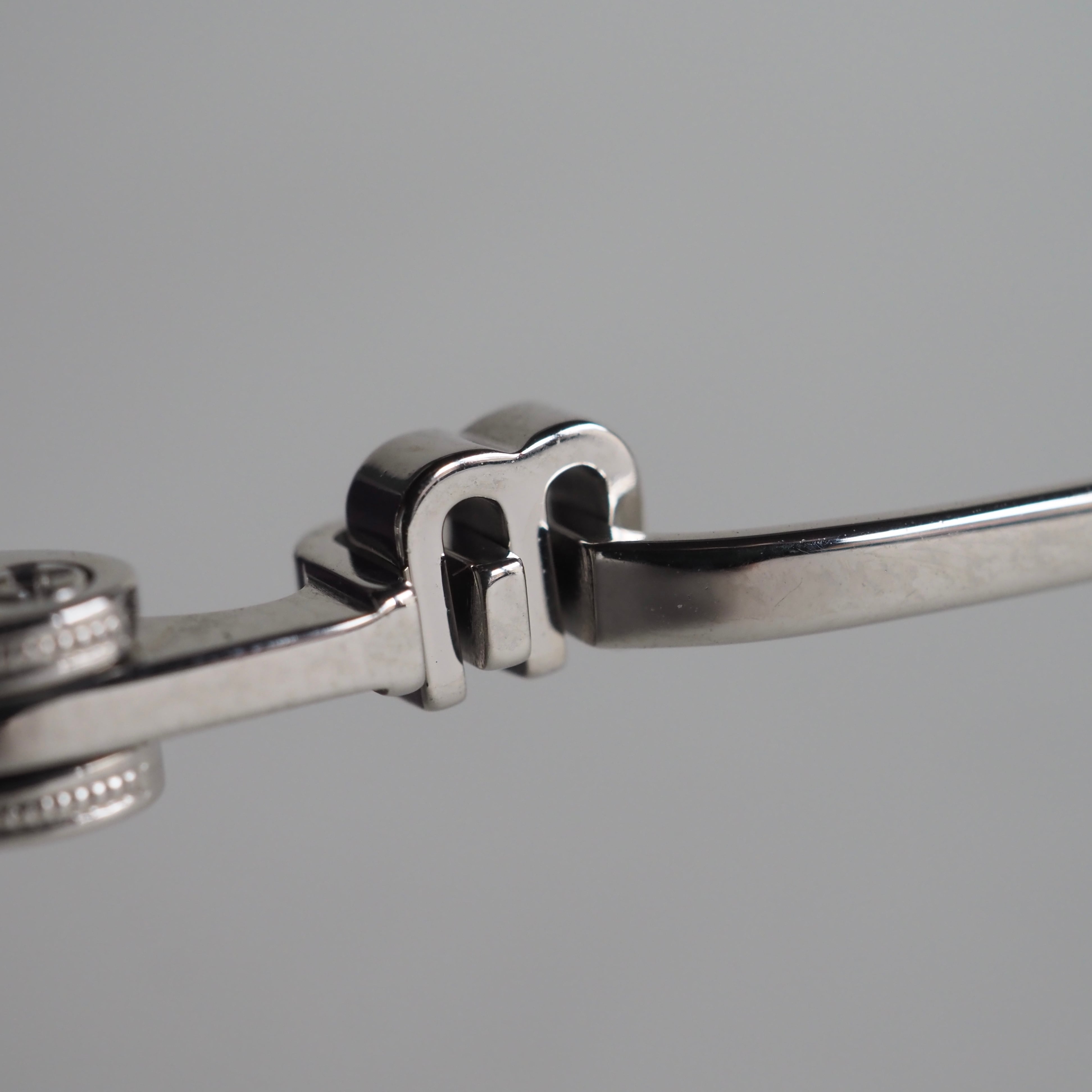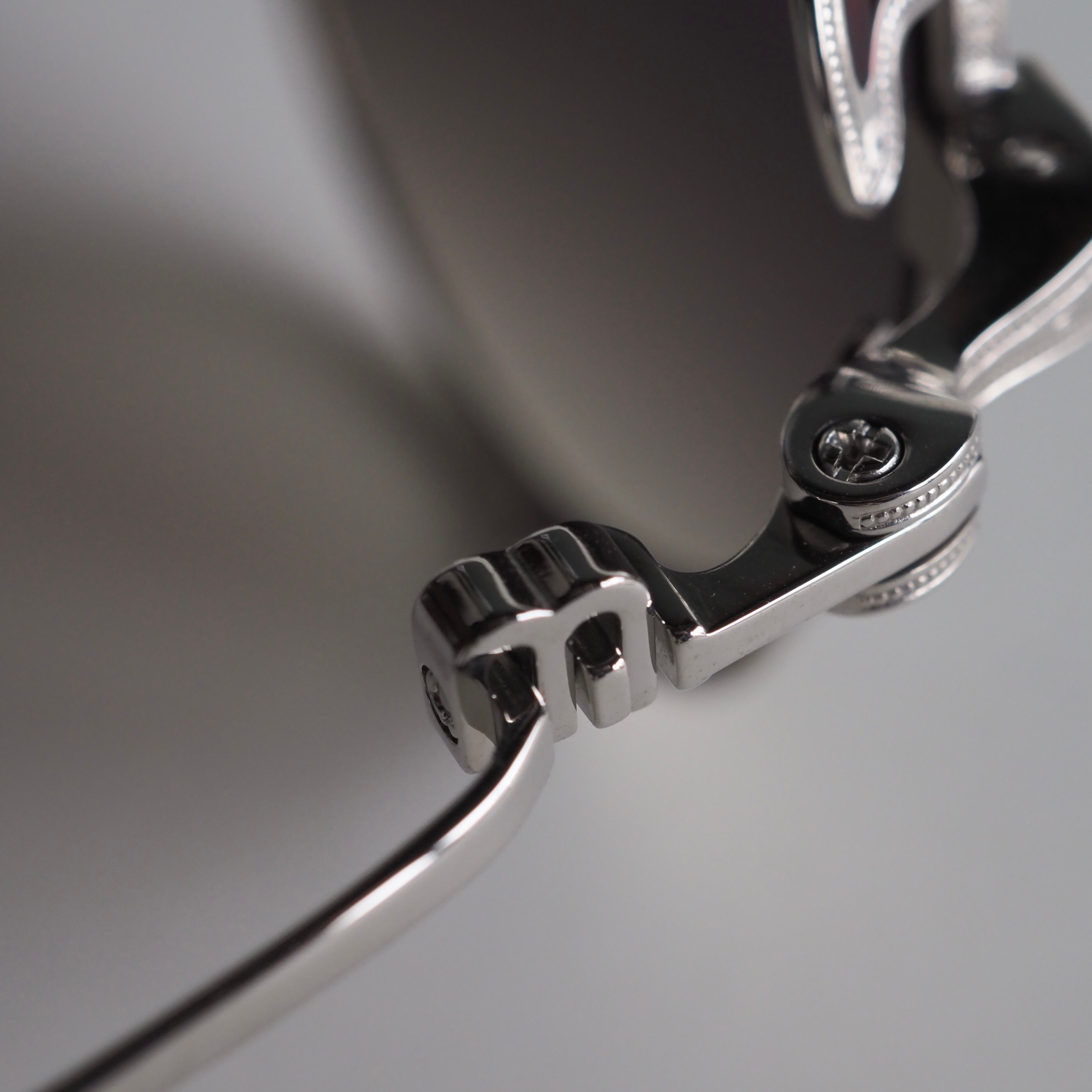 テンプルにはブランドロゴのイニシャル“M”のマークが立体的に絡み合うように配され、どの角度からもその意匠を楽しんでいただけます。