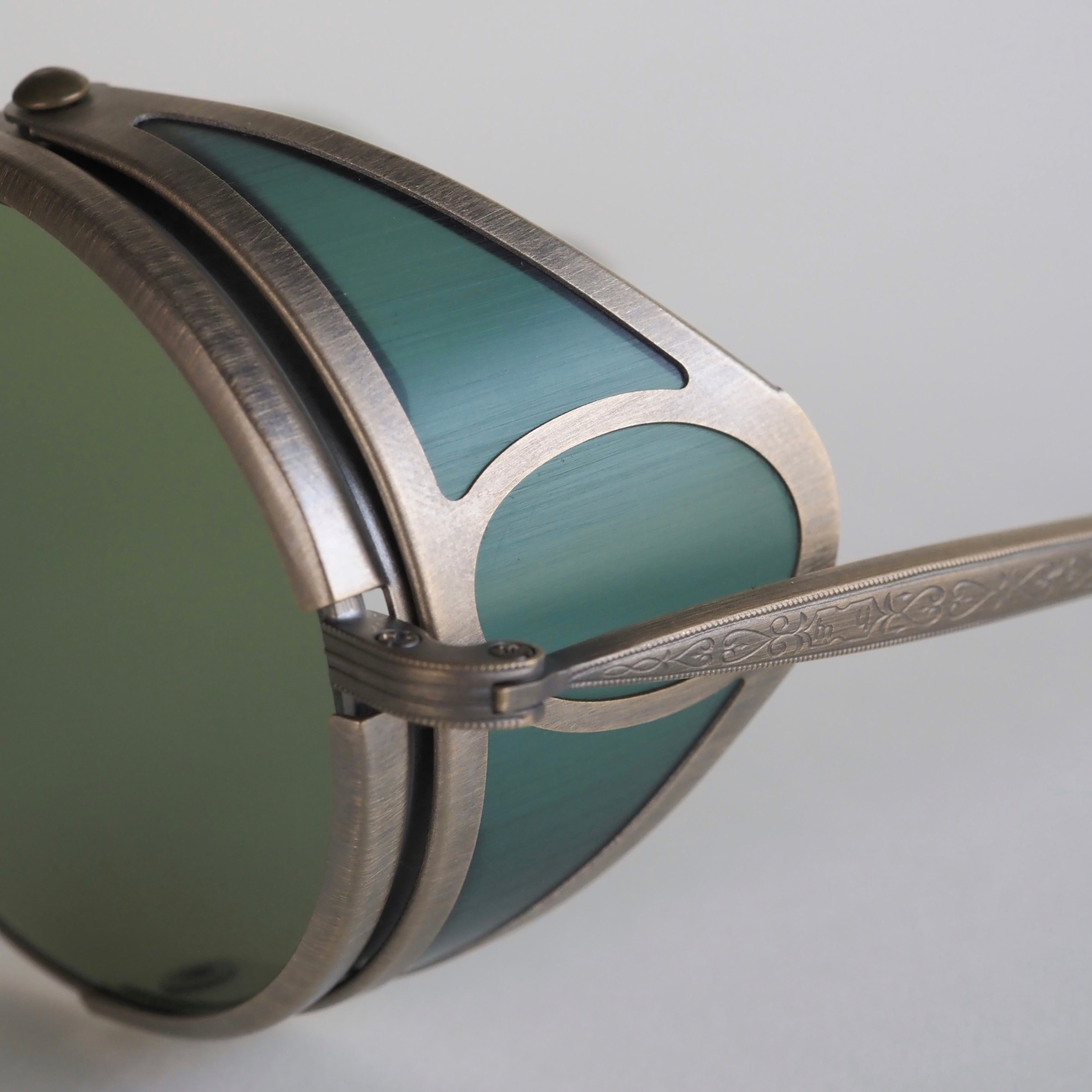 アンティークゴールドのフレームに、ボトルグリーンのパーツ(サイドシールド/モダン)を組み合わせた色鮮やかなカラーリング。