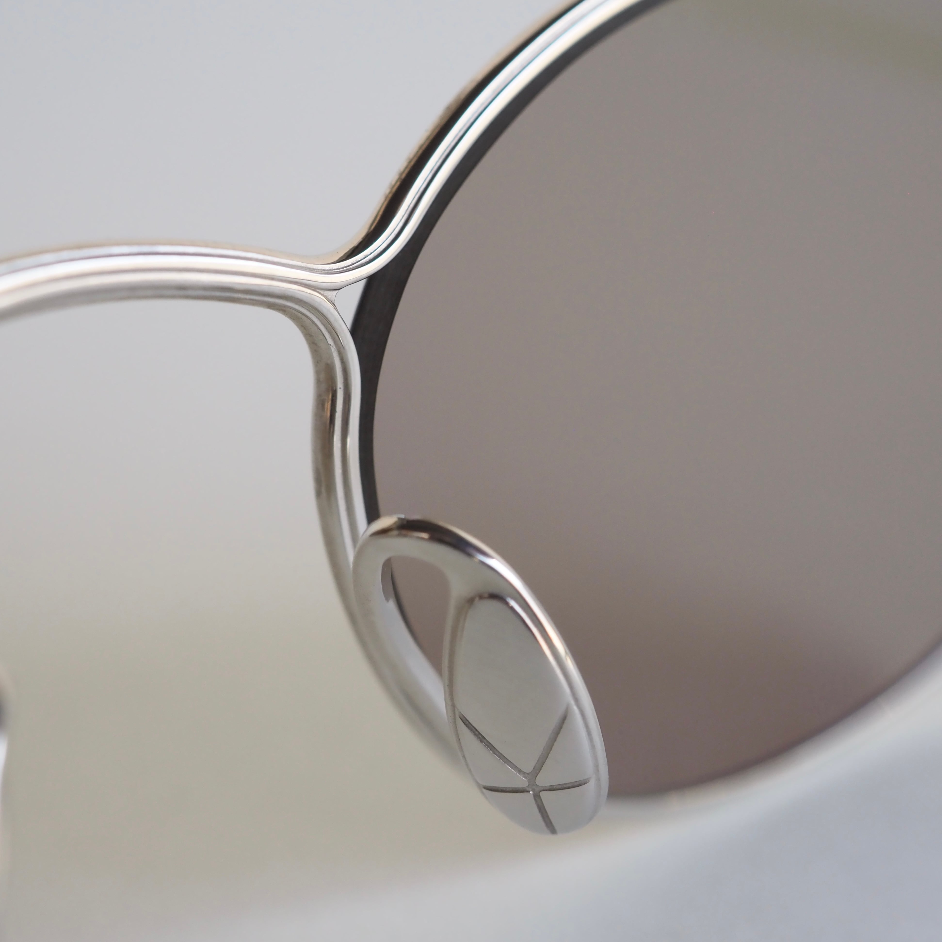 レンズはテンプルと同系色でまとめられ、上品な印象を際立たせています。