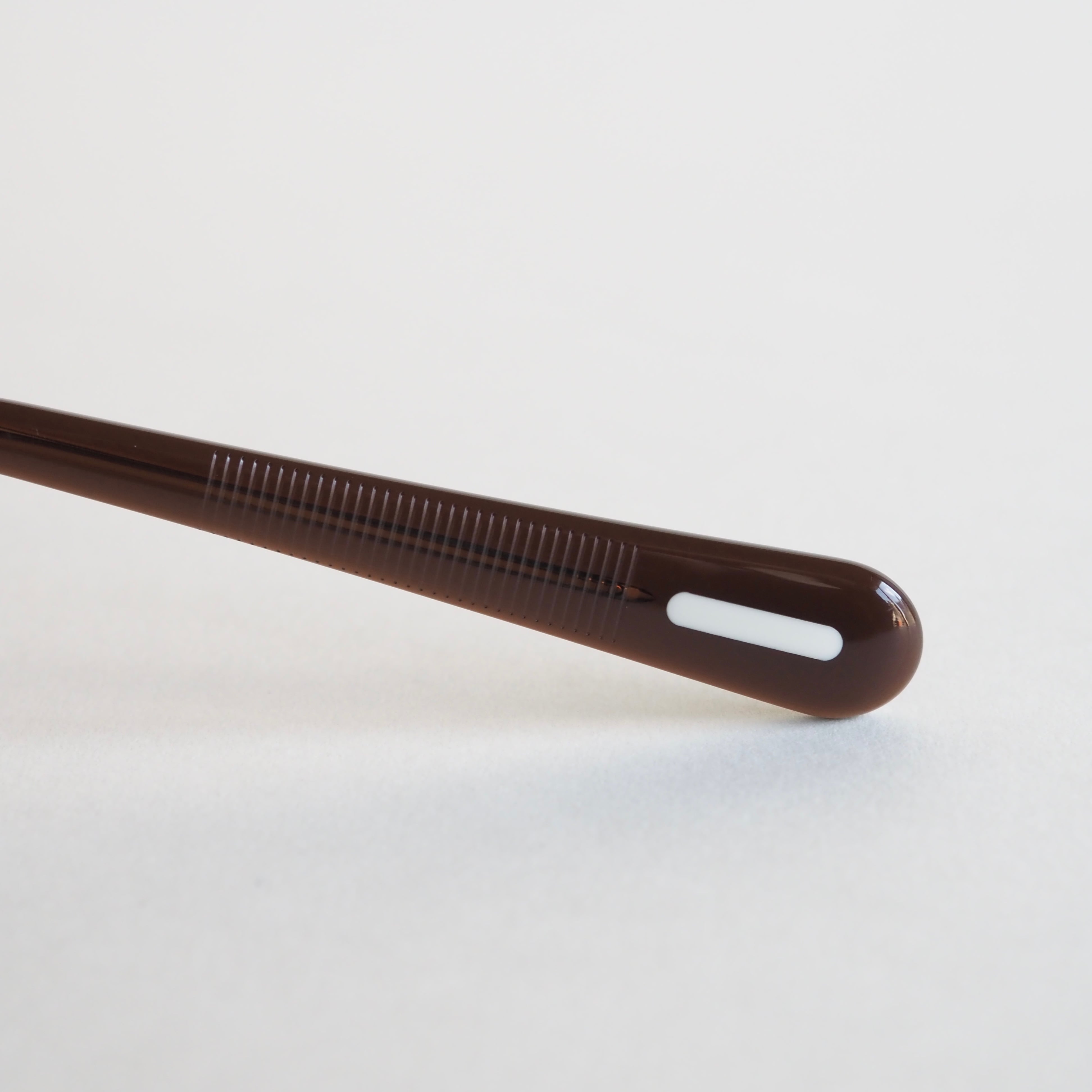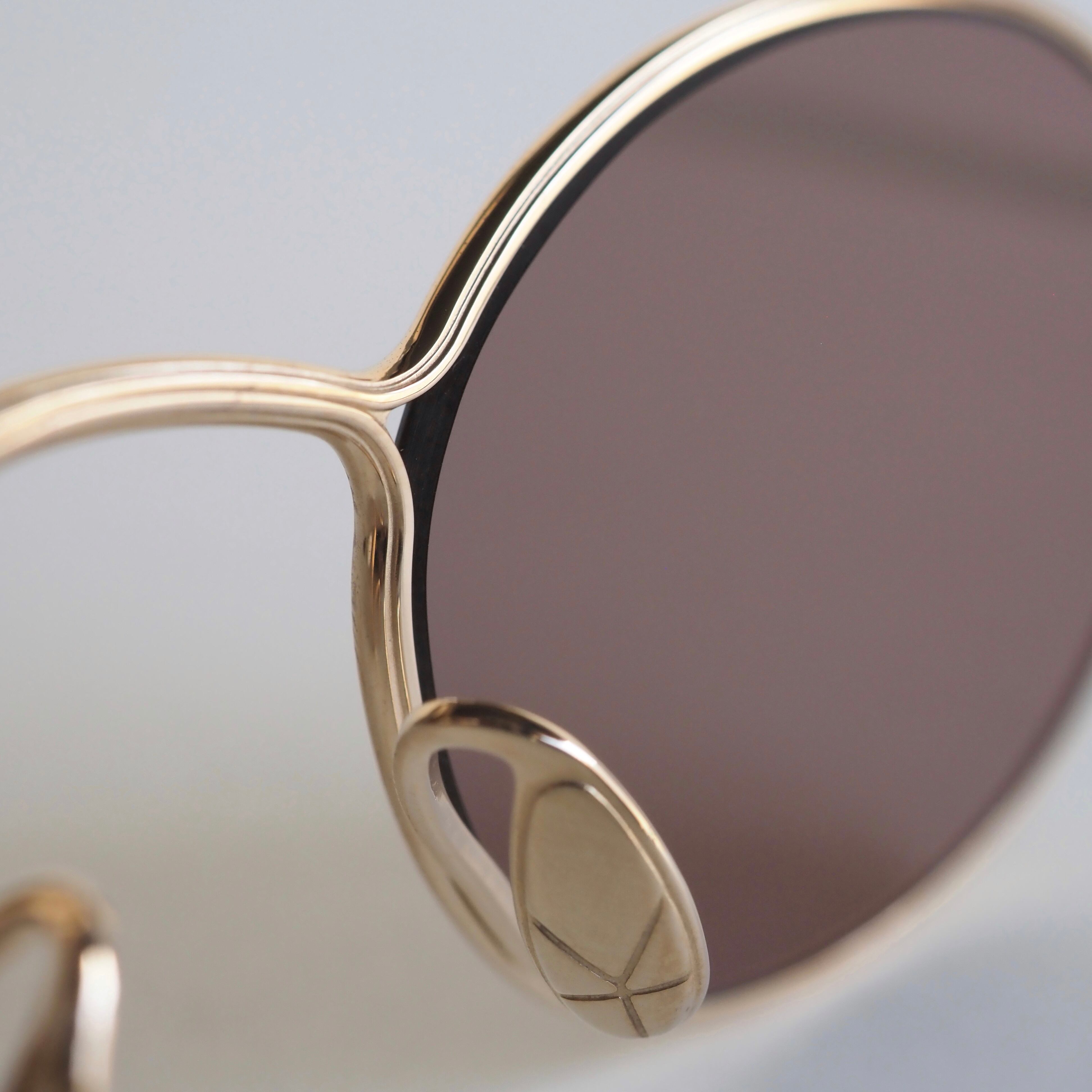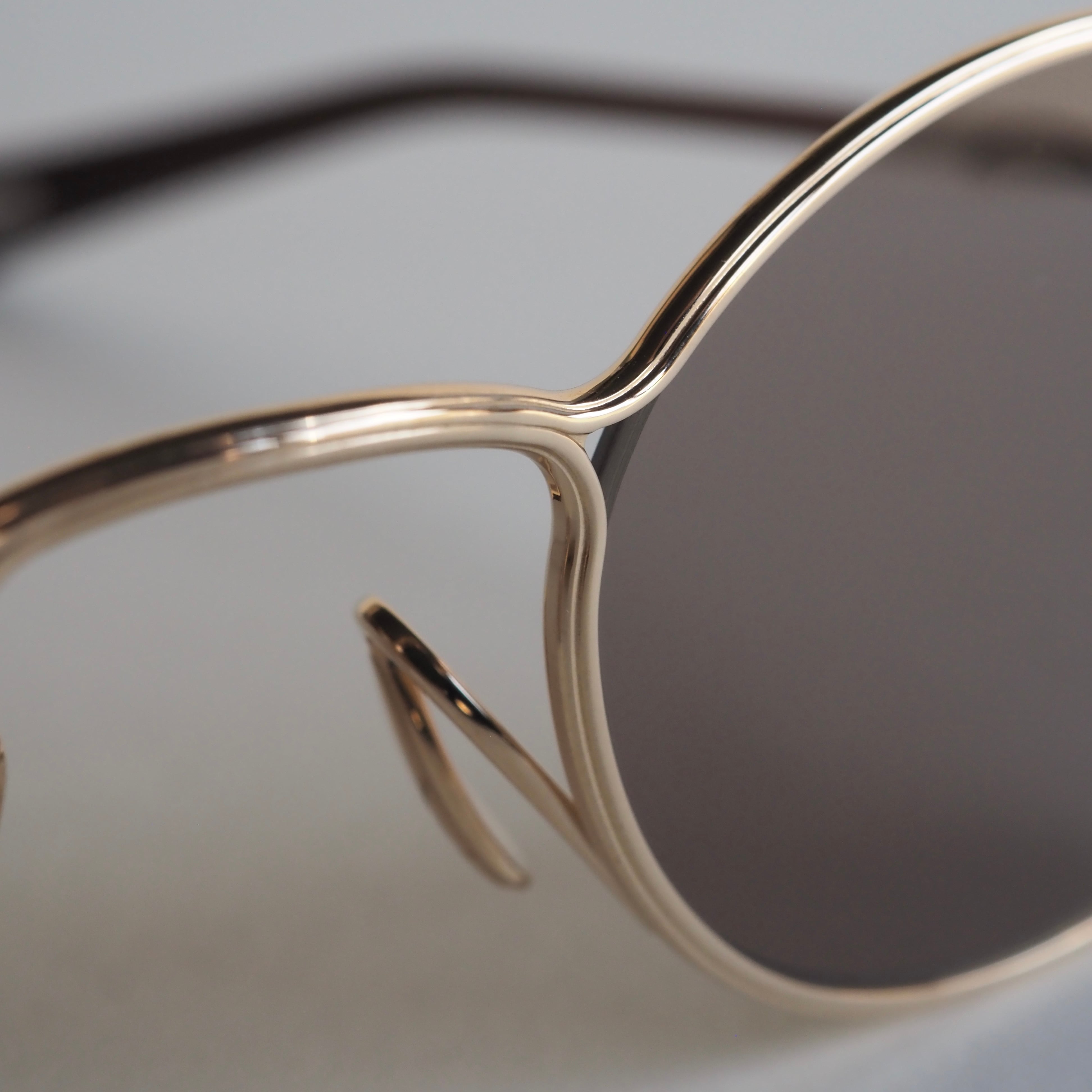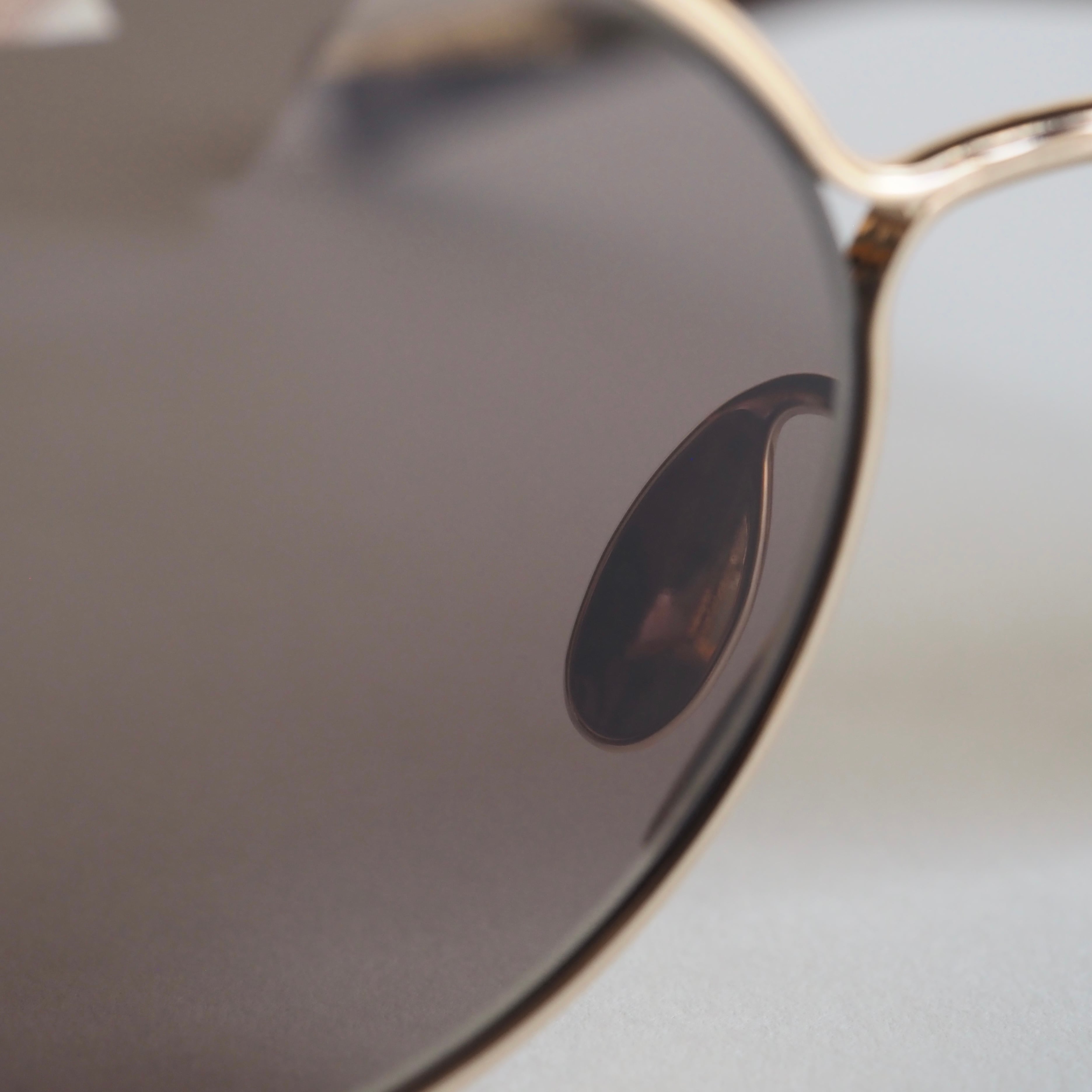 ダークブラウンのレンズは肌馴染みがよく、優しい品を感じます。