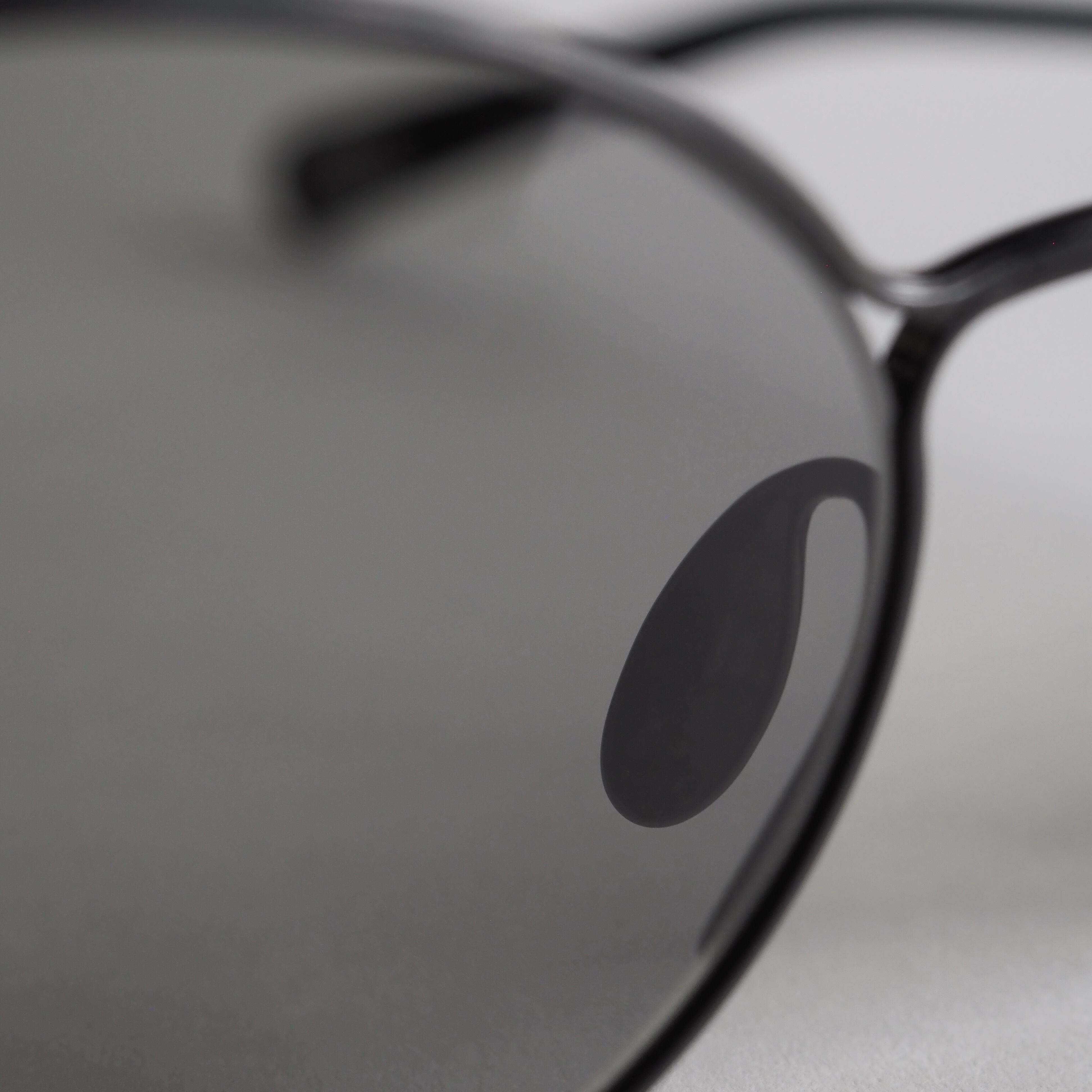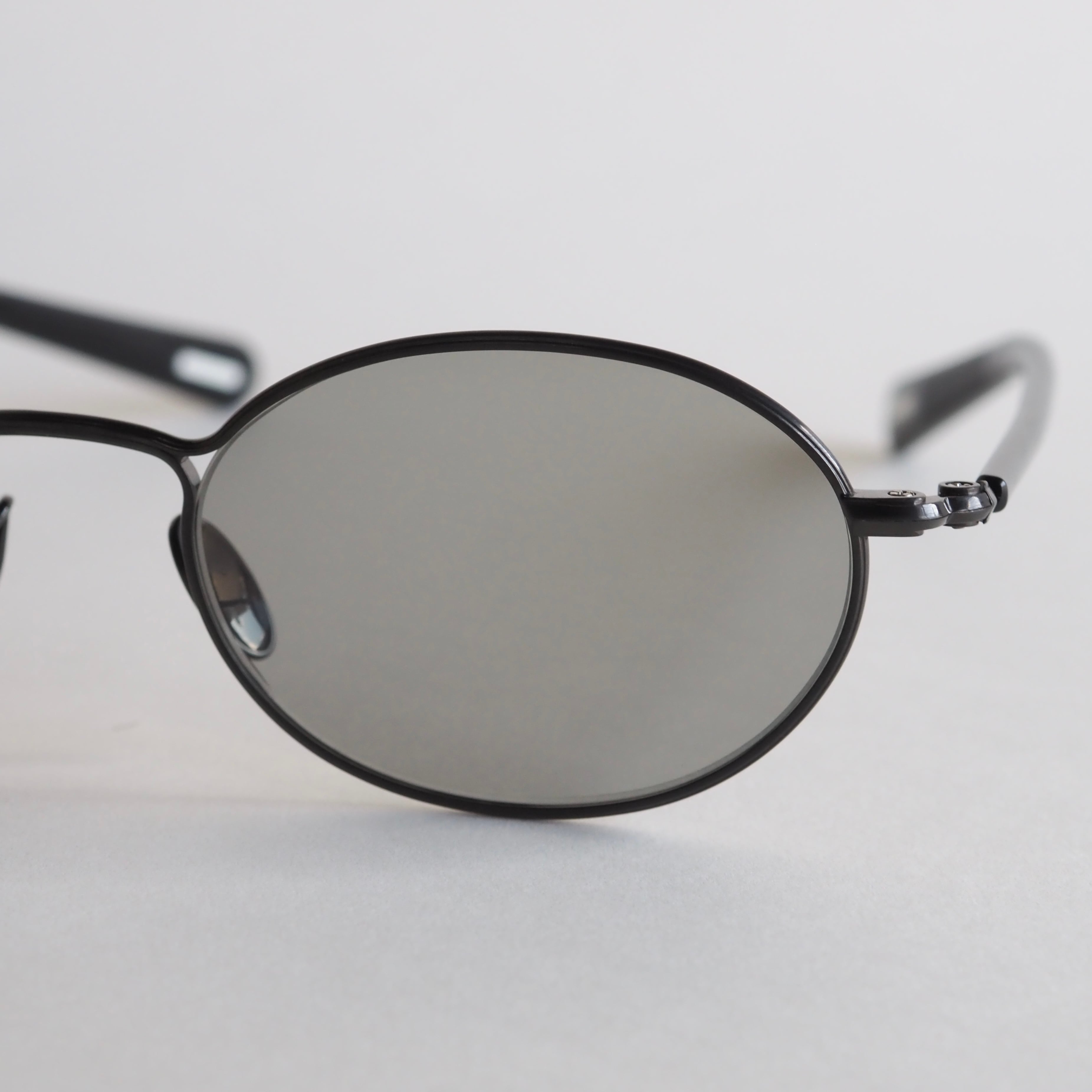 グレーのレンズが全体と調和し、ミニマルでありながら高級感を放っています。