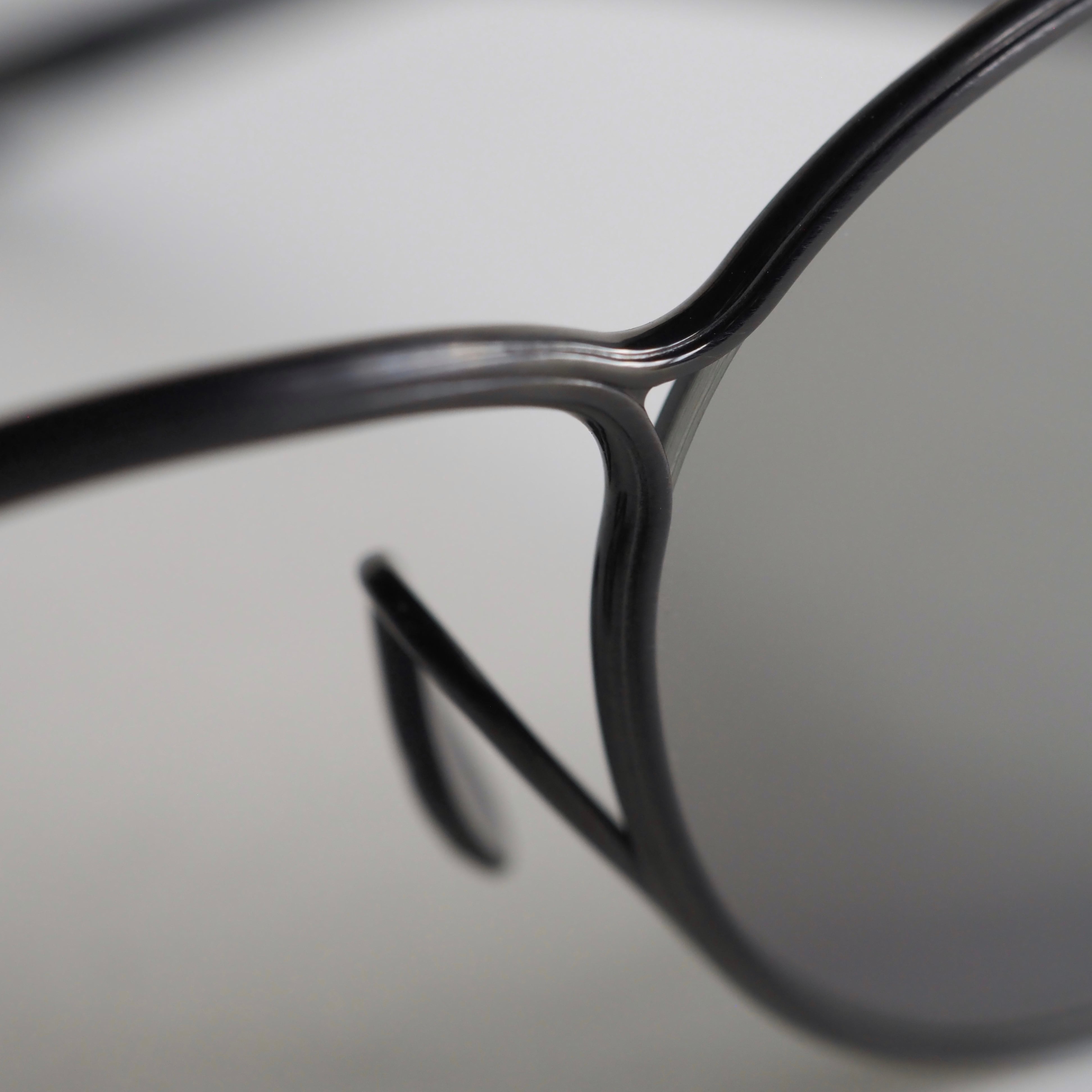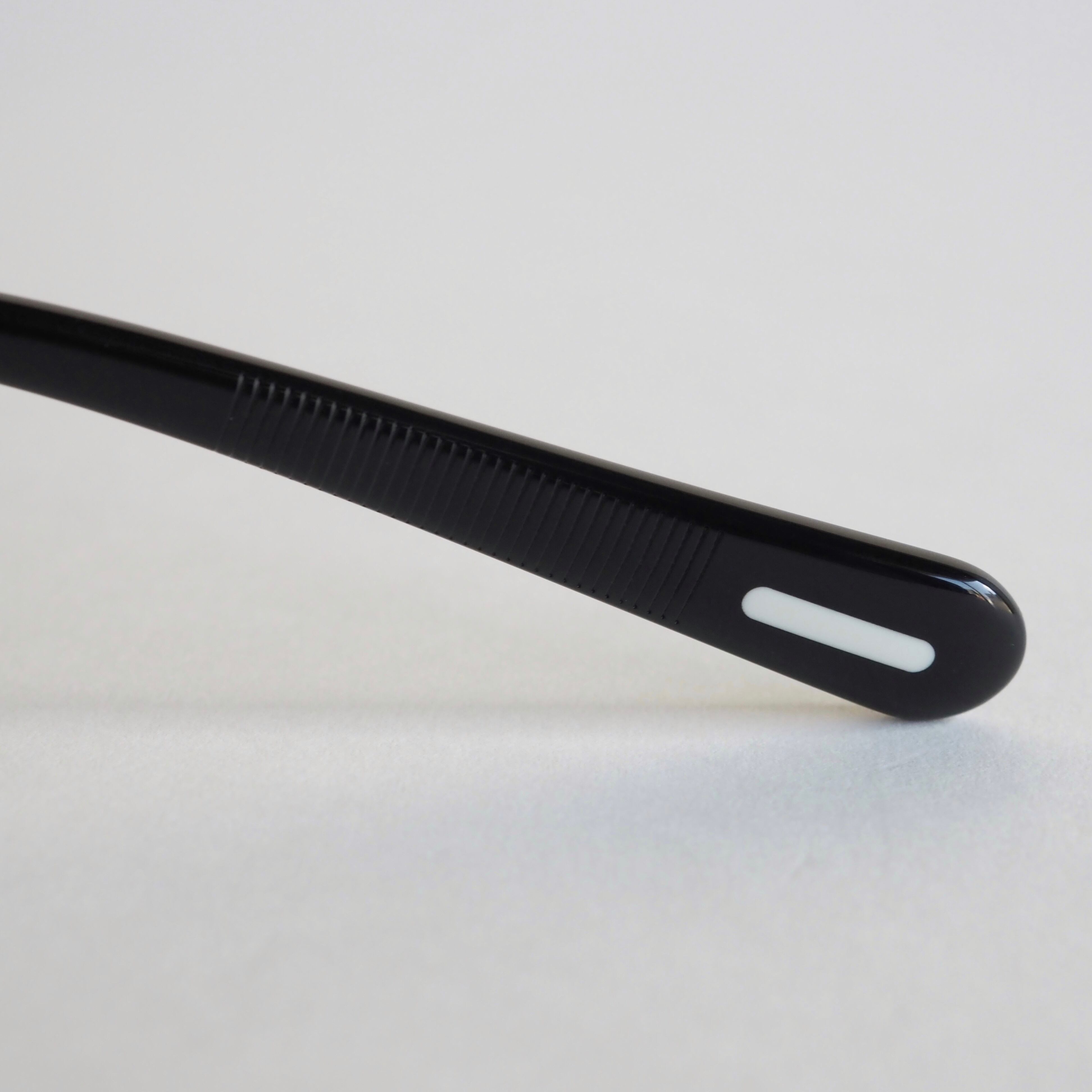 フロントはヘアライン仕上げのブラックになっており、テンプルとの質感の違いがフレーム全体に奥行きを持たせています。