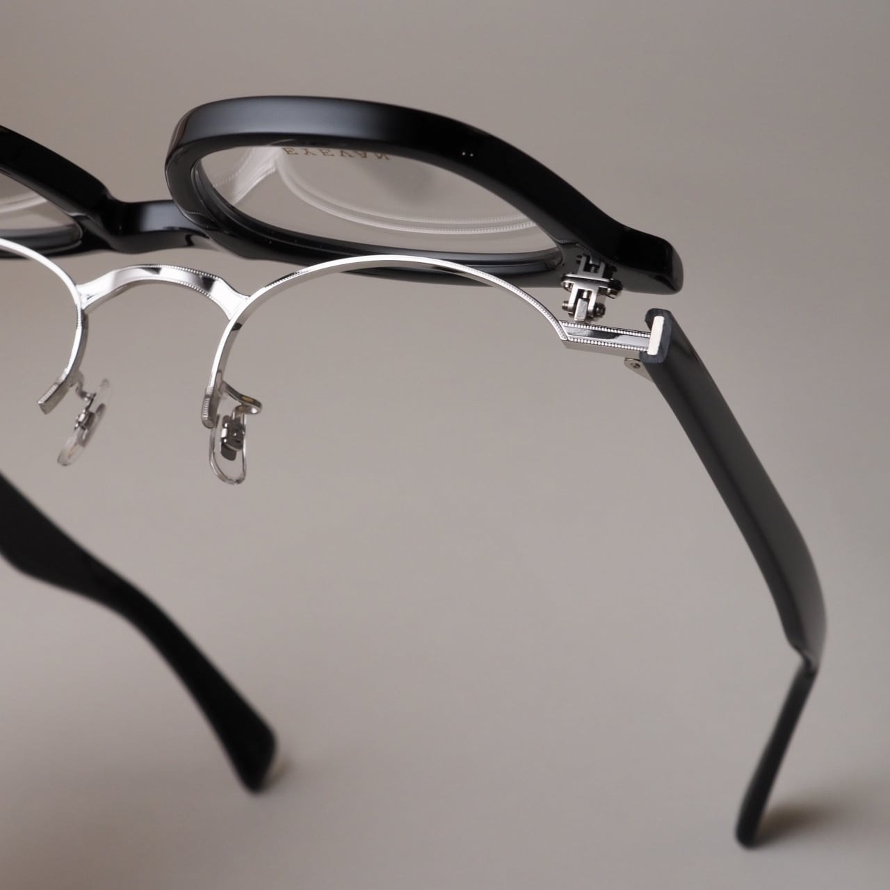 フレンチヴィンテージから着想を得た、エッジの効いた肉厚なフロントと極太のワイドテンプルを、EYEVAN流に再解釈したモデル『SADLER』。