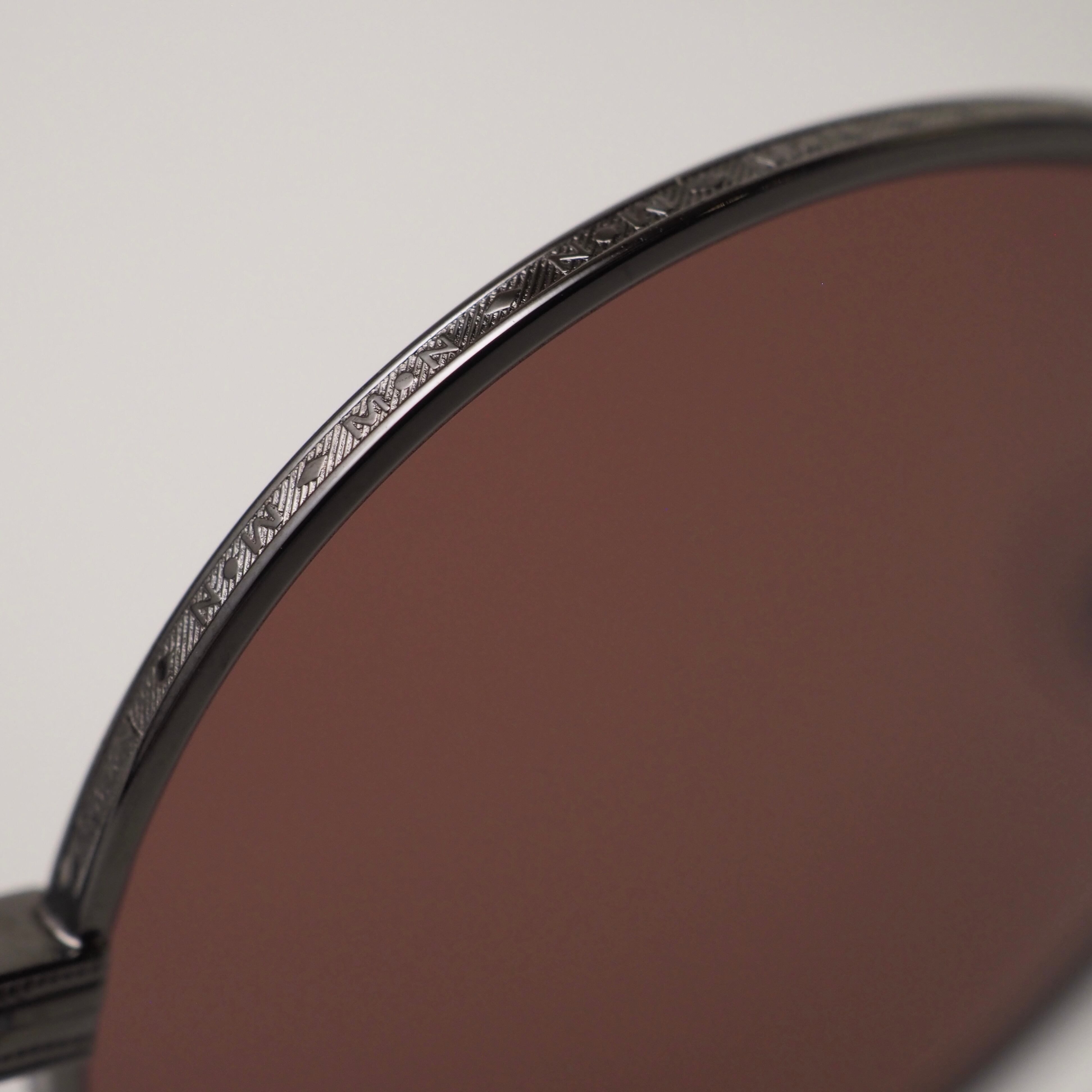リムやテンプルの繊細な彫金、唯一無二の存在感がでる一本。