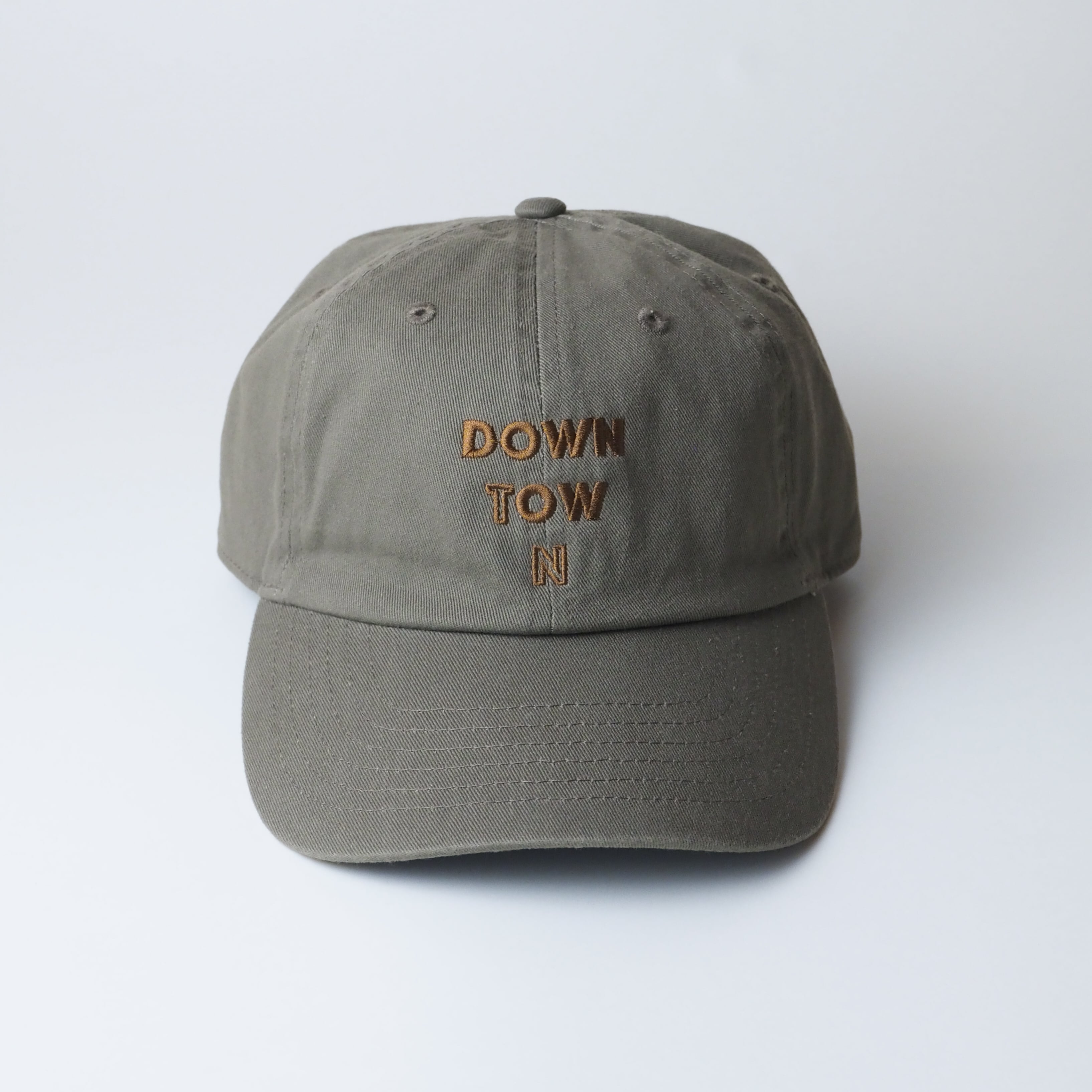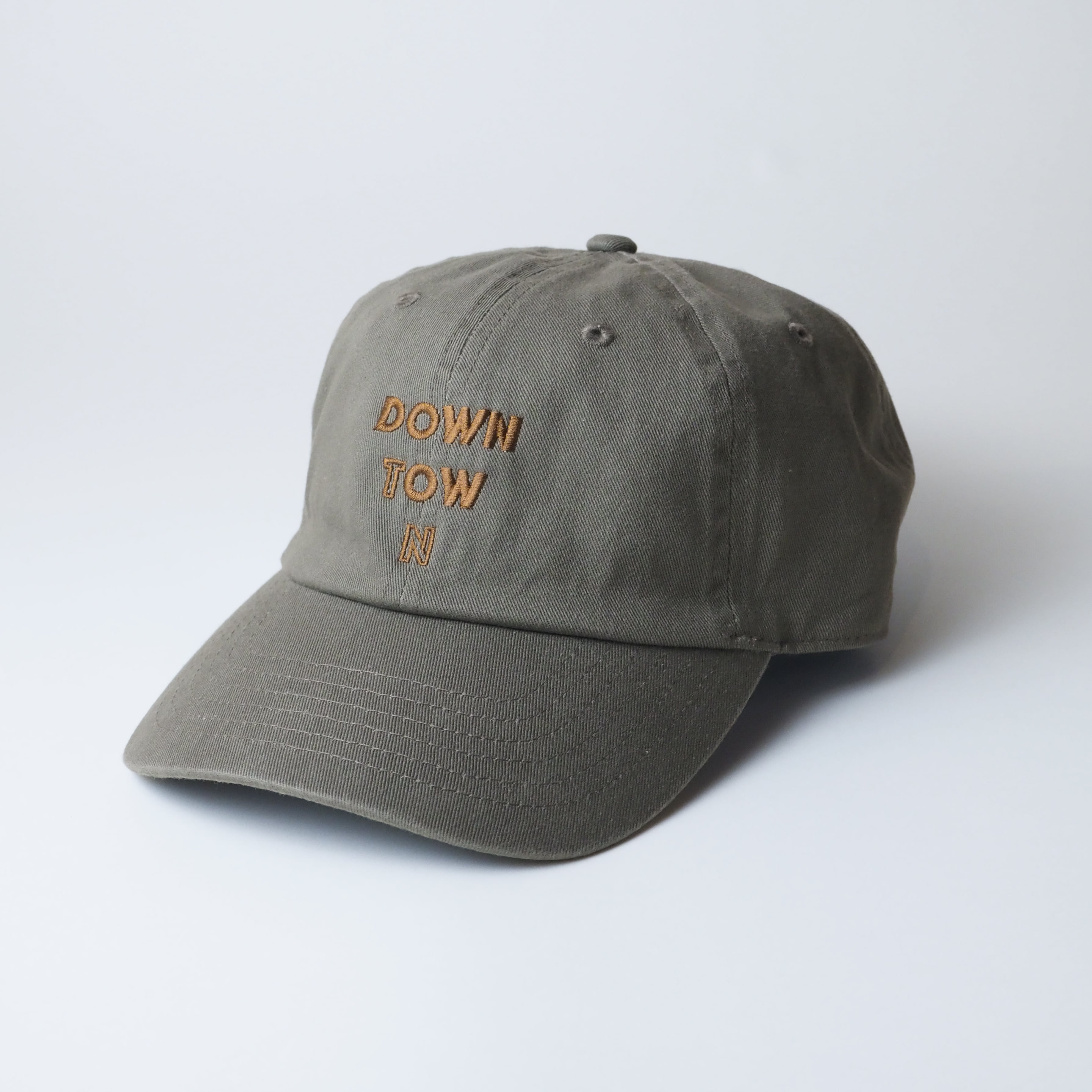 深いカーキ色のベースに、ダークブラウンの刺繍が映えるキャップは、落ち着きと自然美を感じさせる上品な印象を与えます。