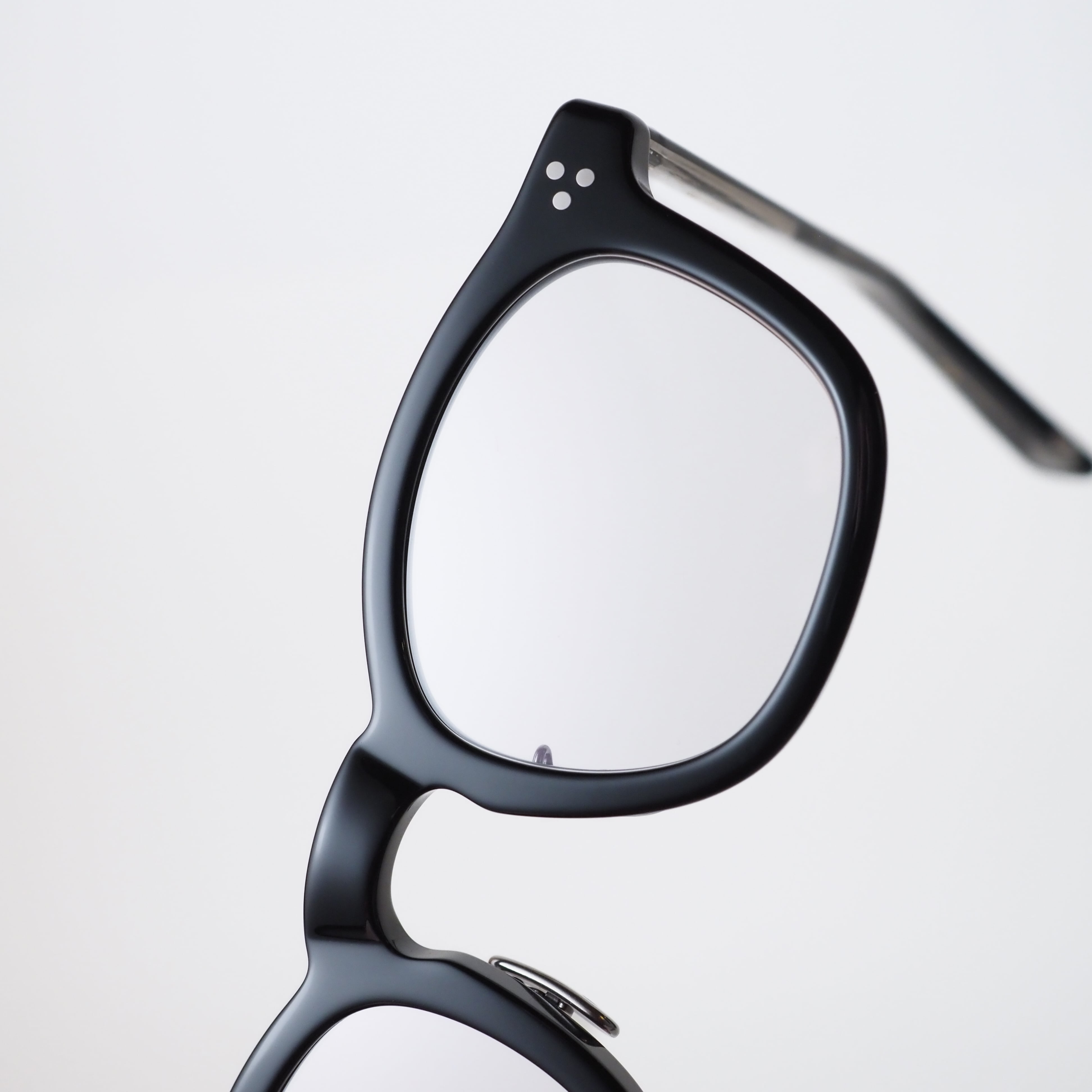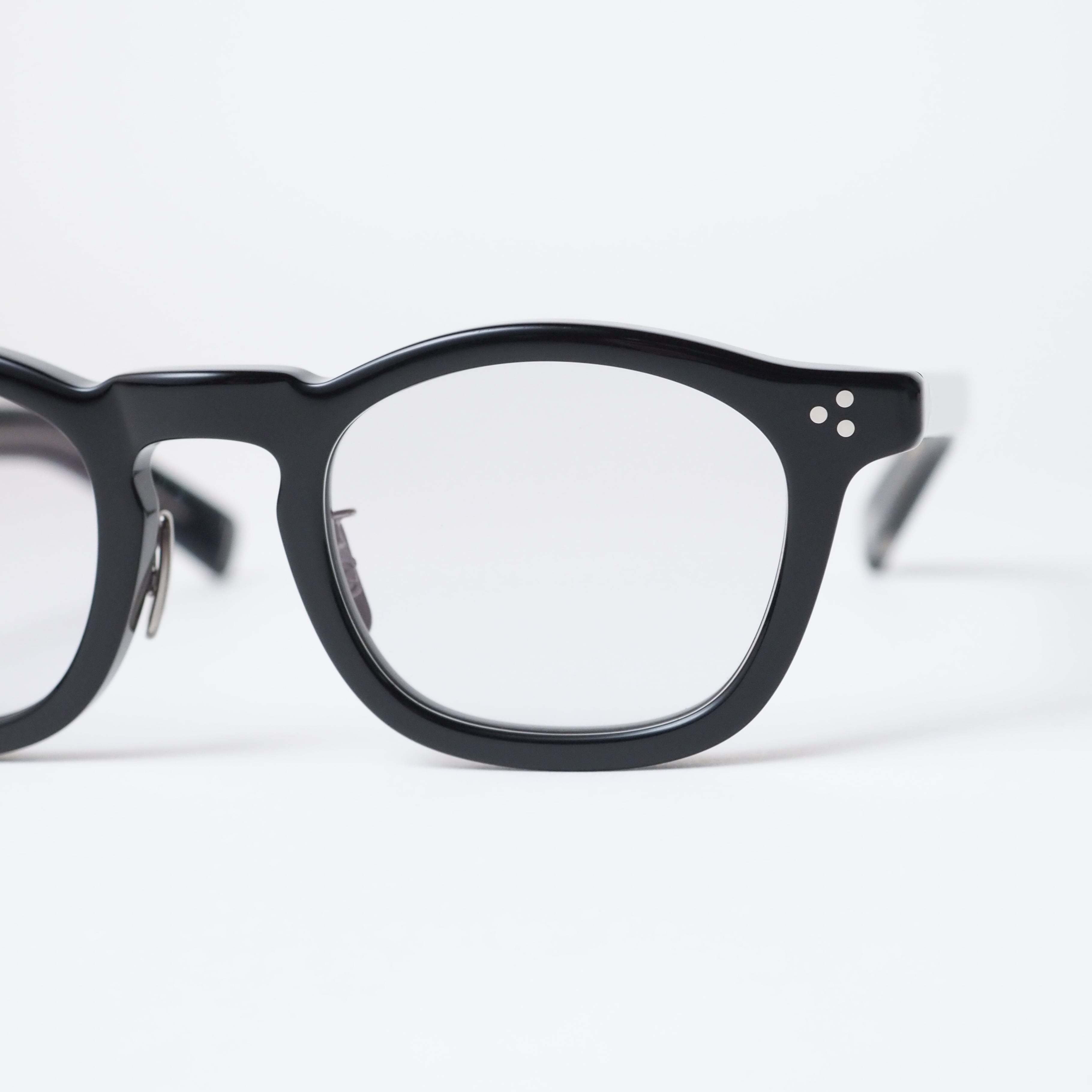 角を抑えた柔らかなシェイプにより、掛けた際の表情は穏やかで、顔馴染みの良さが際立ちます。