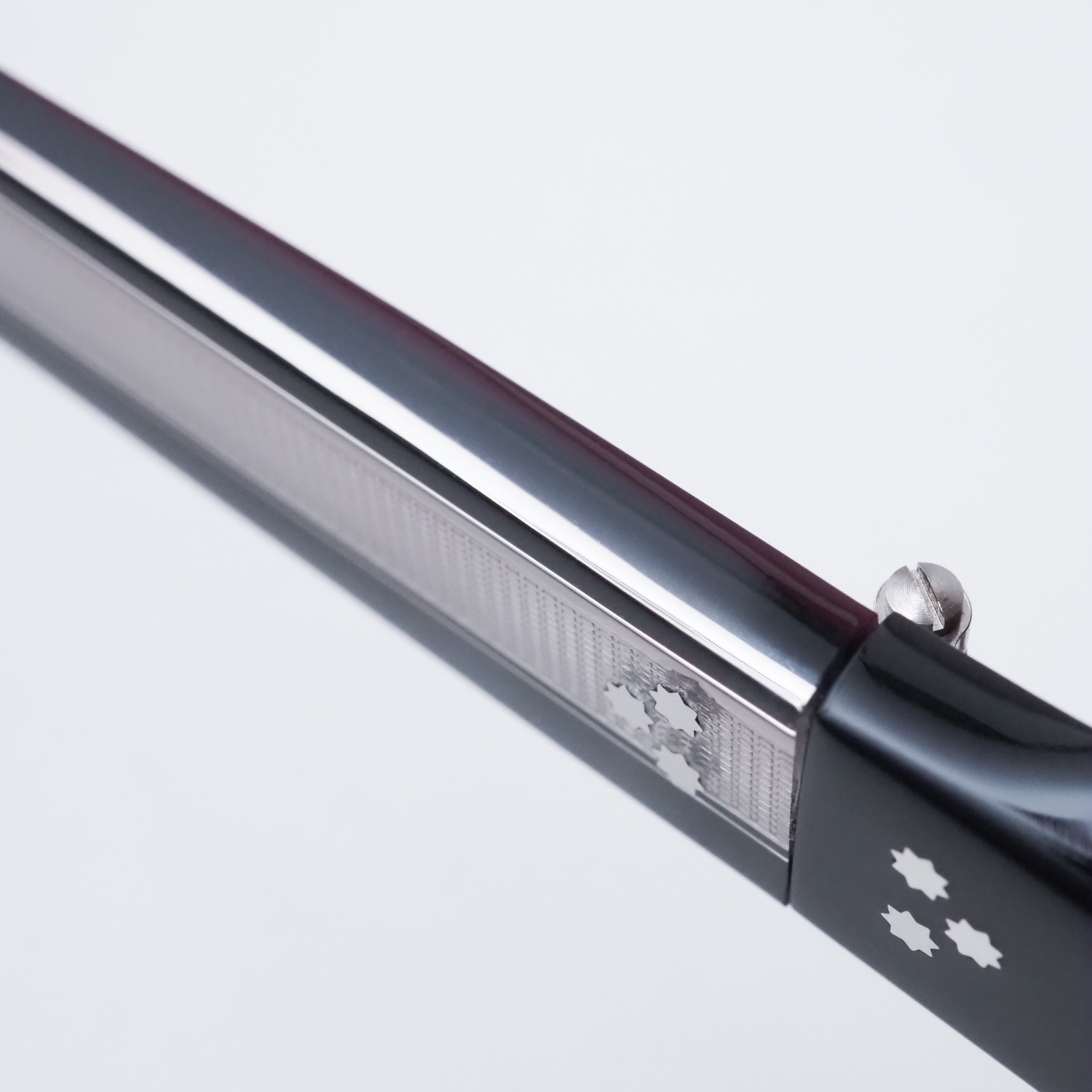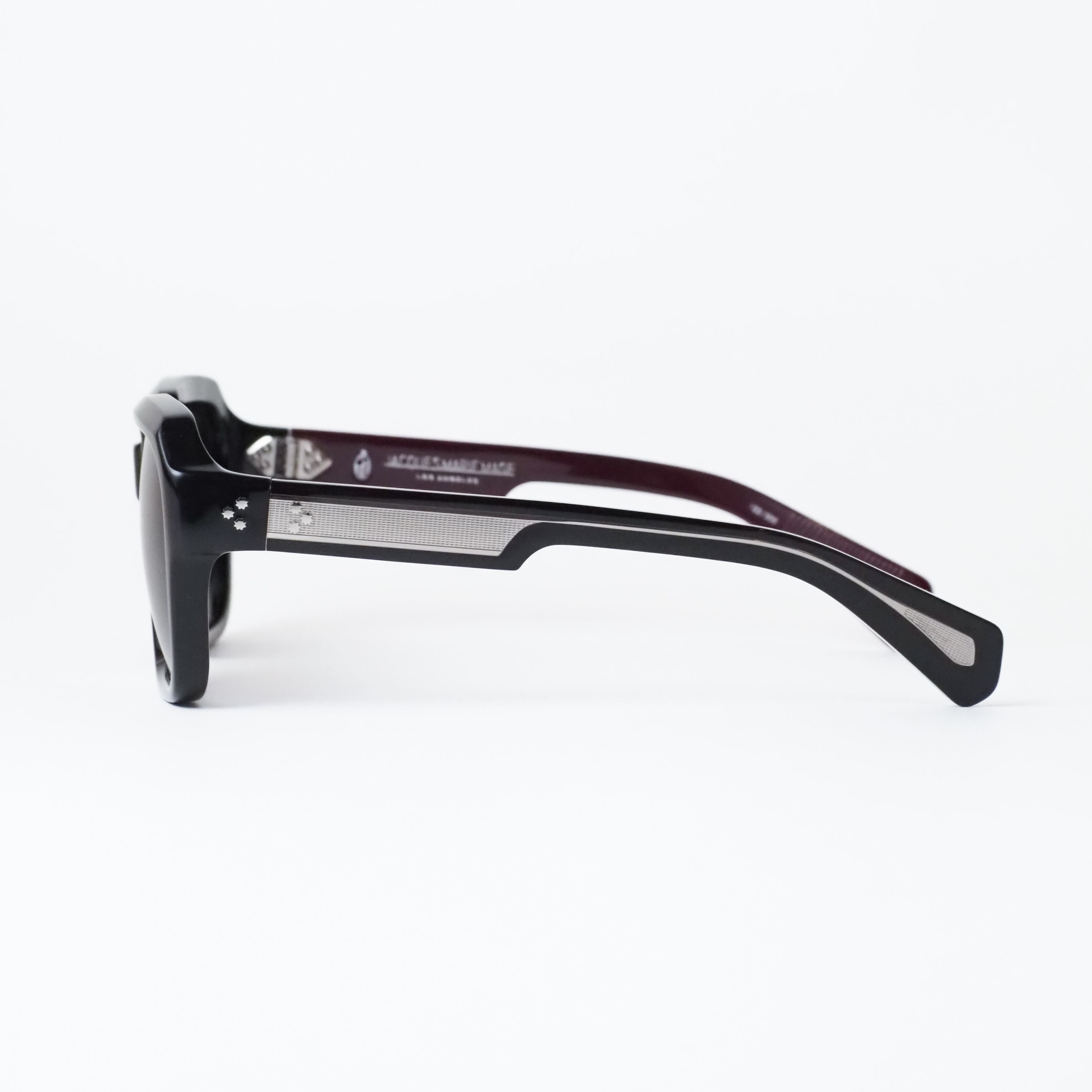 テンプル内側には深みのあるボルドーカラーを配し、