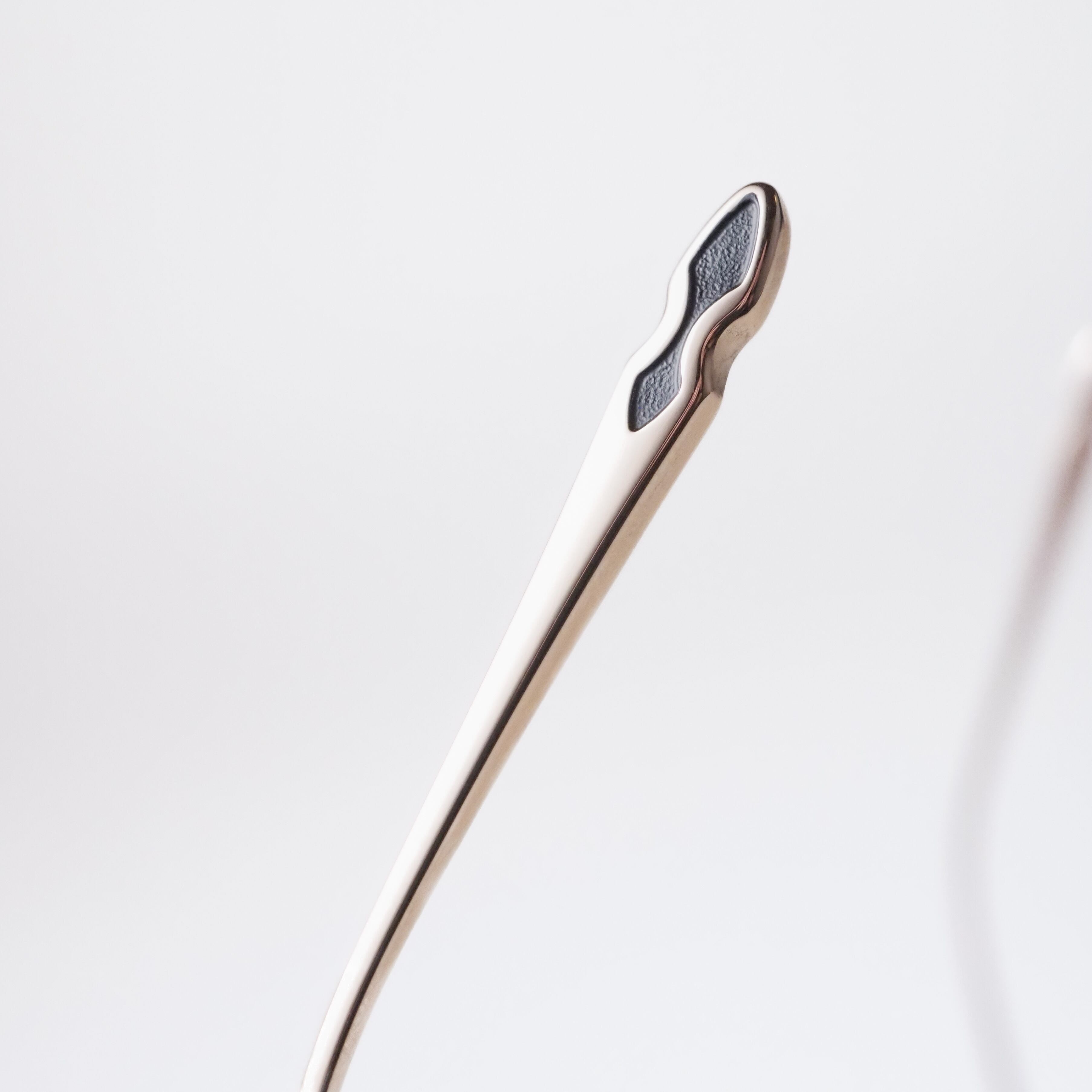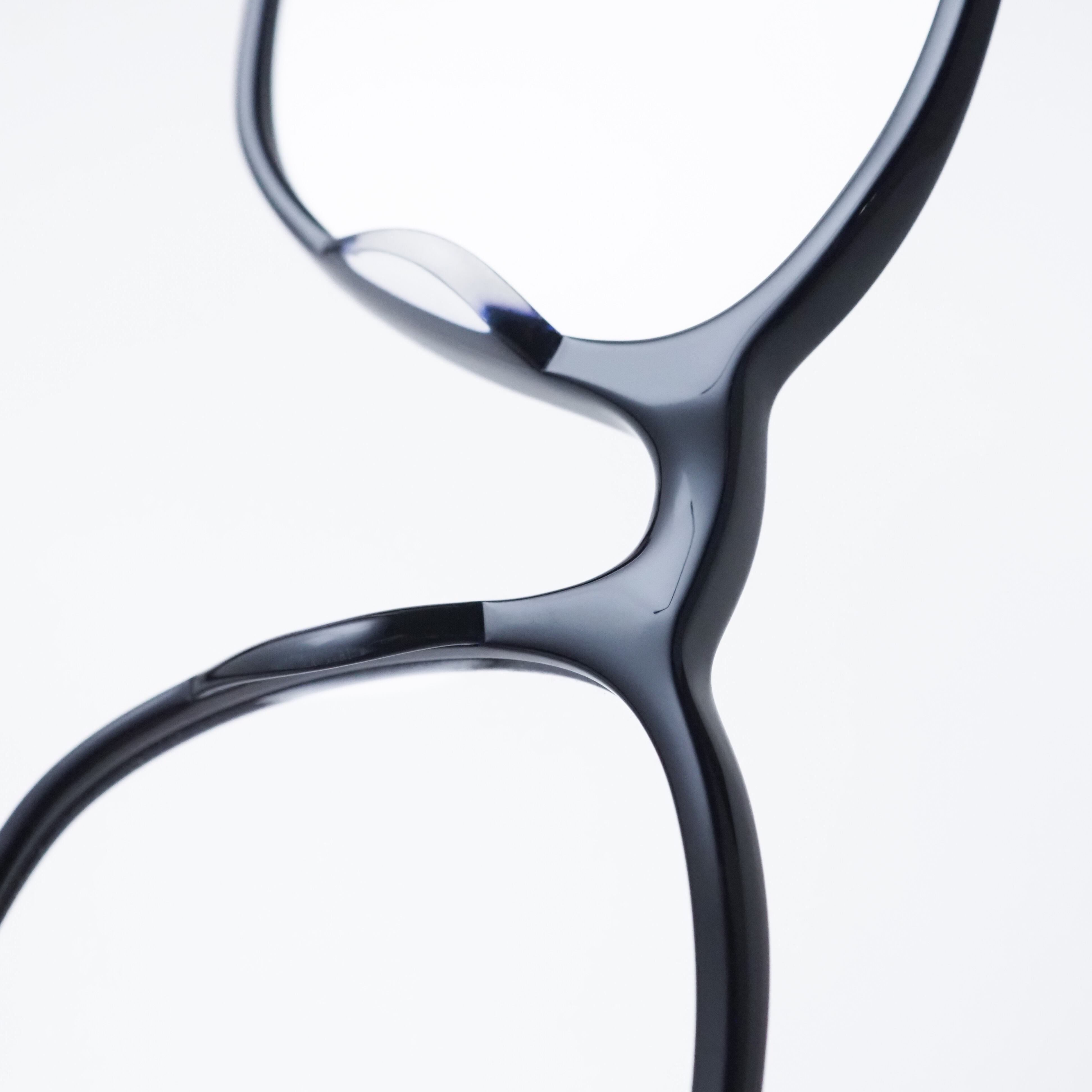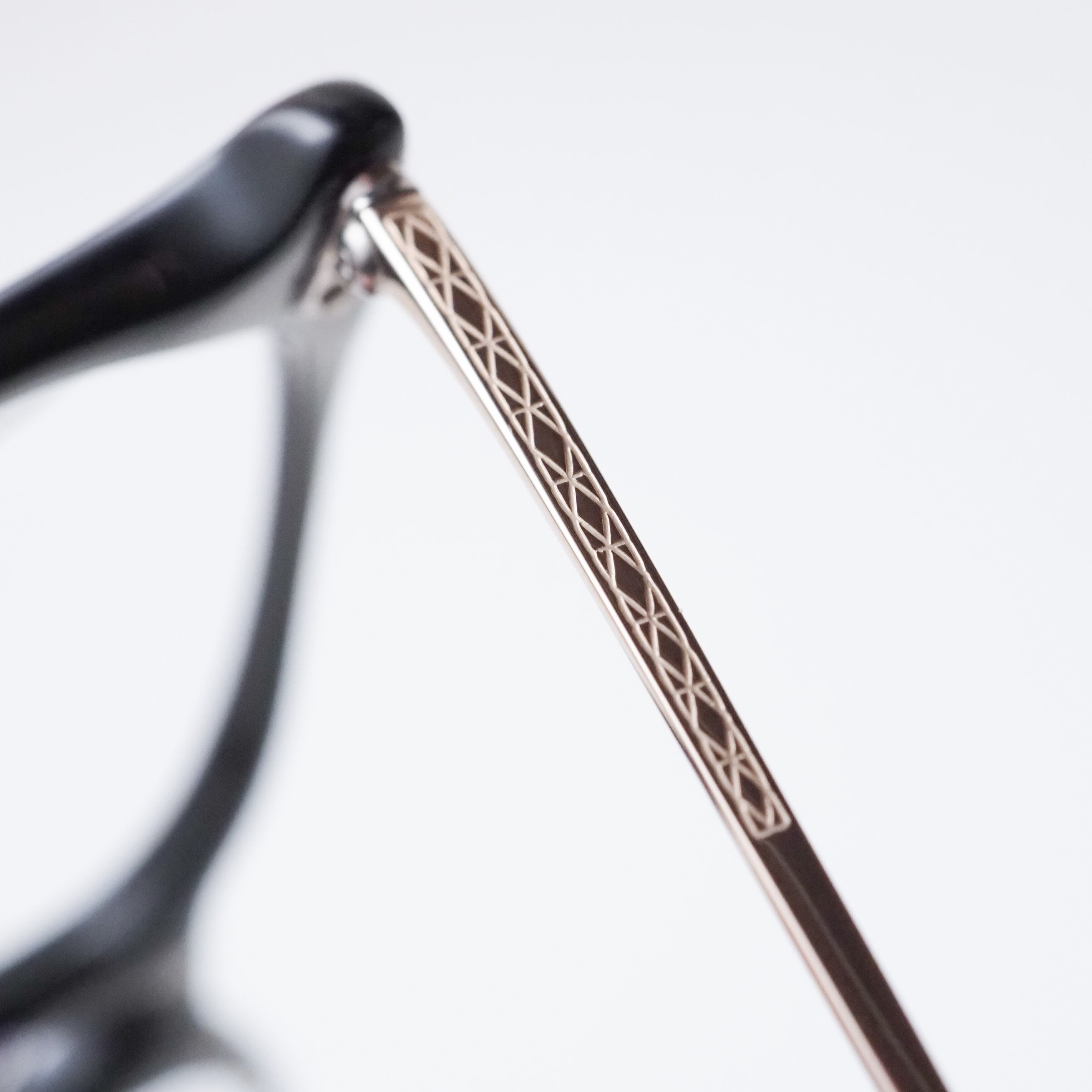 col.BKはフロントはブラックカラーでテンプルはホワイトゴールド。落ち着いた印象の中に程よい存在感を持たせ、年齢やスタイルを問わず取り入れやすい仕上がりです。