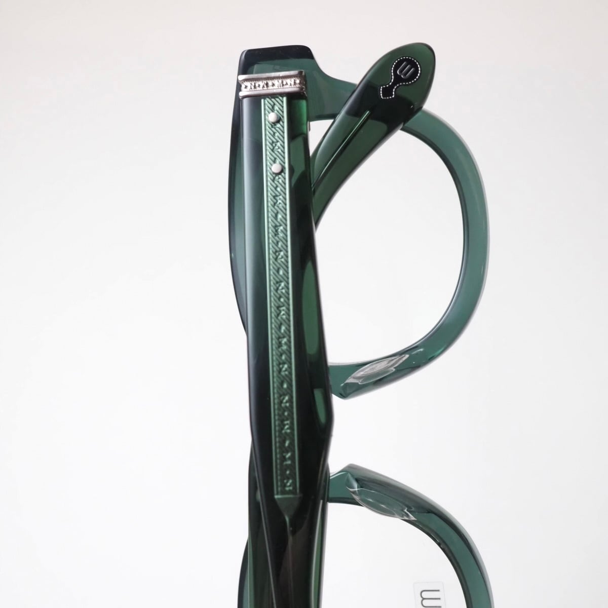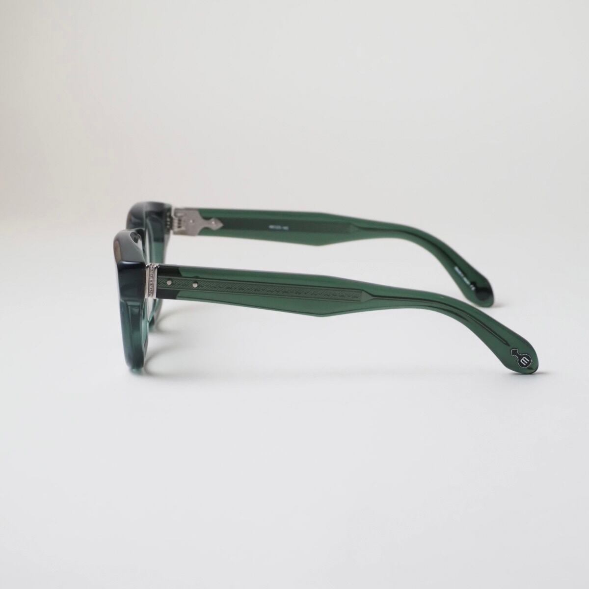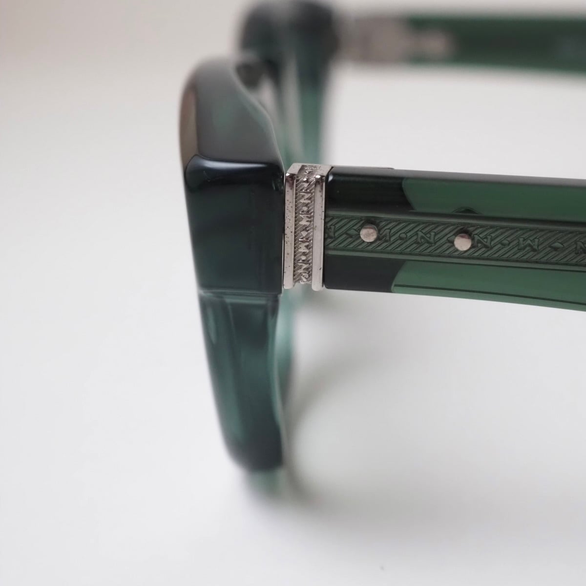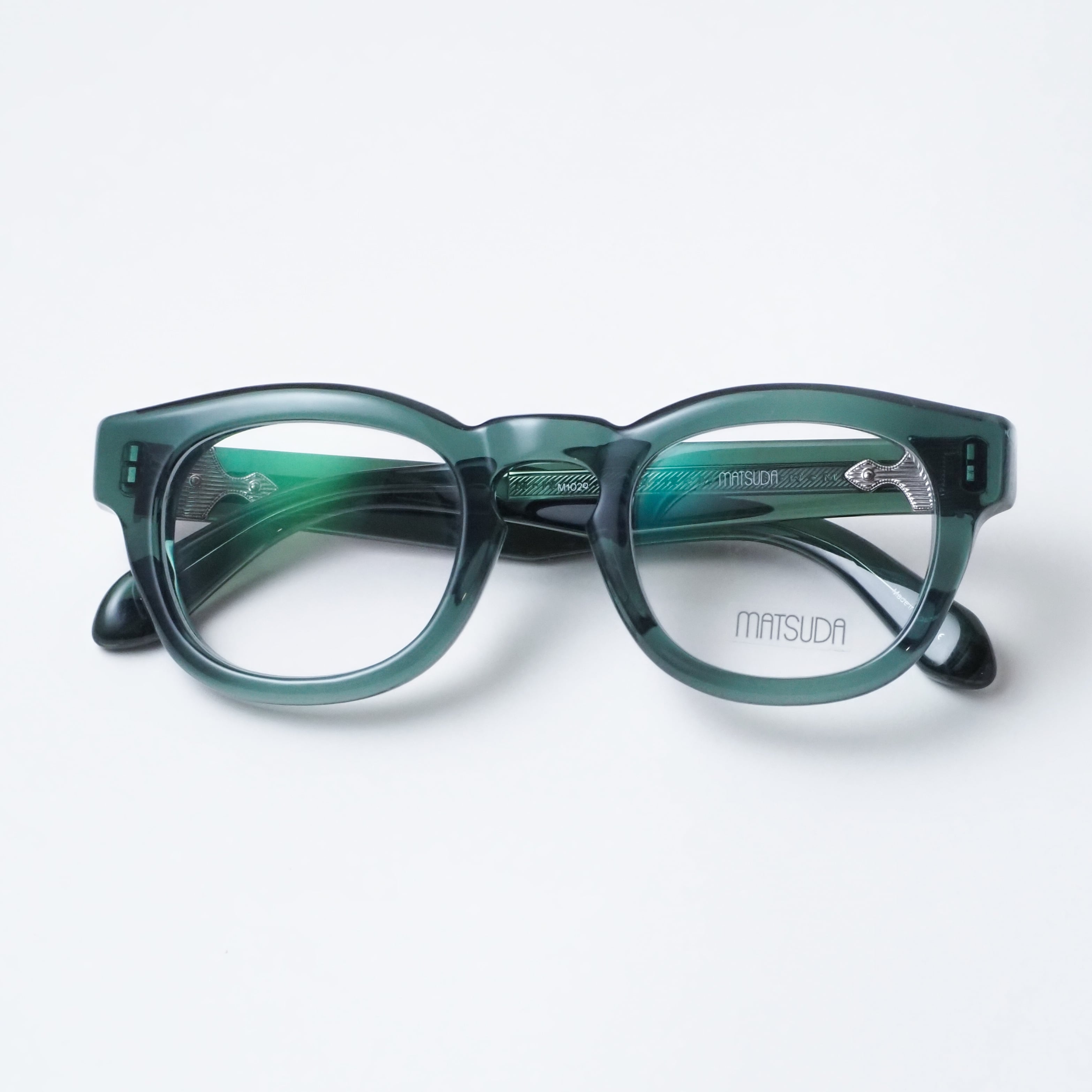 テンプルの芯金、丁番などメタル素材の随所にMATSUDAならではの繊細な彫金も必見。