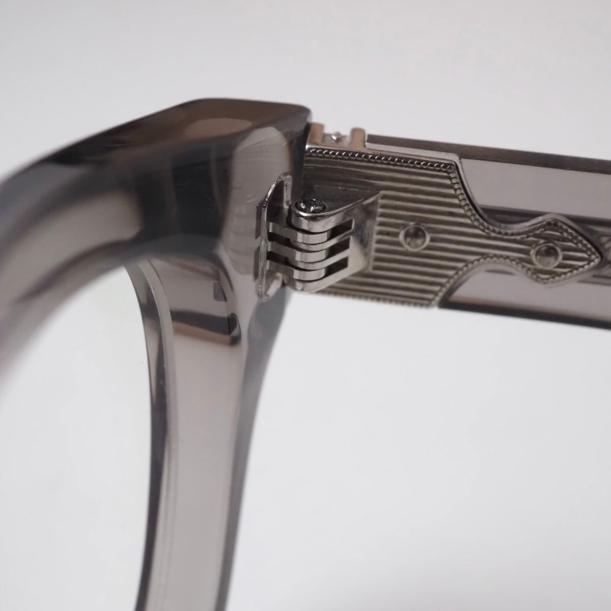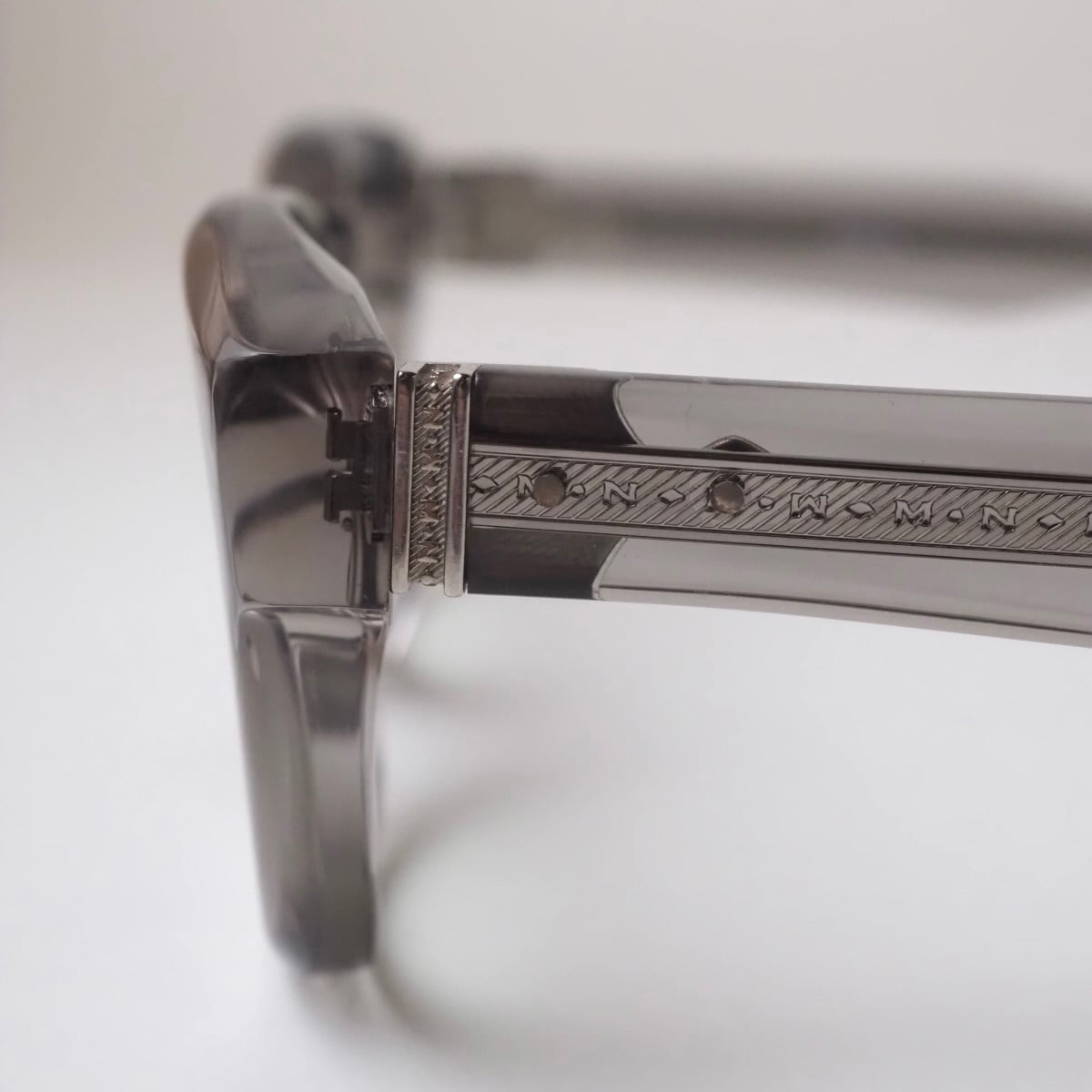 テンプルの芯金、丁番などメタル素材の随所にMATSUDAならではの繊細な彫金も必見。