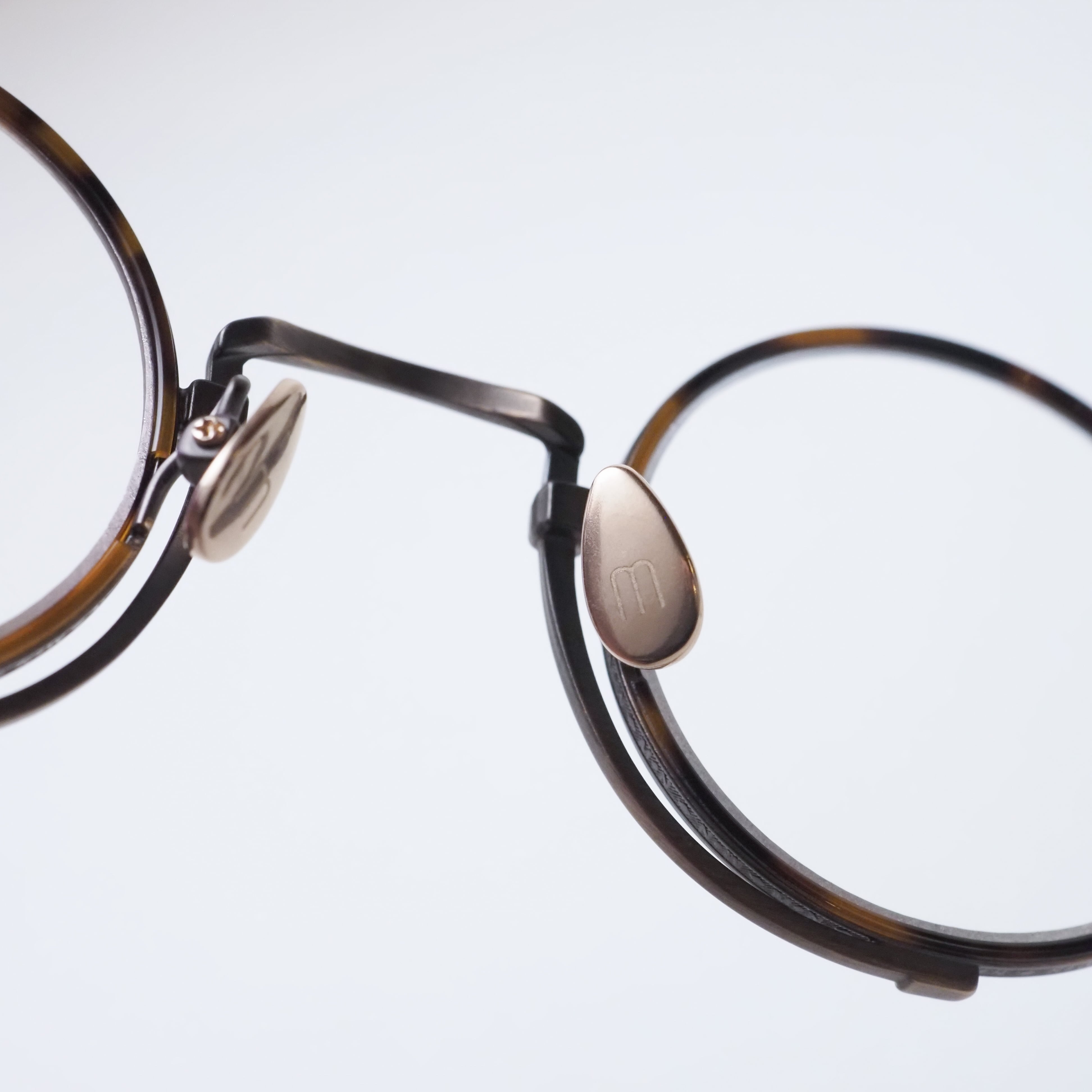 鼻に挟んで使用する鼻眼鏡(フィンチ型眼鏡)から着想を得た構造は、MATSUDAならではの独創性を象徴するディテール。