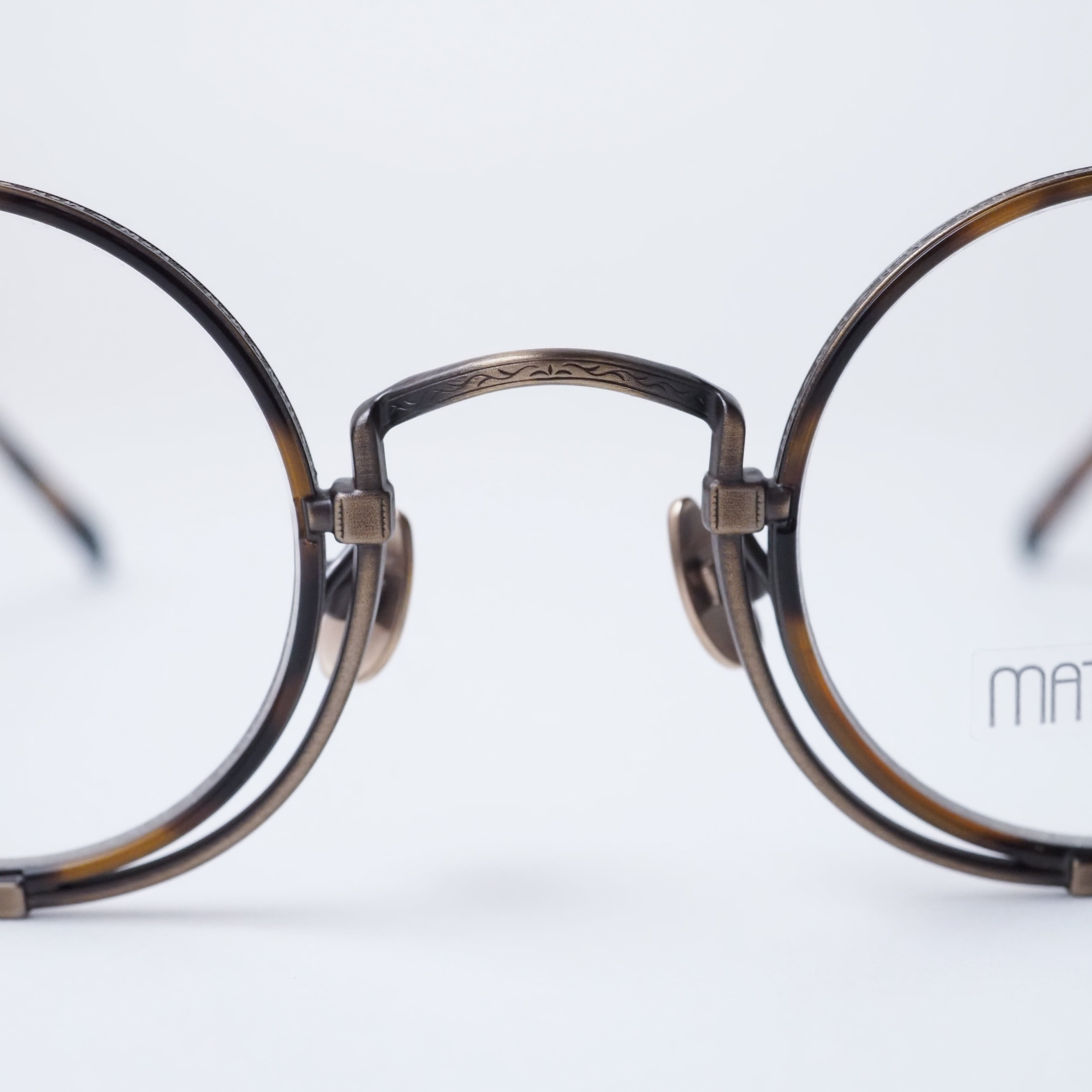テンプルやリム、ブリッジに至るまで、メタルパーツの随所にはMATSUDAならではの緻密な彫金が施され、工芸品のような存在感を放ちます。