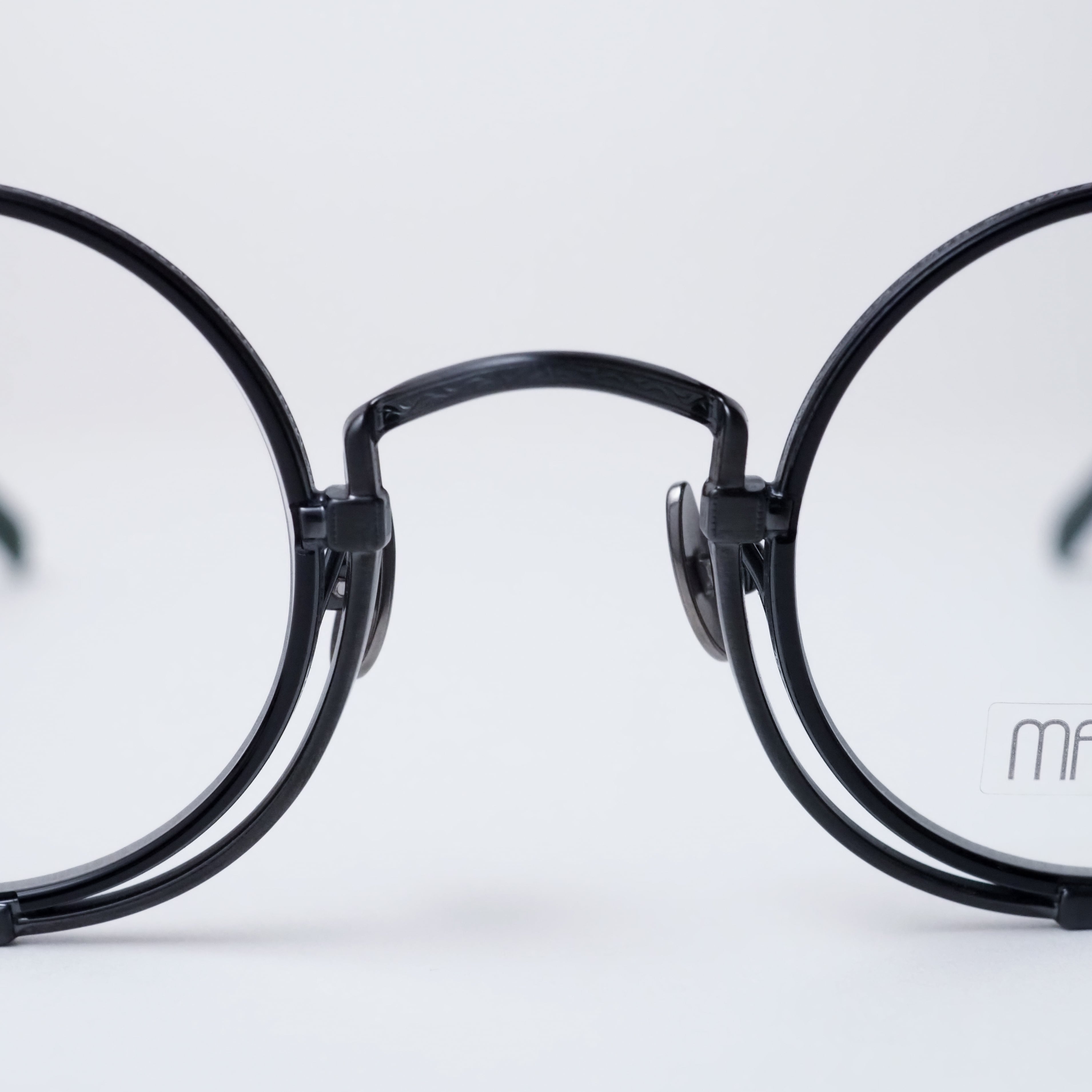 鼻に挟んで使用する鼻眼鏡(フィンチ型眼鏡)から着想を得た構造は、MATSUDAならではの独創性を象徴するディテール。