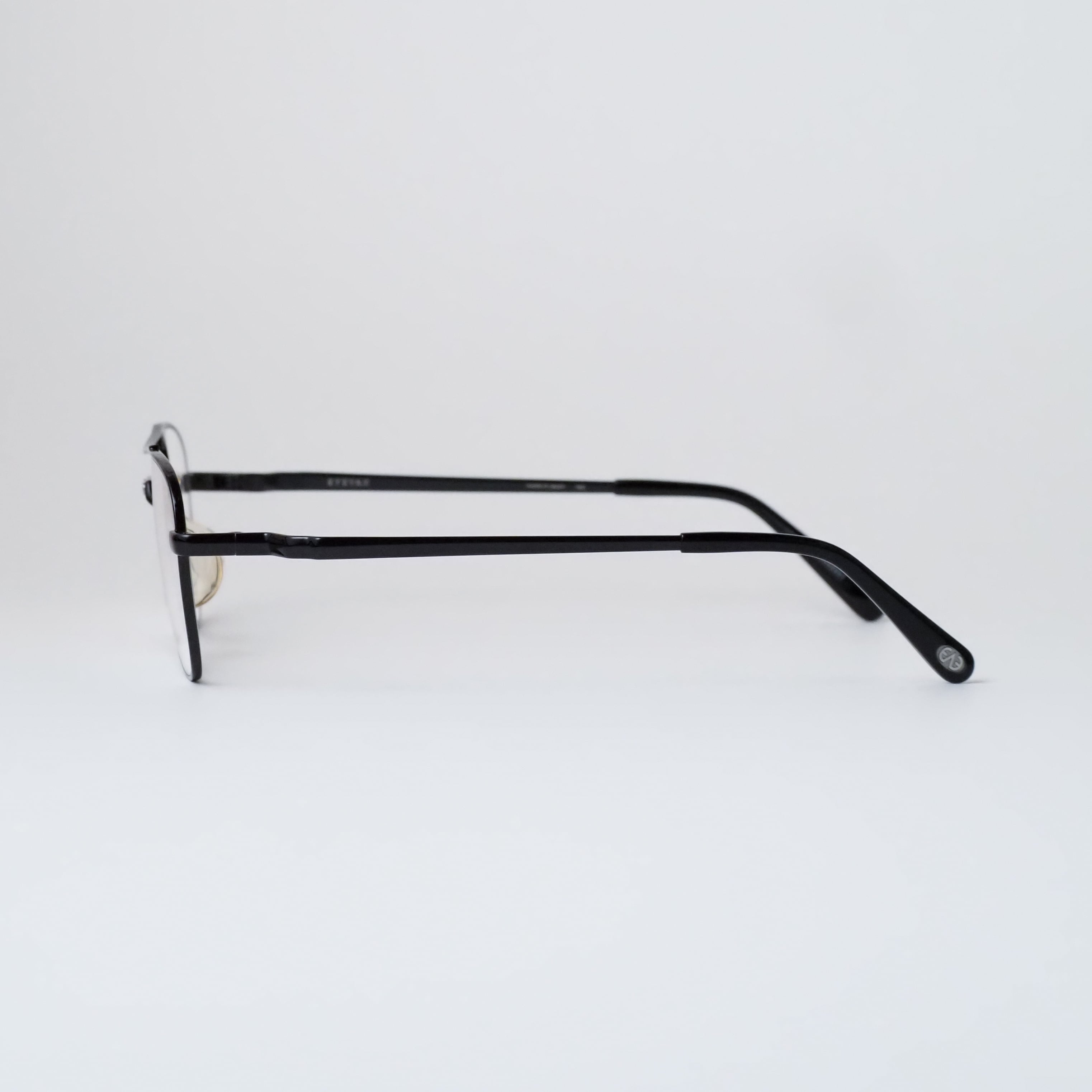 さらに目を引くのがテンプルデザインです。途中から横幅が広くなる設計になっており、このディテールが横顔に程よいアクセントを加えます。同時に側頭部への当たりを分散させる役割も担っており、掛け心地の向上にも繋がっています。