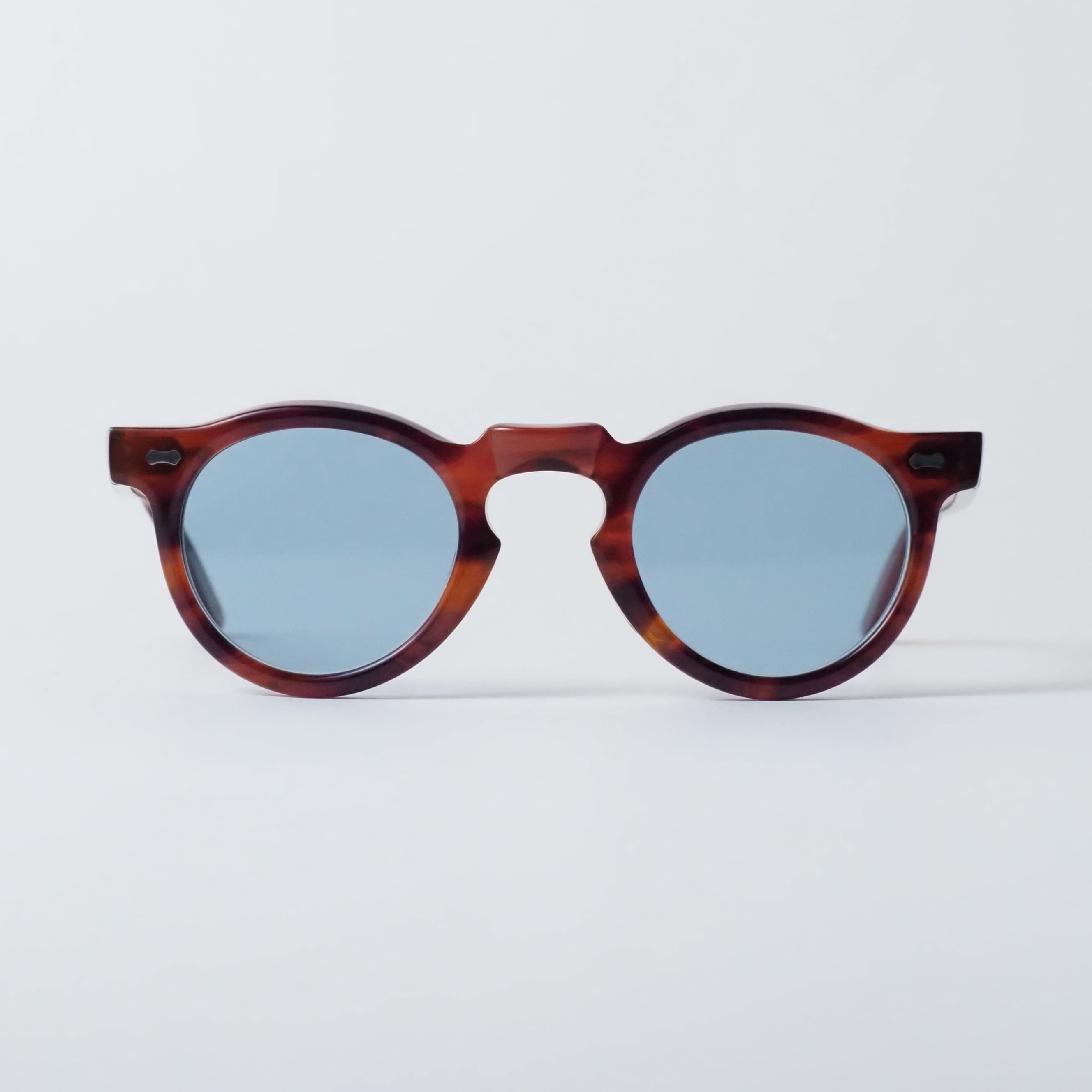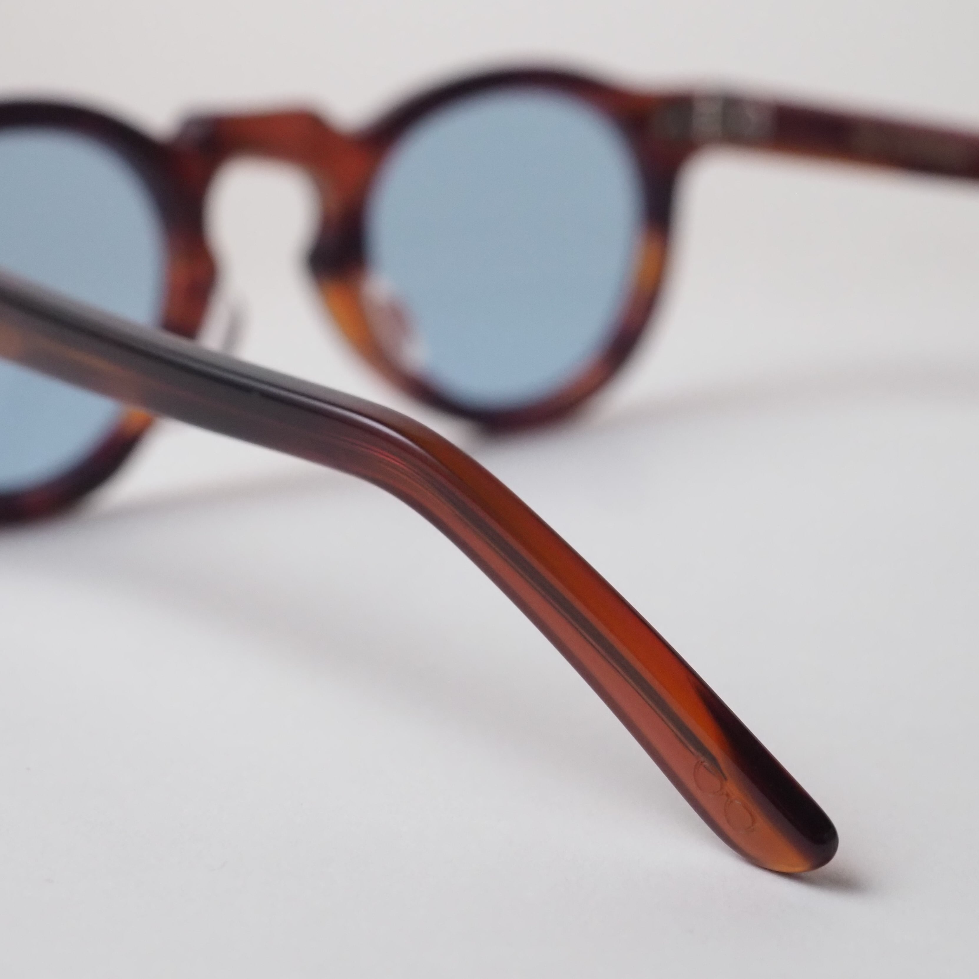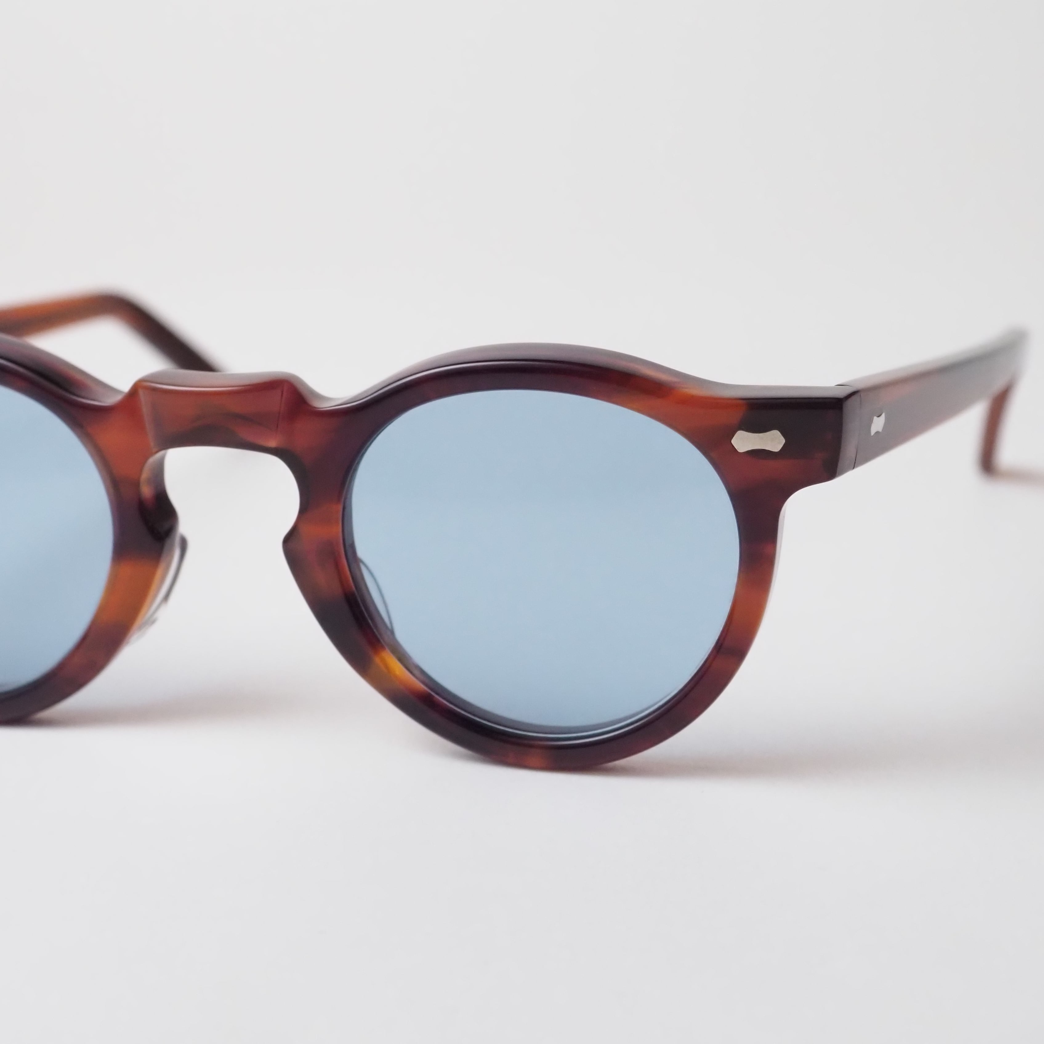 滑らかに磨き上げられた削り出しのアセテートフレームや、一般的なプレーティングの倍の厚みを持つメタルフレームなど、高度な技術と工程が随所に用いられている。