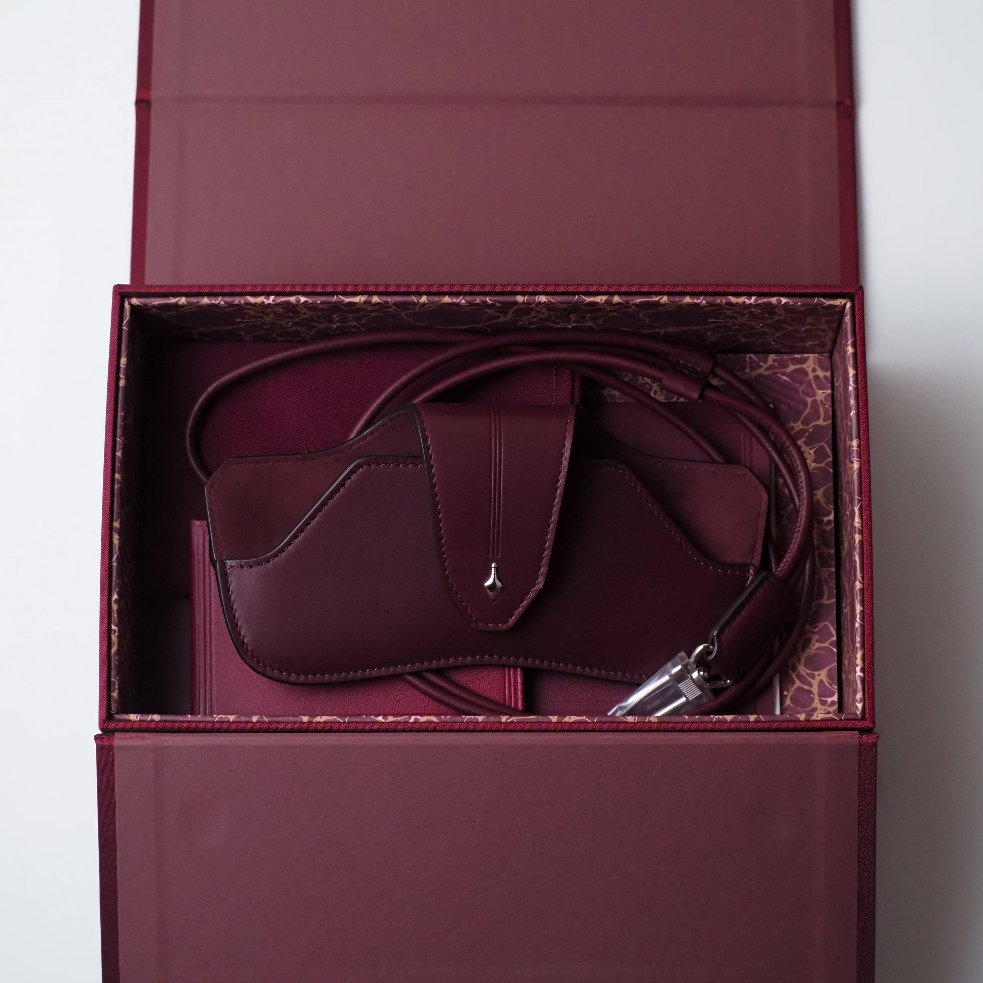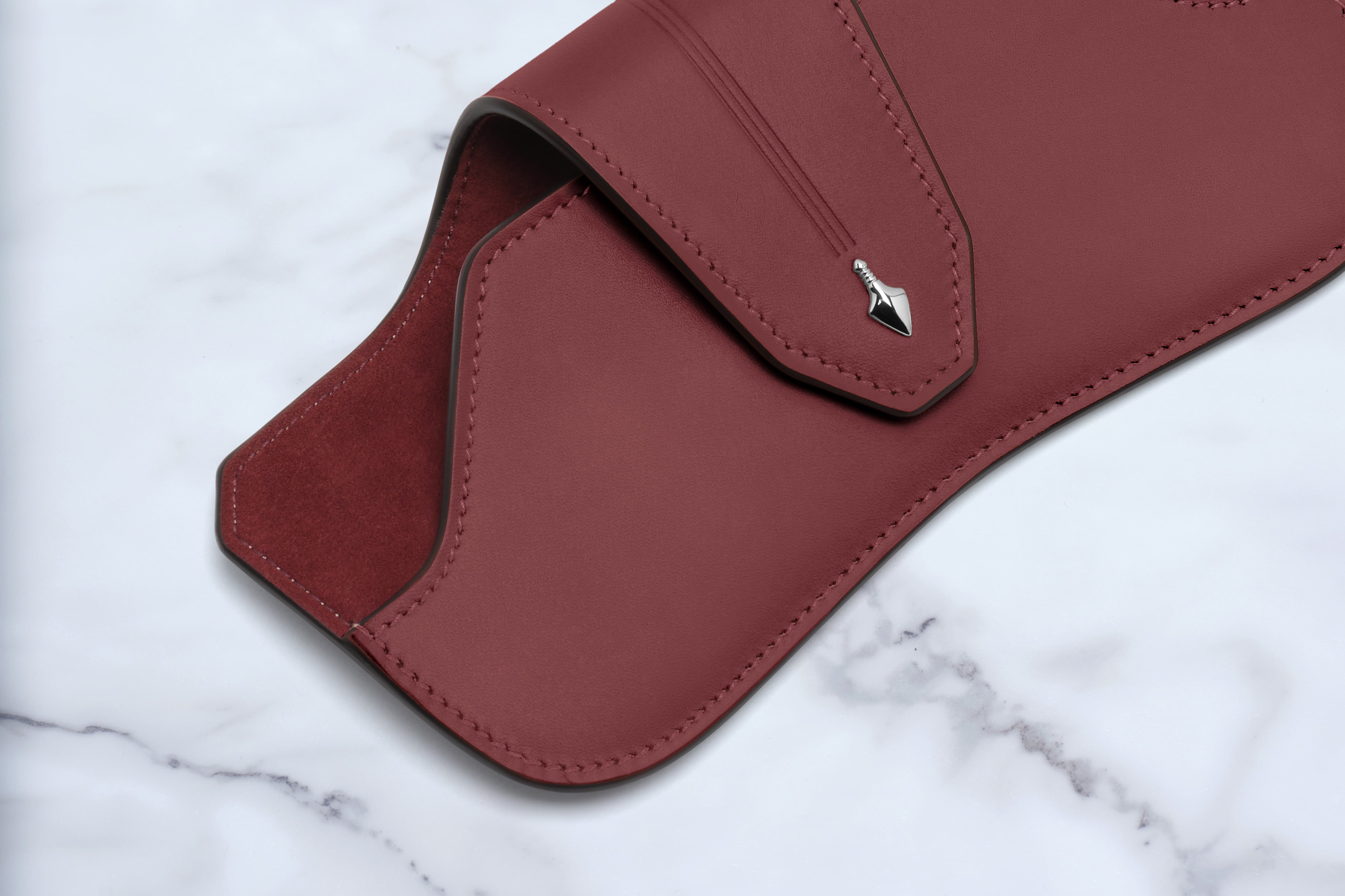 ケース内側には、ブランドを象徴するボルドーカラーのスエードを使用し、細部に至るまで上質さを追求した仕上がりとなっています。