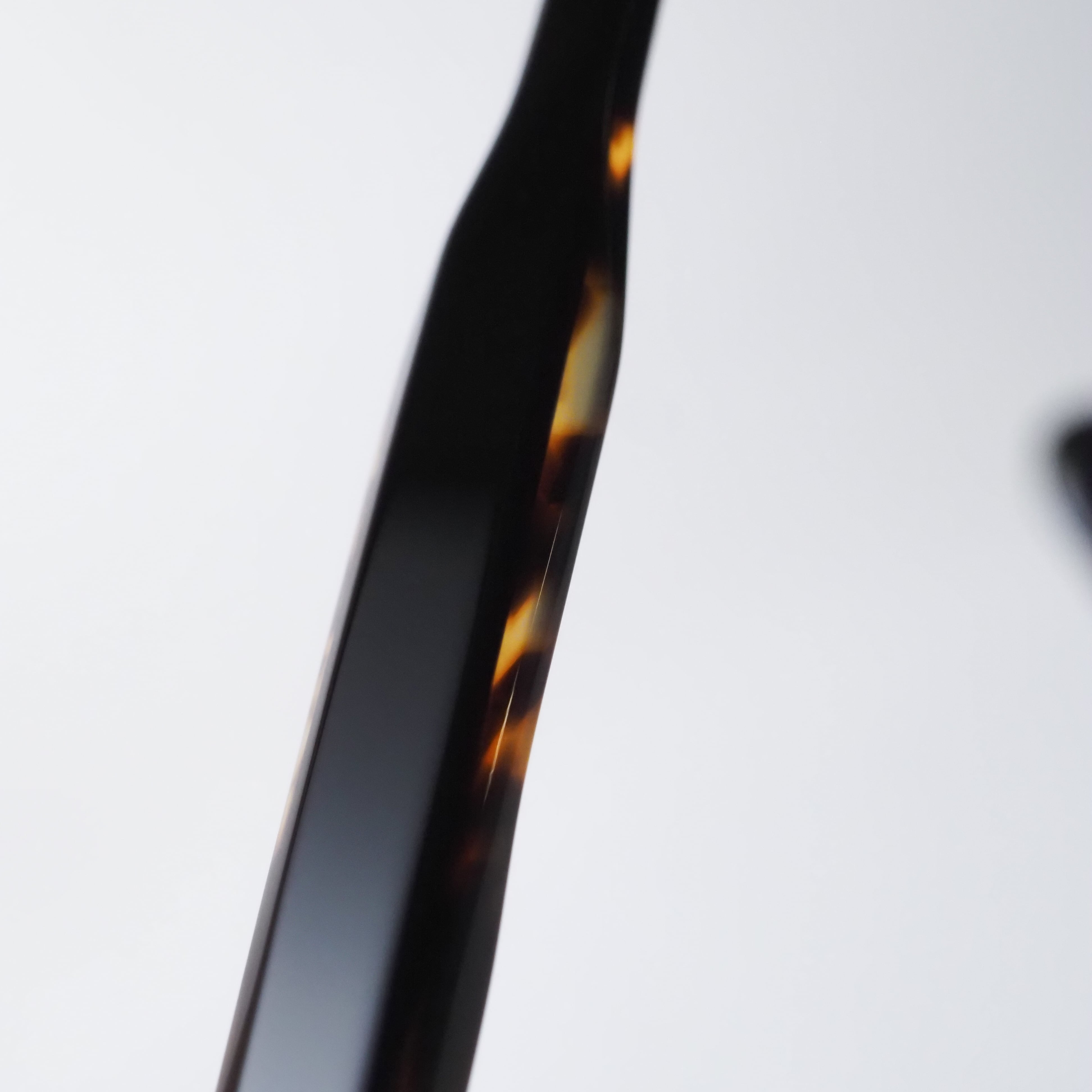 アセテートの切削・研磨からチタンパーツの加工、手作業によるリベットの打ち込みに至るまで、伝統技術と最新テクノロジーの融合がその完成度を支えている。