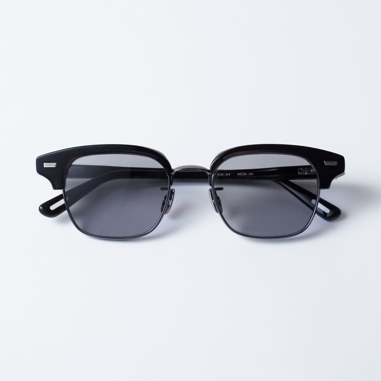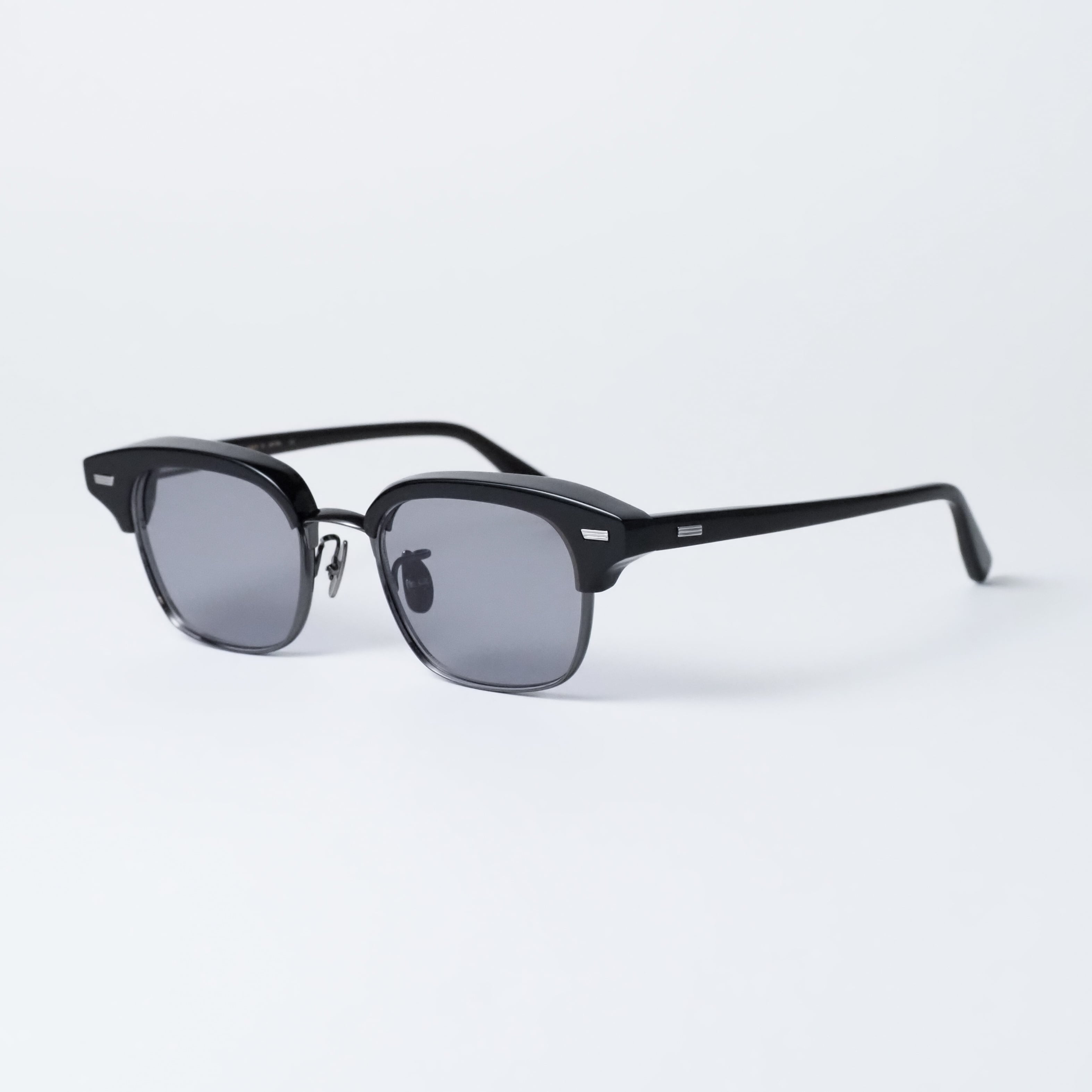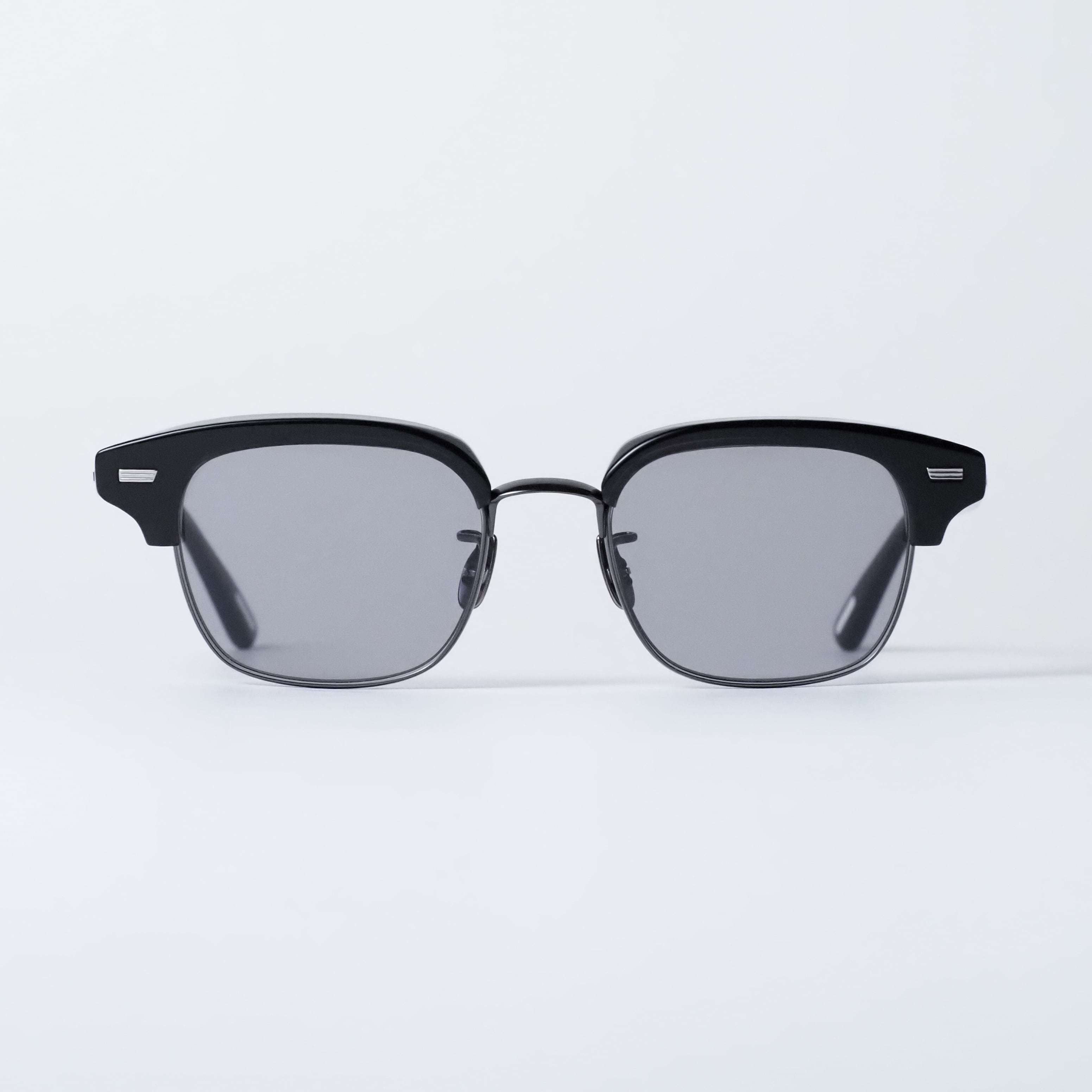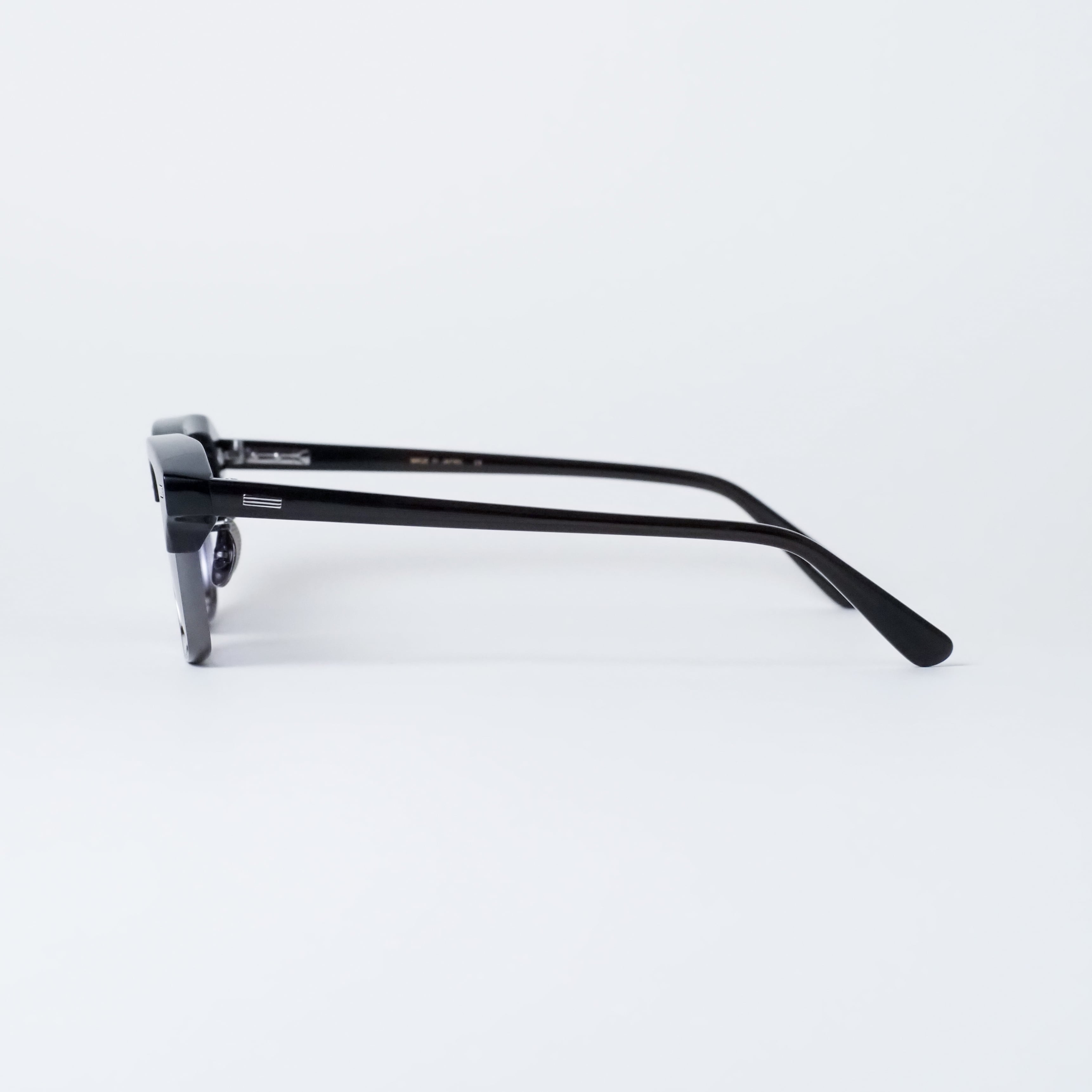 10mm厚のアセテートから削り出しエッジを効かせたブローパーツ、4.5mm厚の丸みあるメタルリムが相反する互いの質感を際立たせ、洗練された造形美を表現しています。