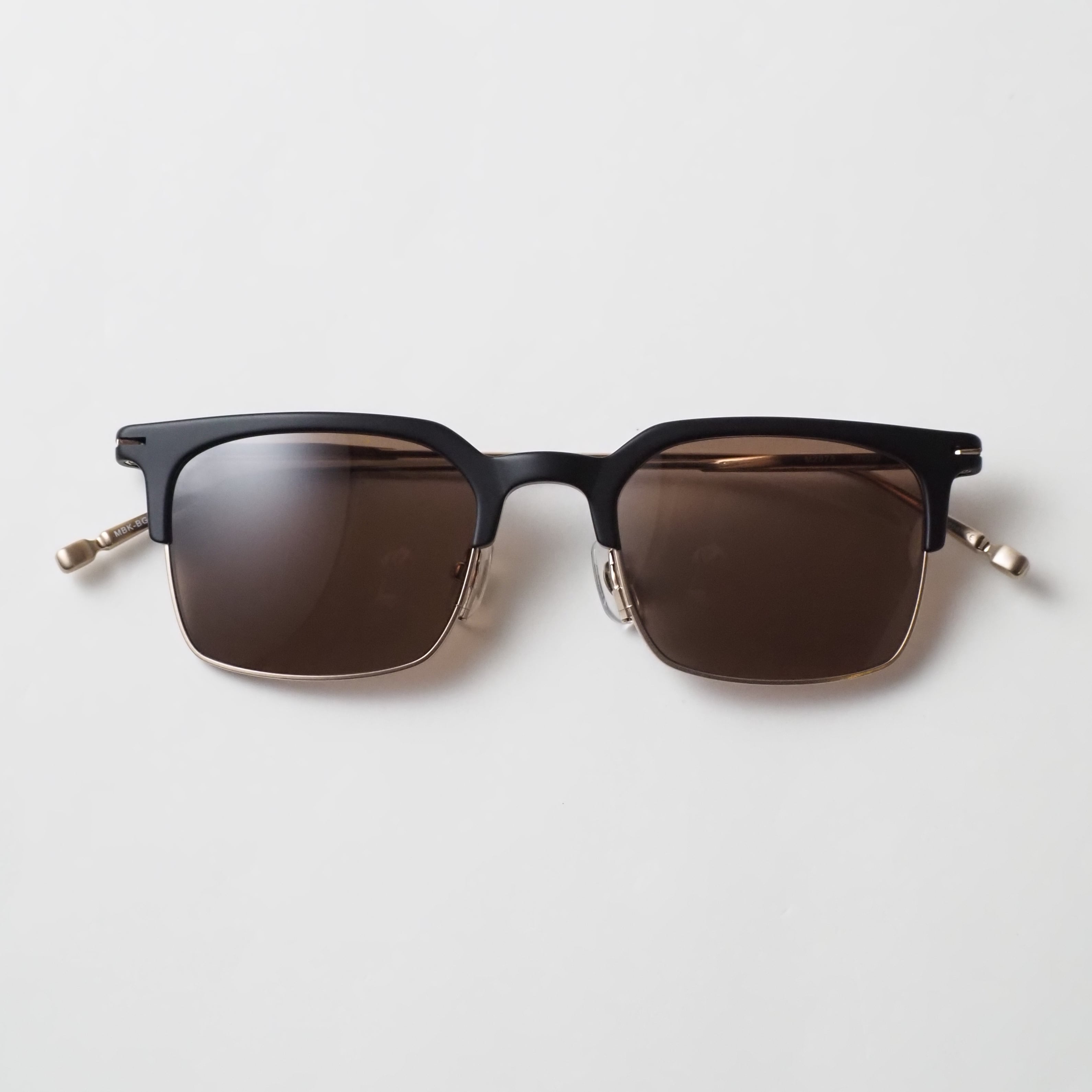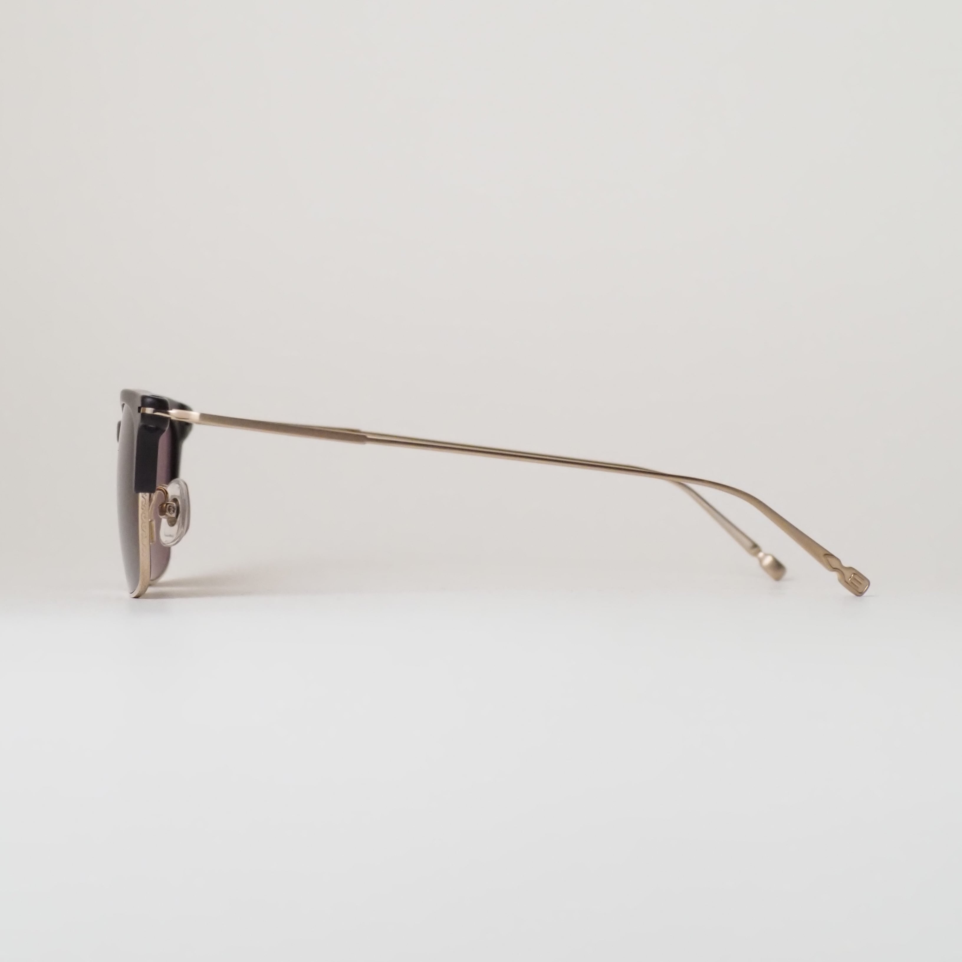 マットブラックのブロウが生み出す引き締まった表情に、ブラッシュゴールドのメタルパーツが柔らかな輝きを添える、洗練されたカラーリング。