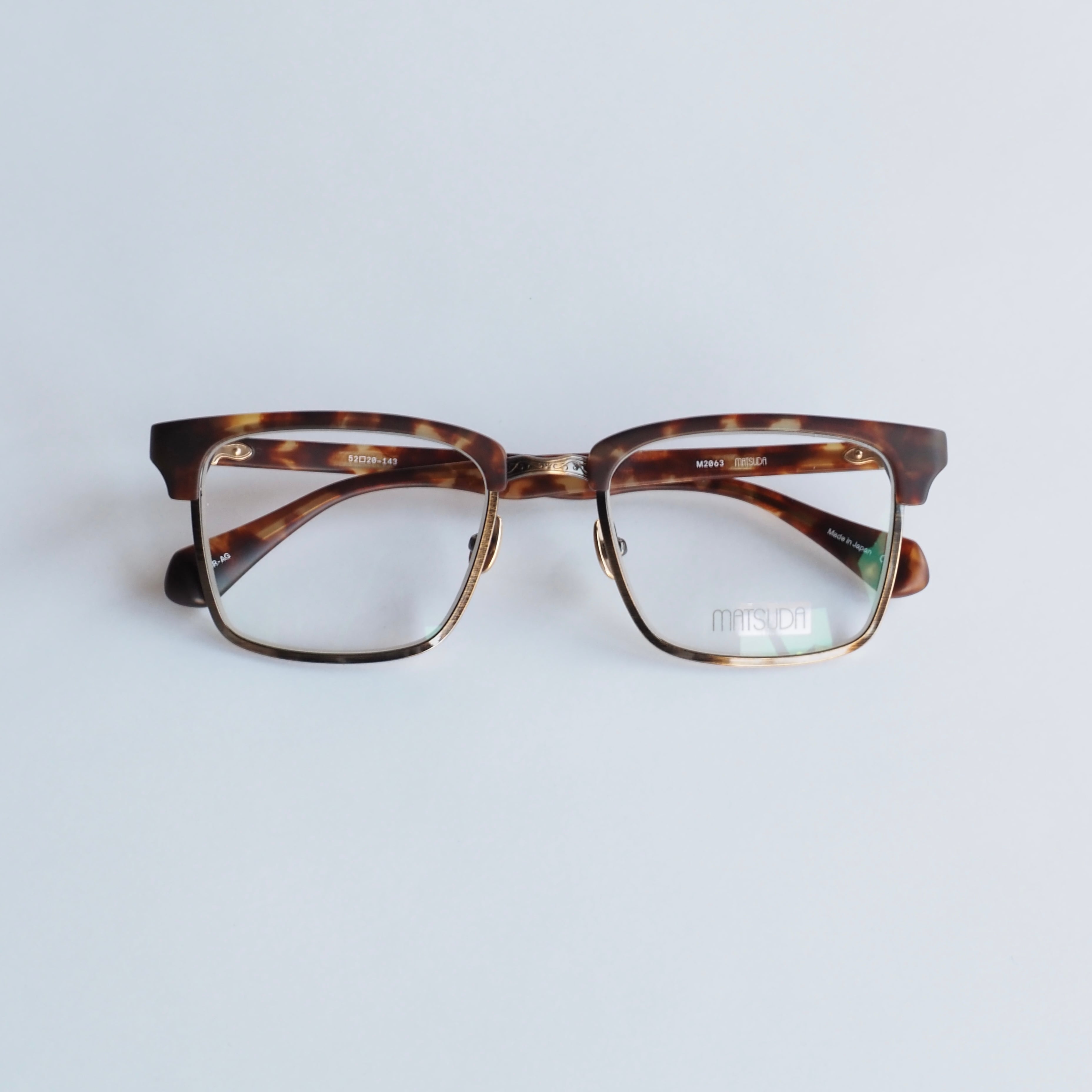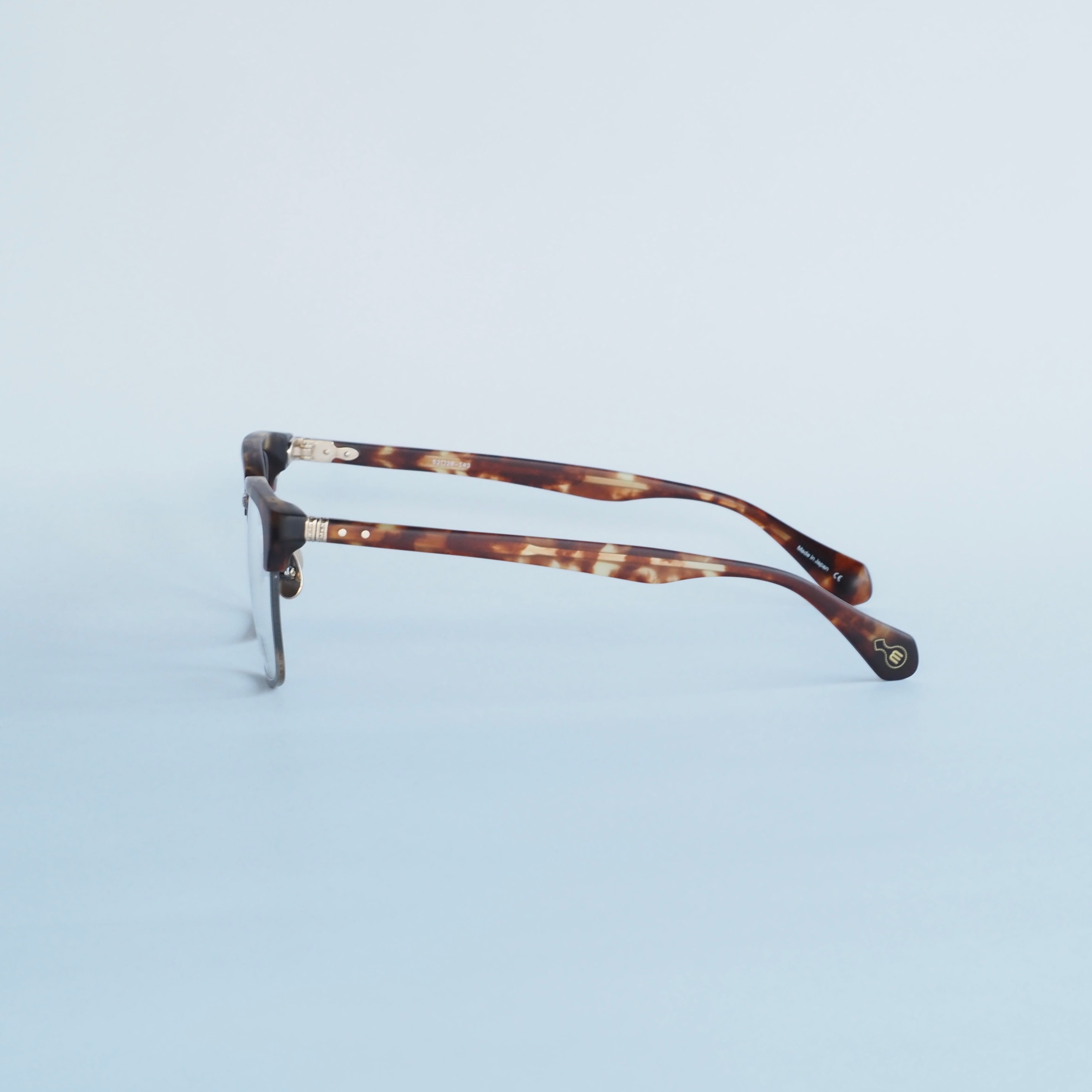 ブローラインと太いチタンリムが力強く、ややエッジの効いた形状はさらに目元の印象を引き立てます。サーモントタイプ特有のマスキュリンな空気感が漂う逸品です。