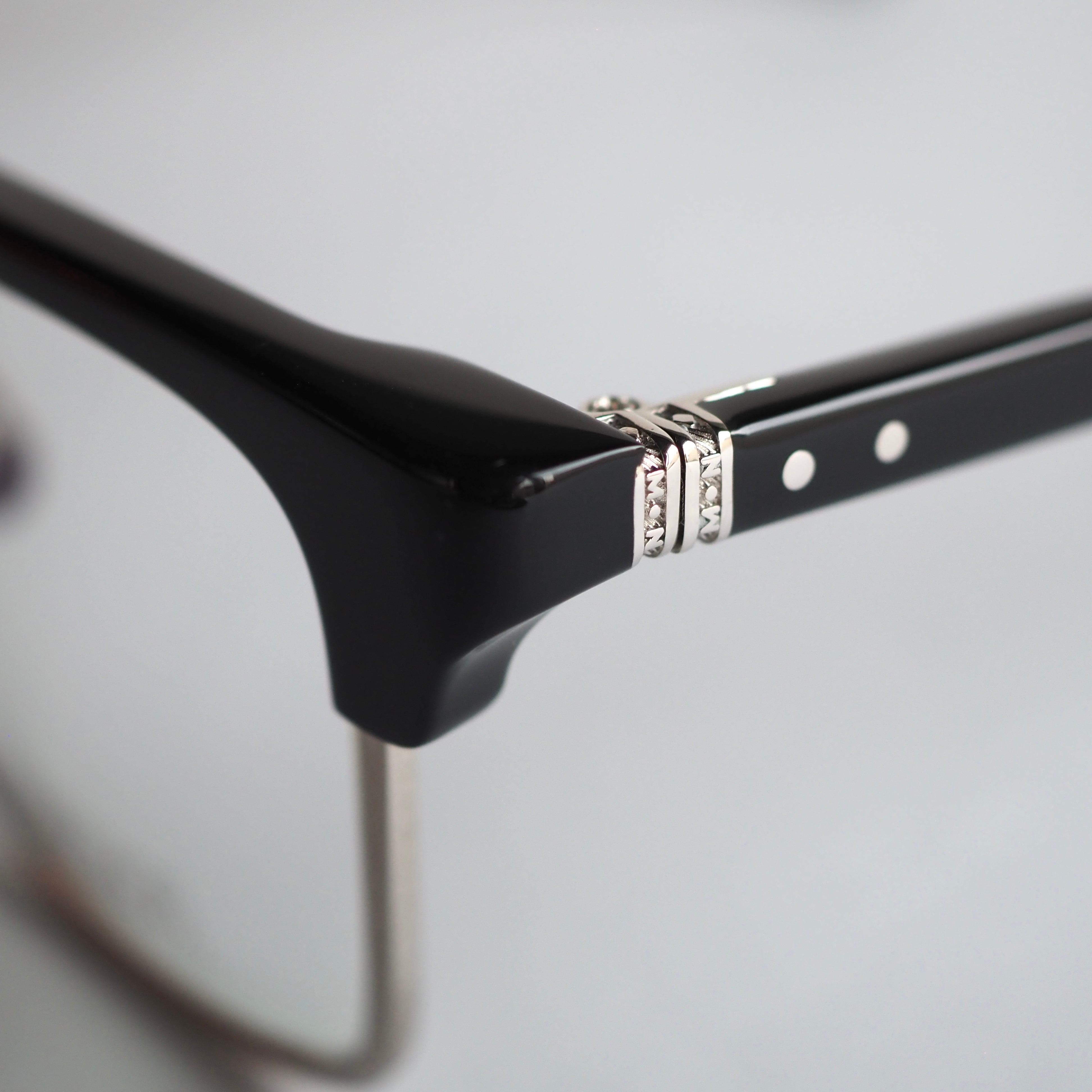 テンプルの合口部分には彫金が施されたオリジナルメタルパーツが配され、ワンポイントアクセントとして目を惹くデザインとなっています。