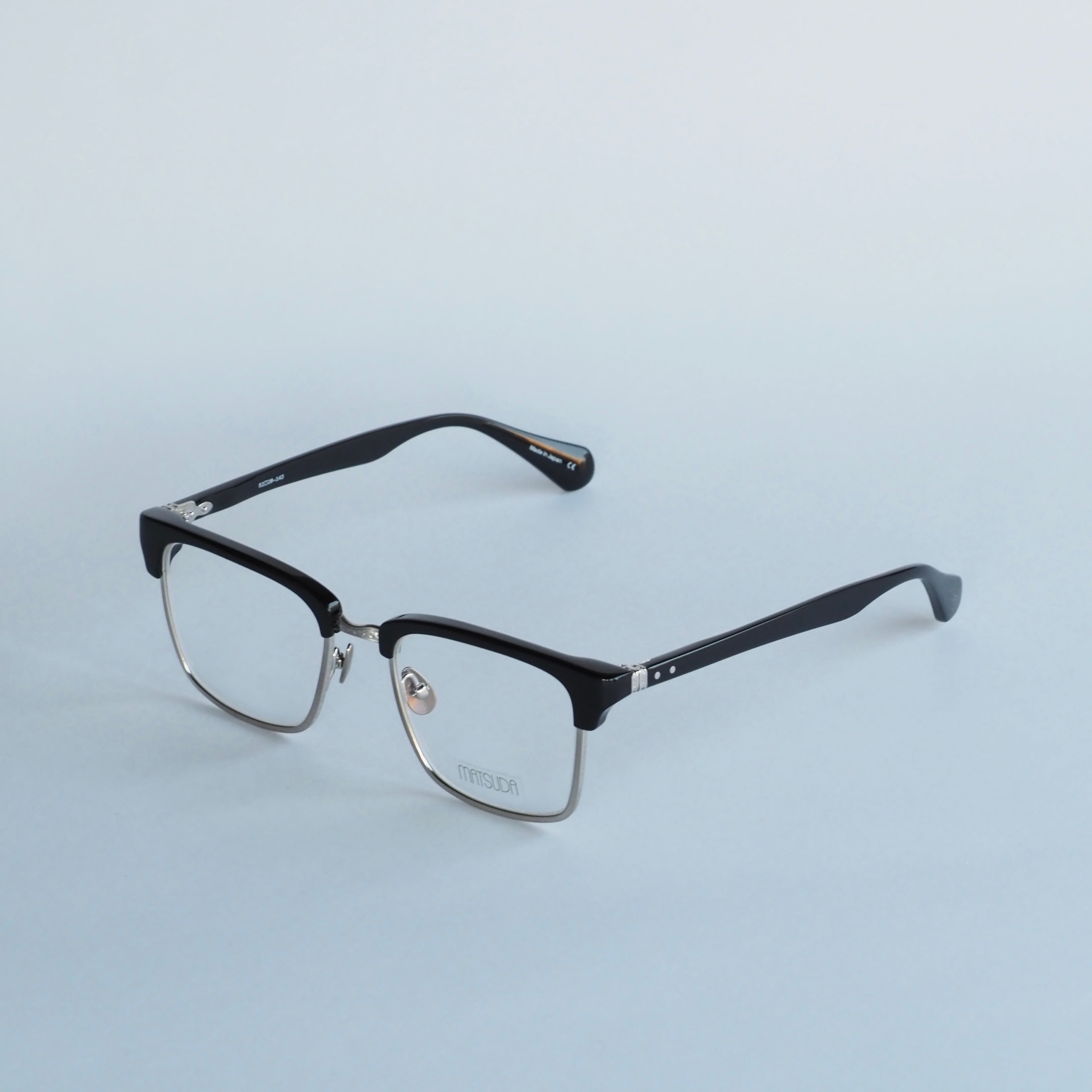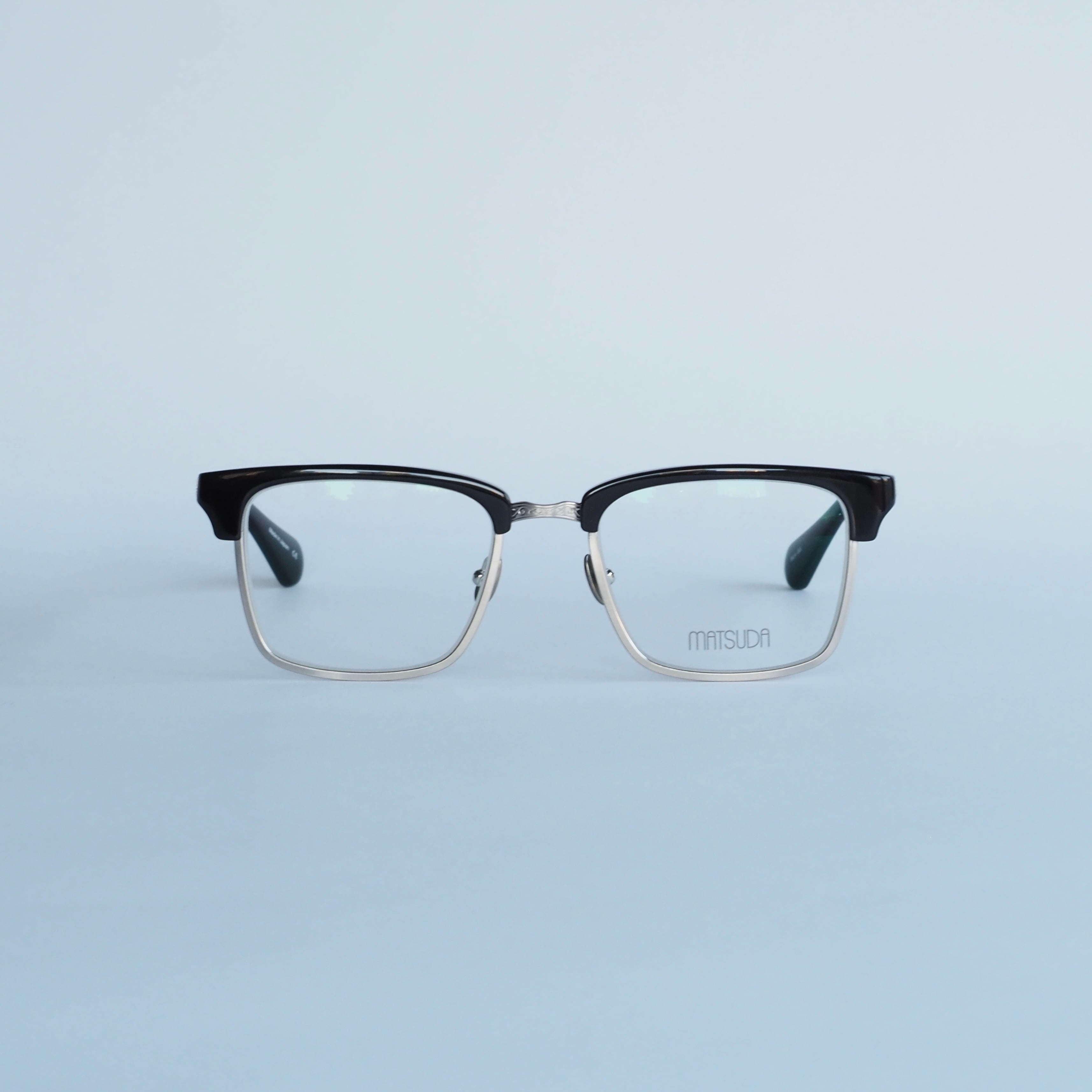 ブローラインと太いチタンリムが力強く、ややエッジの効いた形状はさらに目元の印象を引き立てます。サーモントタイプ特有のマスキュリンな空気感が漂う逸品です。