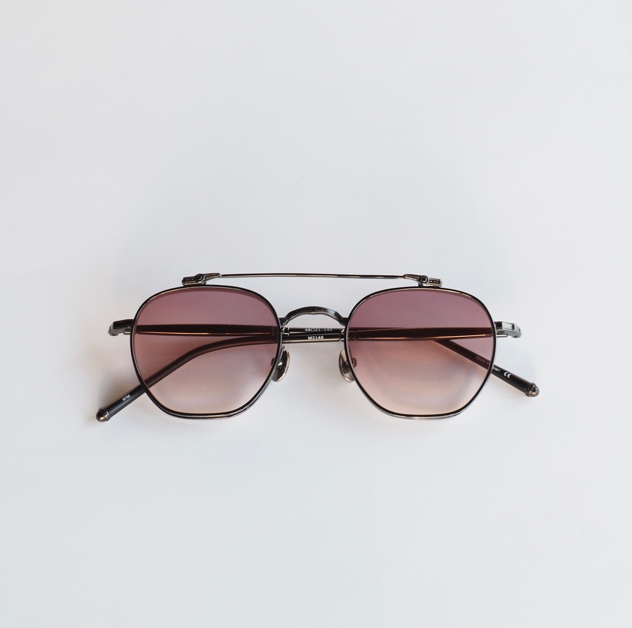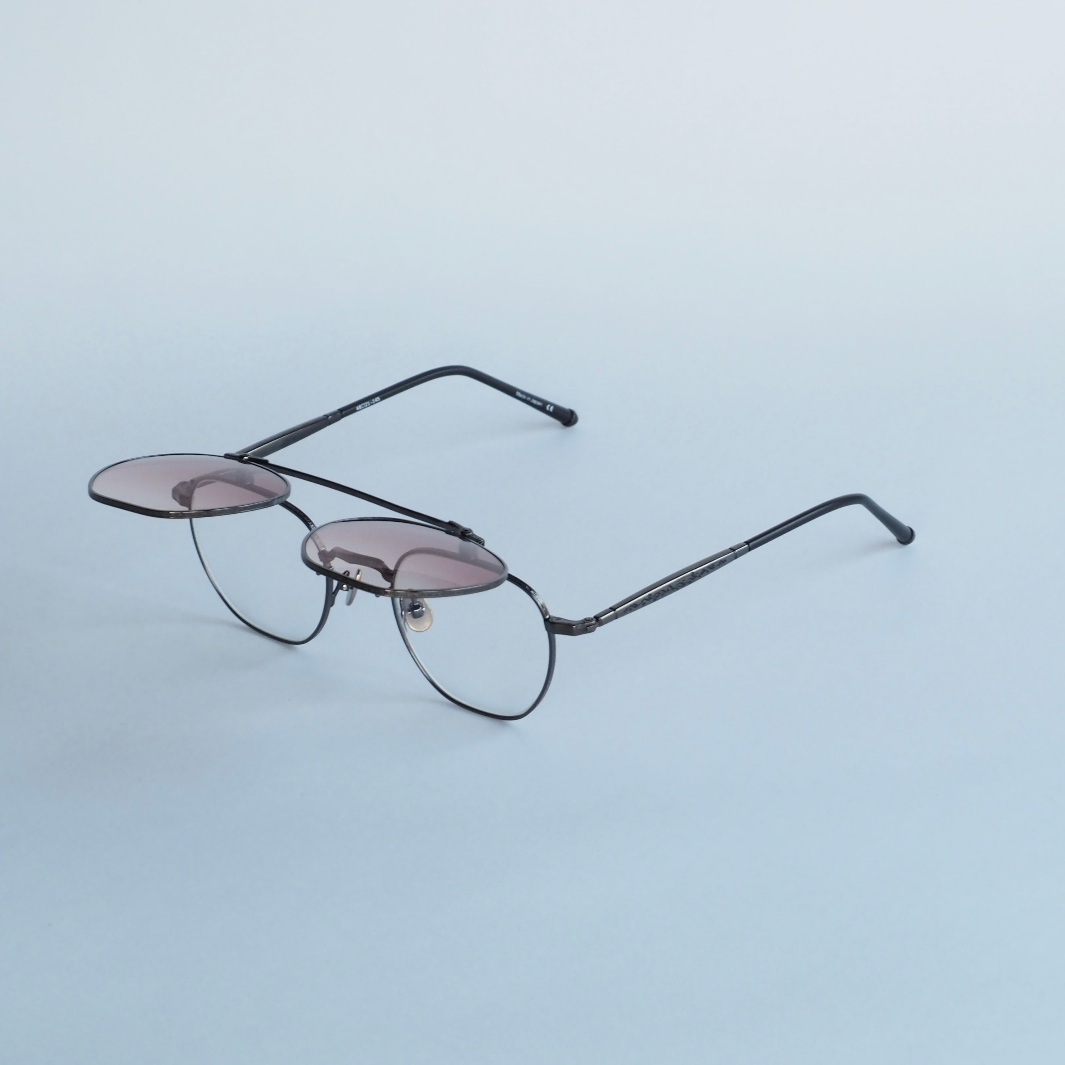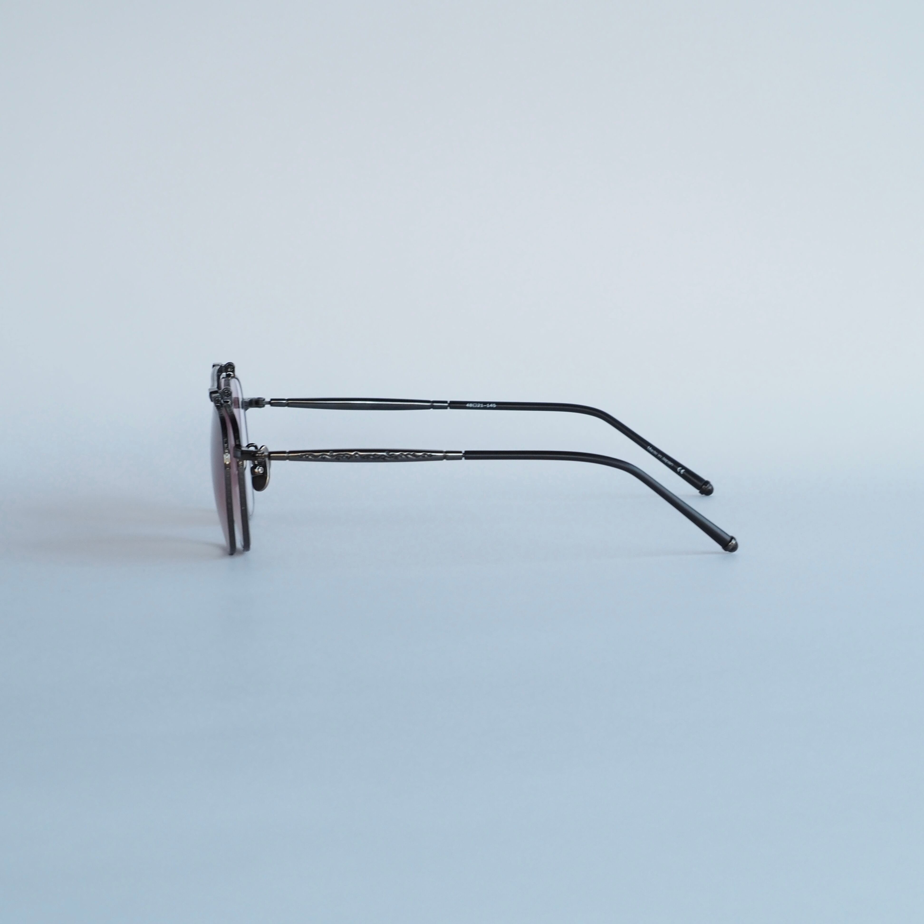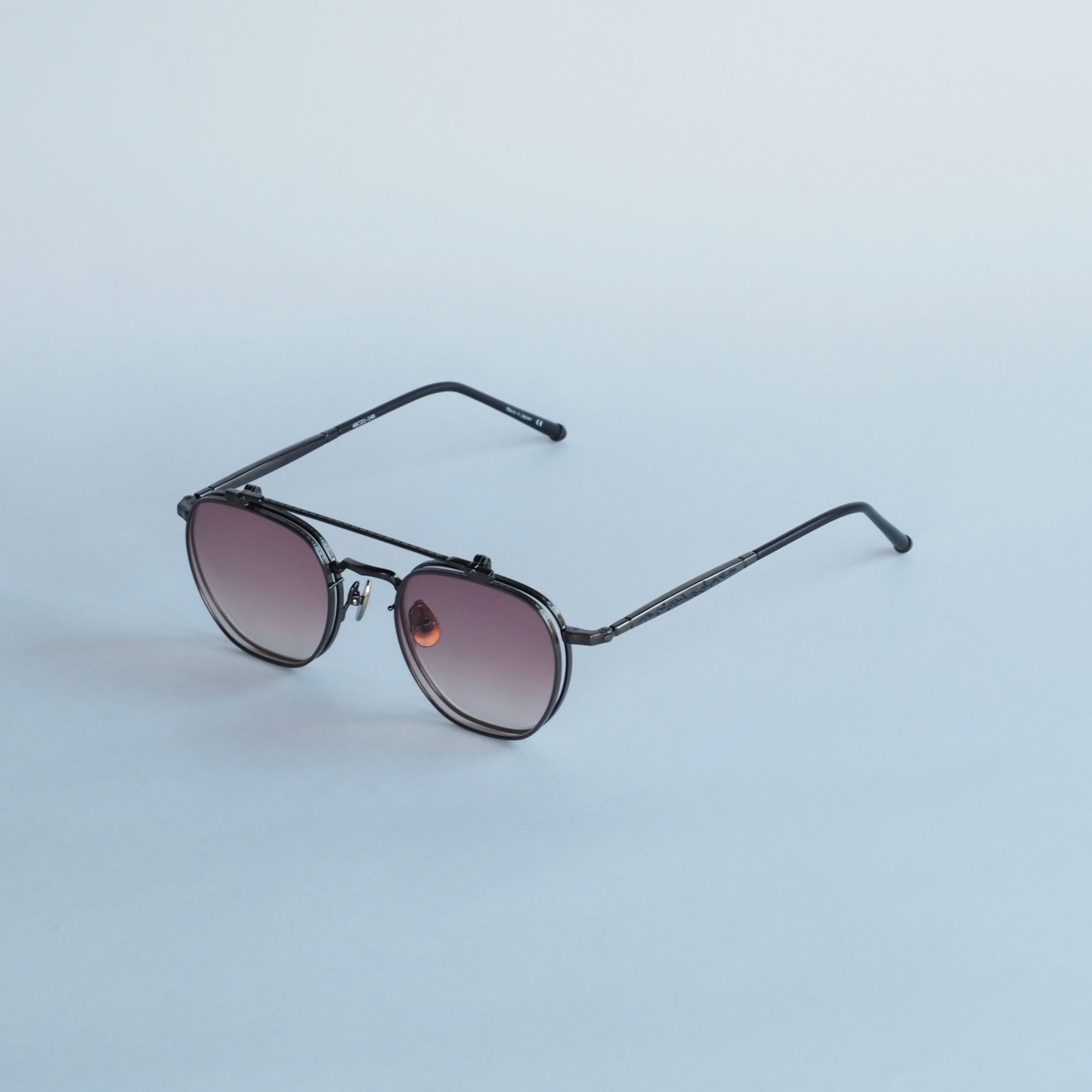 ガンメタリックカラーの引き締まった印象のメタル生地に、ローズグラデーションのカラーレンズが目元を華やかに彩ります。