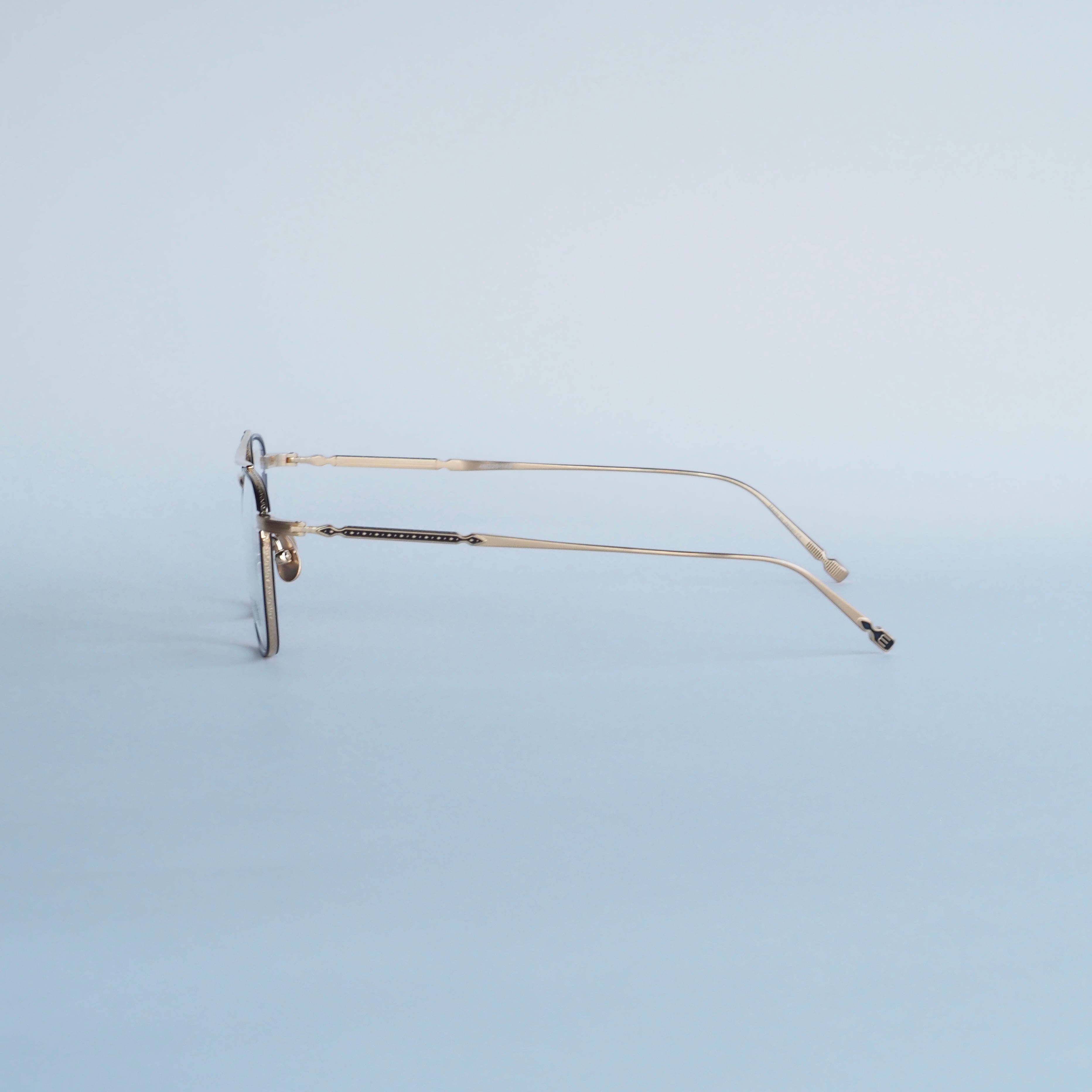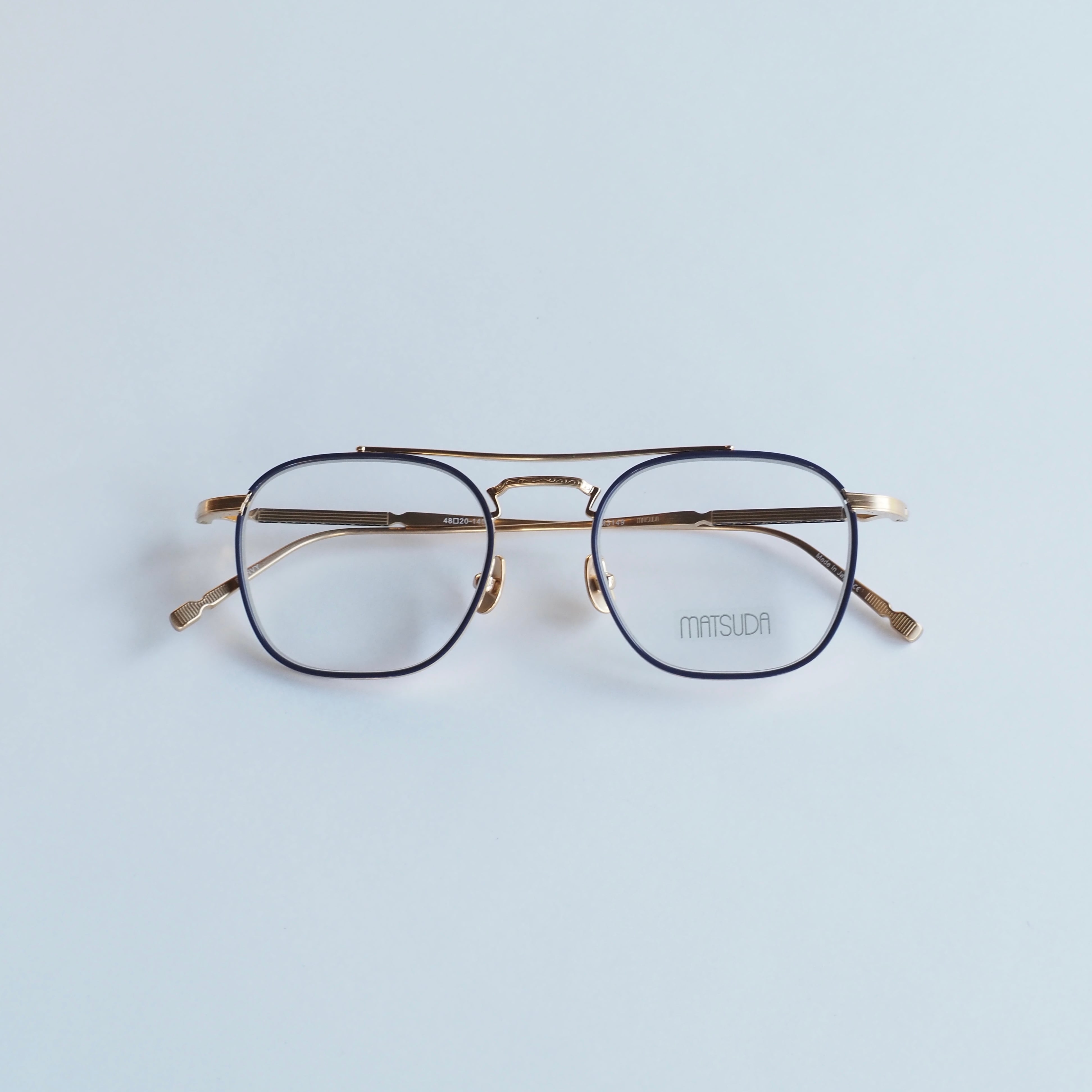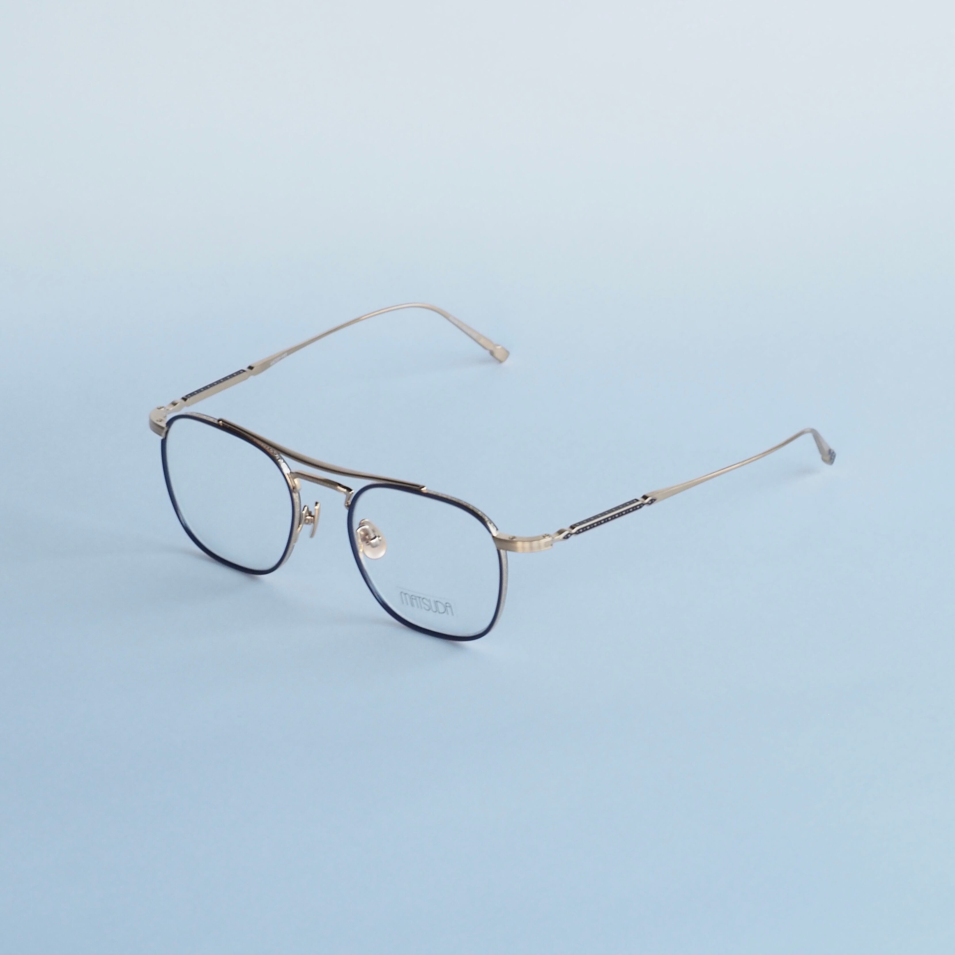 ゴールドのフレームにネイビーカラーのセル巻きを施すことによって、メタルフレーム特有の硬質感が和らぎ、洗練された印象で性別や年齢を問わずお使いいただけます。
