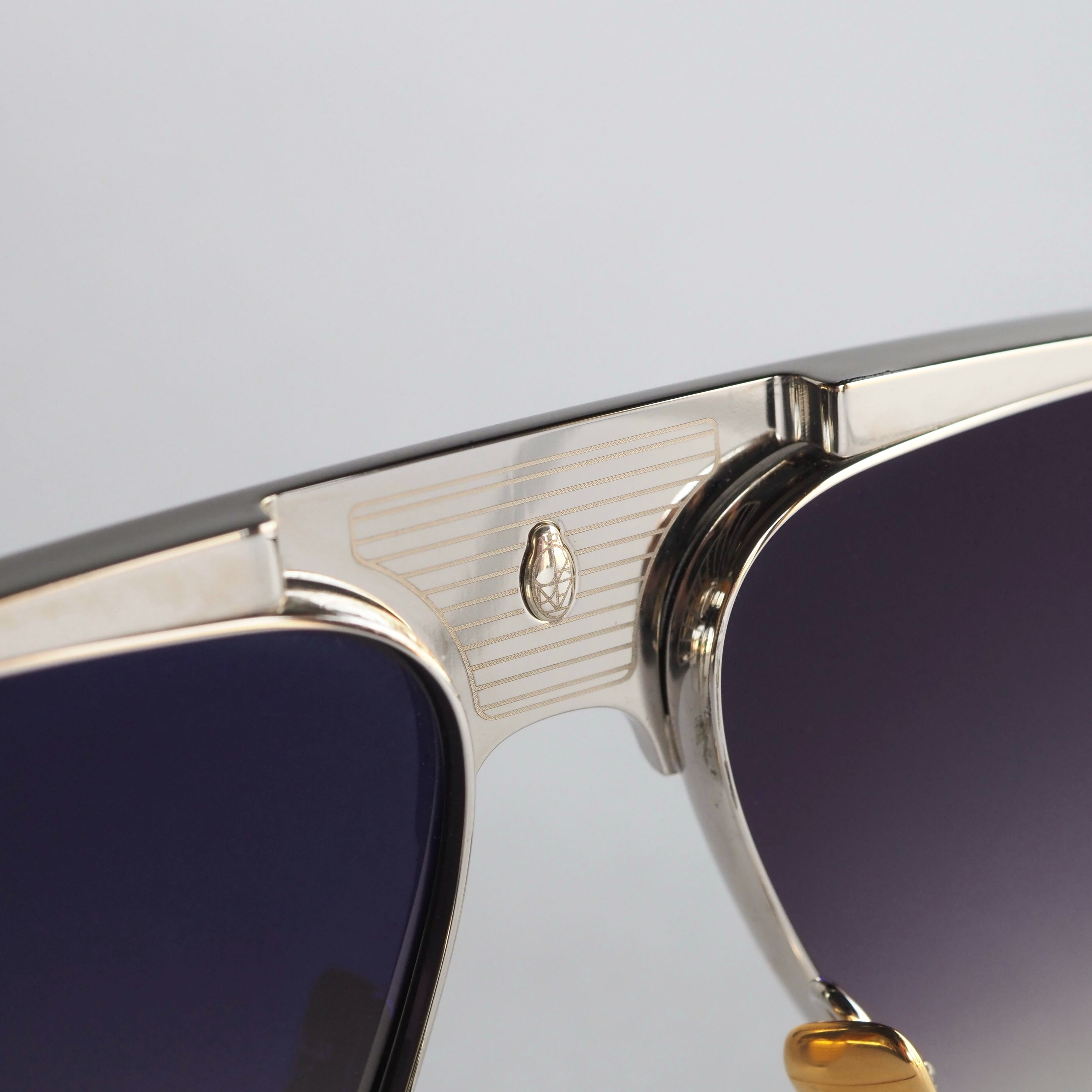 フレーム内側にはアールデコにインスパイアされたヘアライン彫金と立体感のあるブランドロゴが施される。