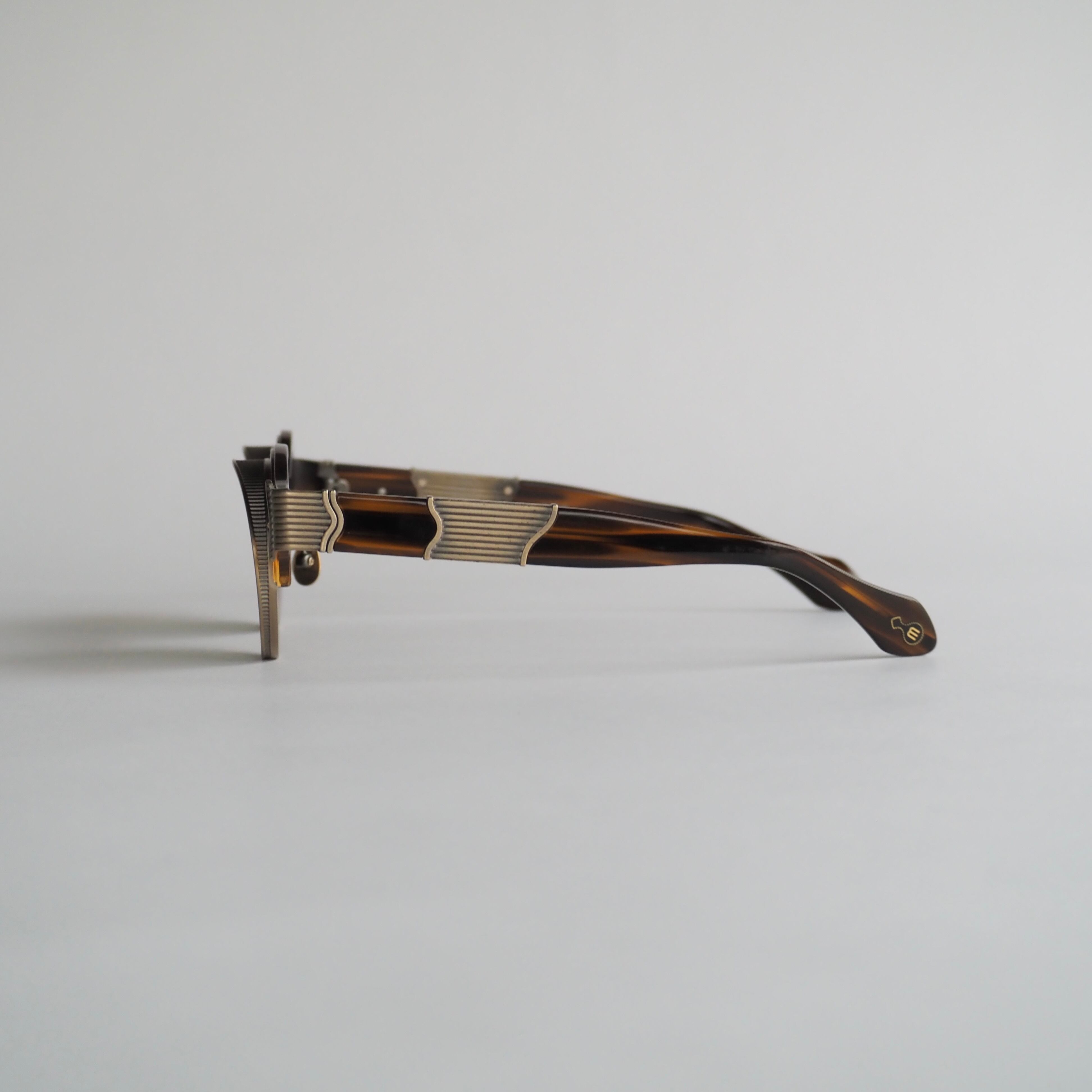 フロントは鼈甲柄のブラウンのアセテートと落ち着いたクリアオレンジのアセテートを組み合わせたツートンカラーです。