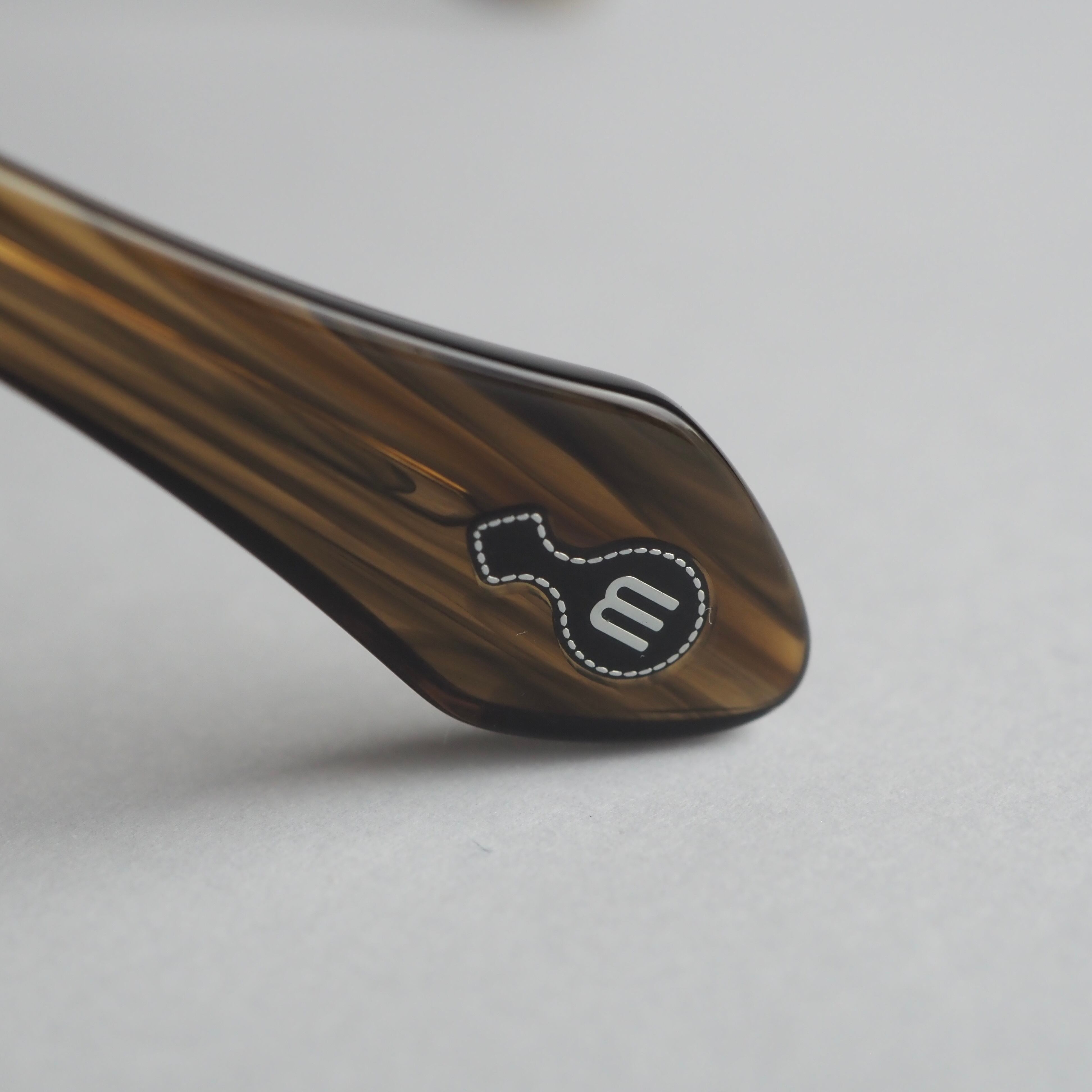 フロント部分のアセテートは段差が出るように削られており、奥行きのある立体感が際立ちます。
