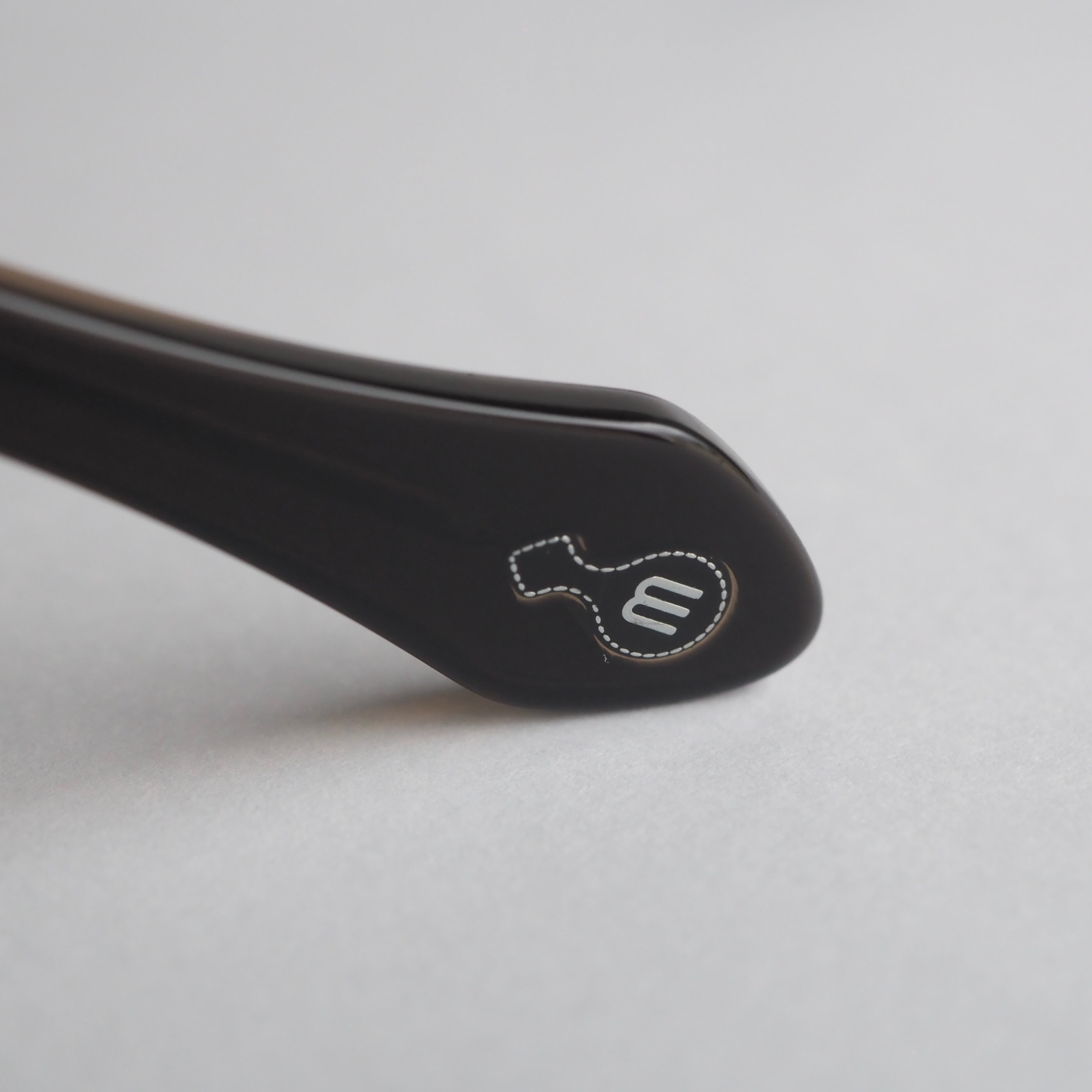 ブラックのアセテートを基調とし、グレーブラウンのアセテートが貼り合わされています。