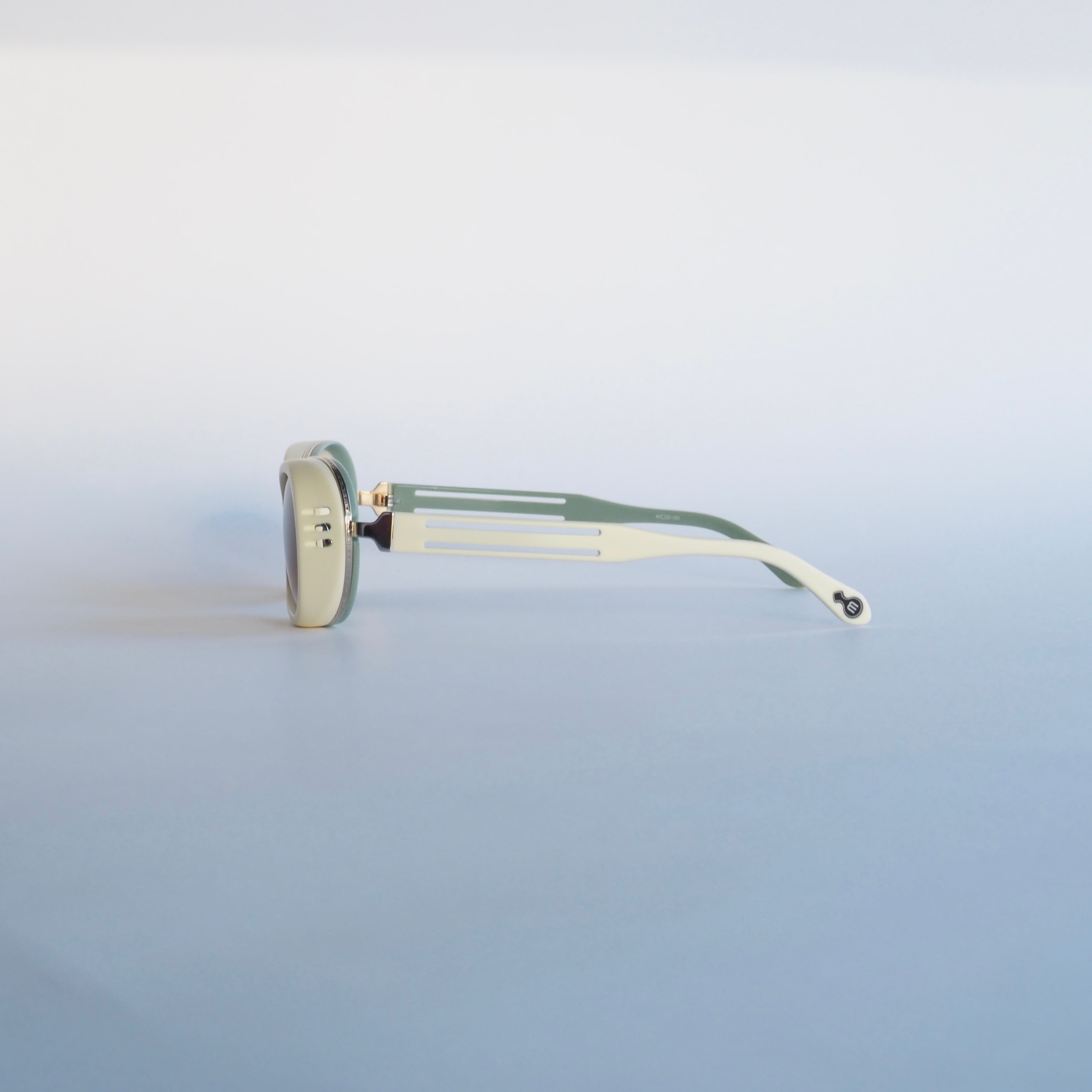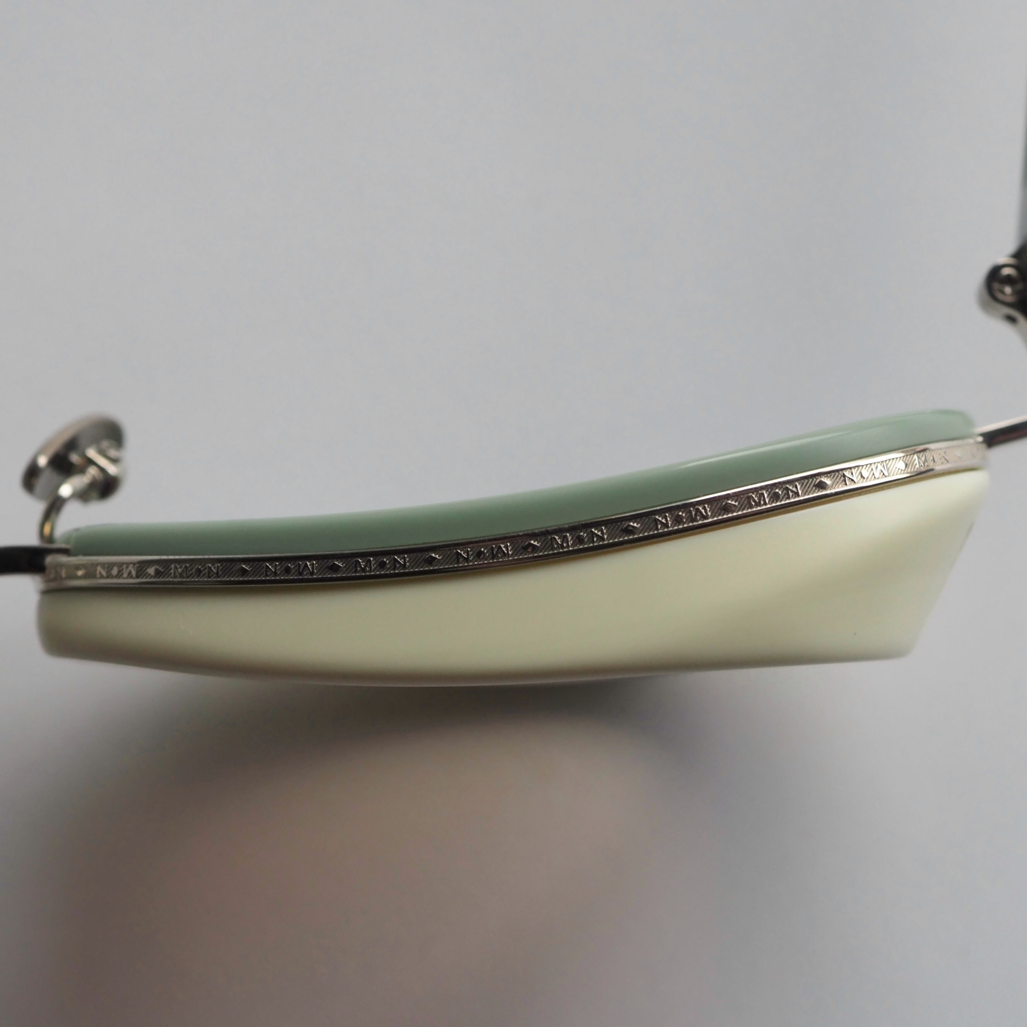 エクリュカラーとペールグリーンのカラーリングにより、重厚感溢れるデザインを程よくマイルドにまとめ上げた技アリの表現で、MATSUDA独自の世界観を体感できるアイコニックな一本です。