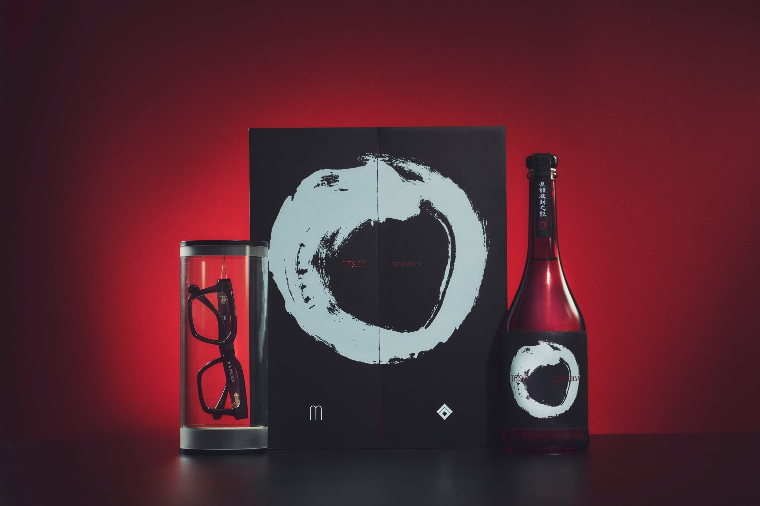 外箱には書道家『吉川壽一』氏が龍を模した円を揮筆。同封される眼鏡ポーチと大判セリートにも同様のデザインがされる。