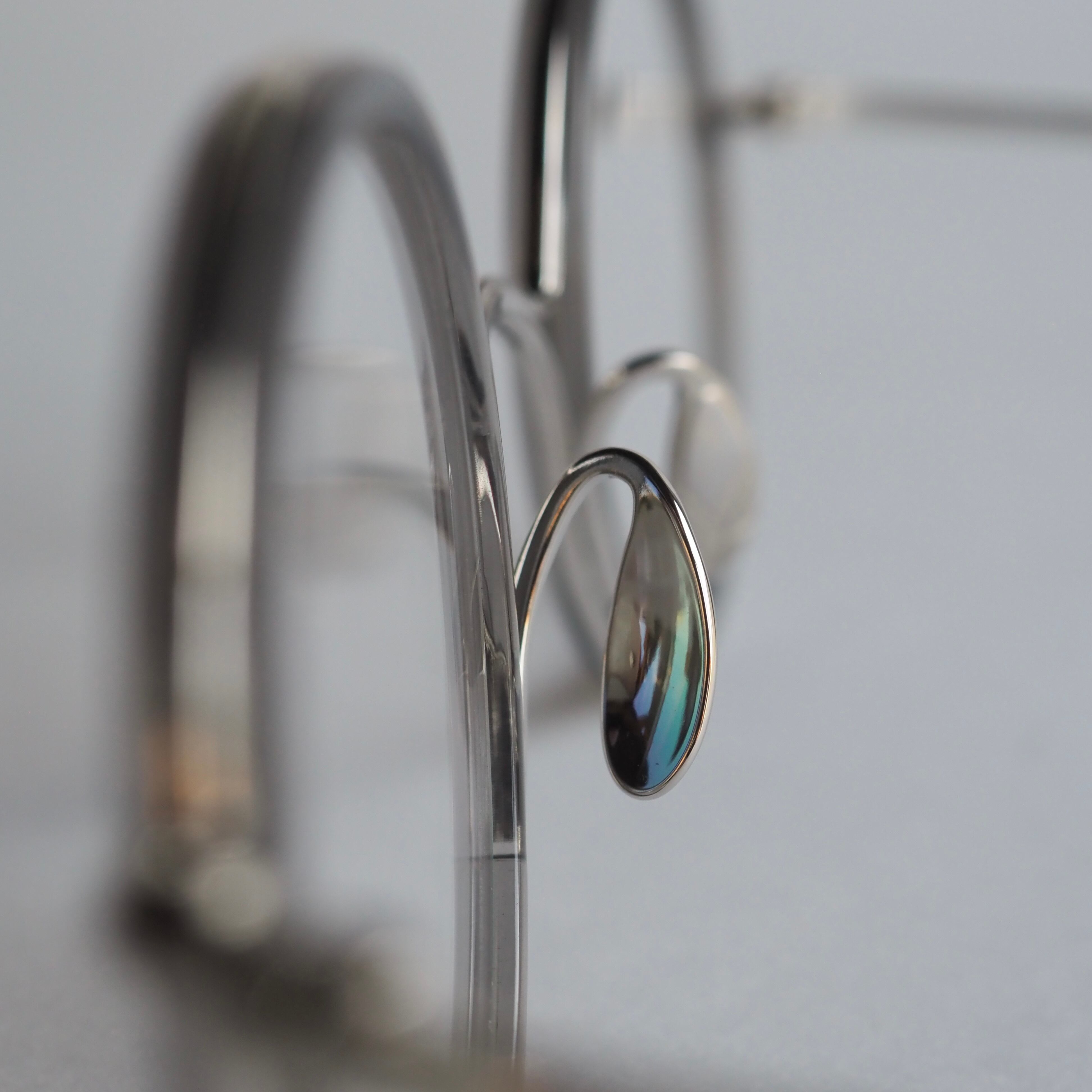 テンプルとフロントの接合部を境目に、二本の線でフレーム全体を構成する「ダブルダッチ構造」を採用しています。