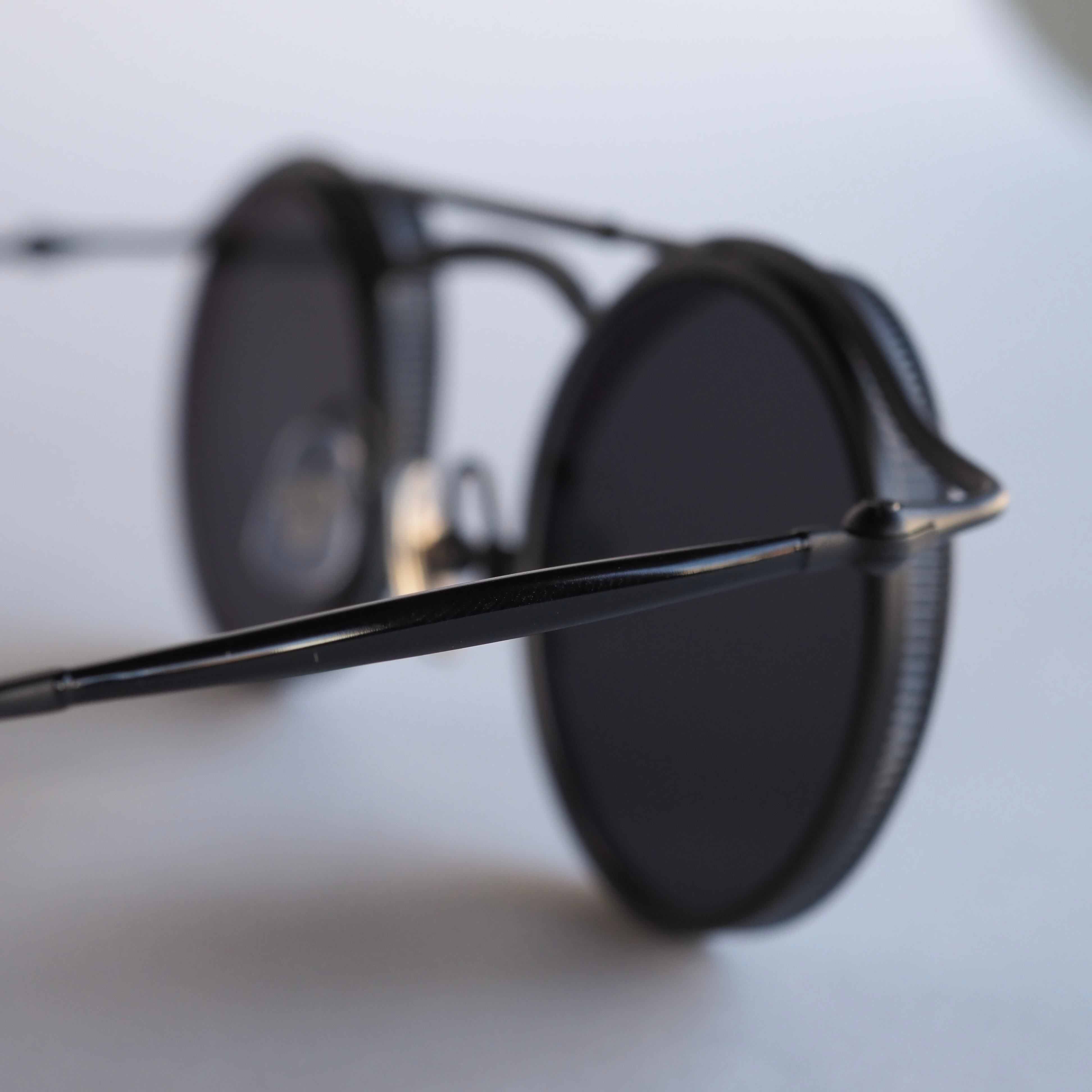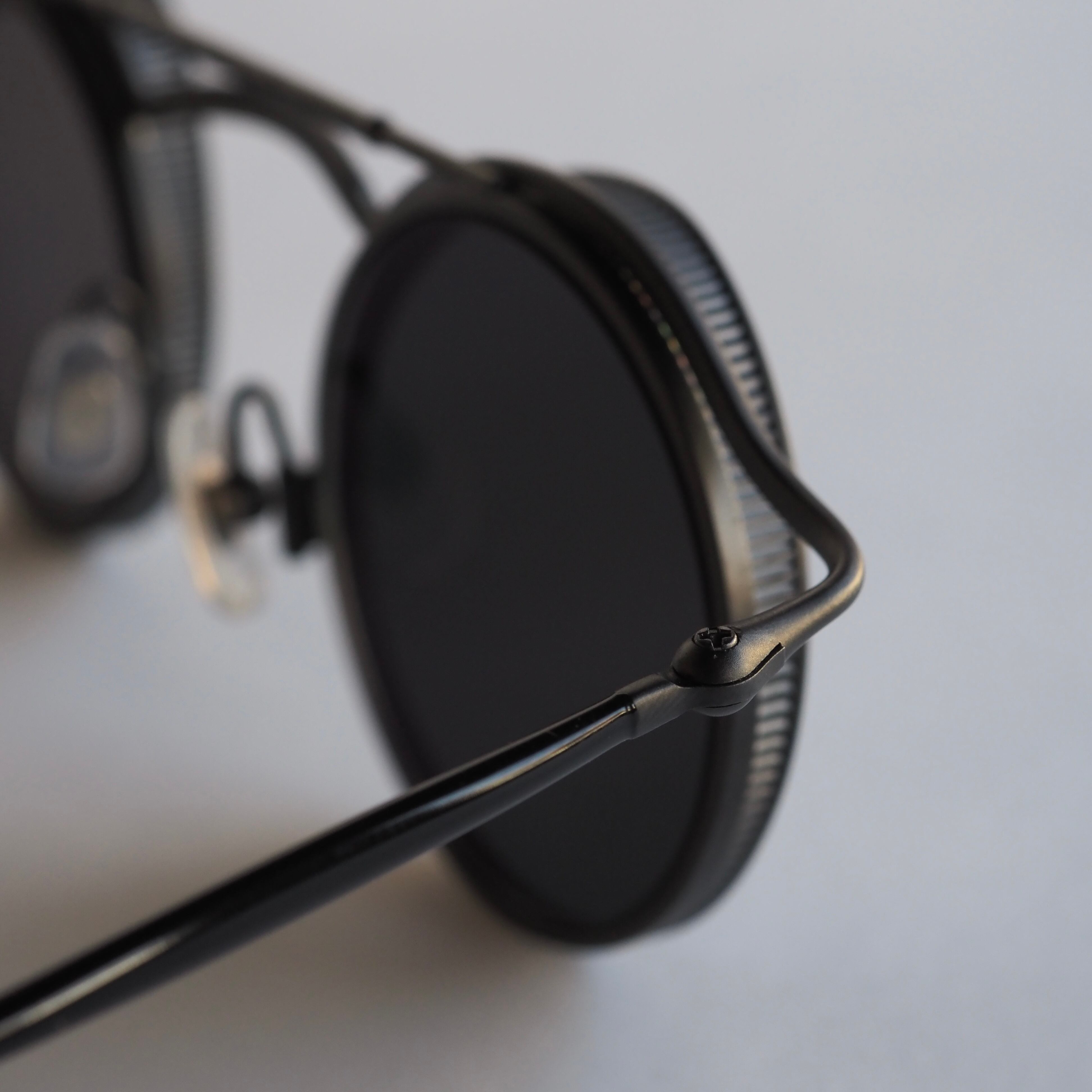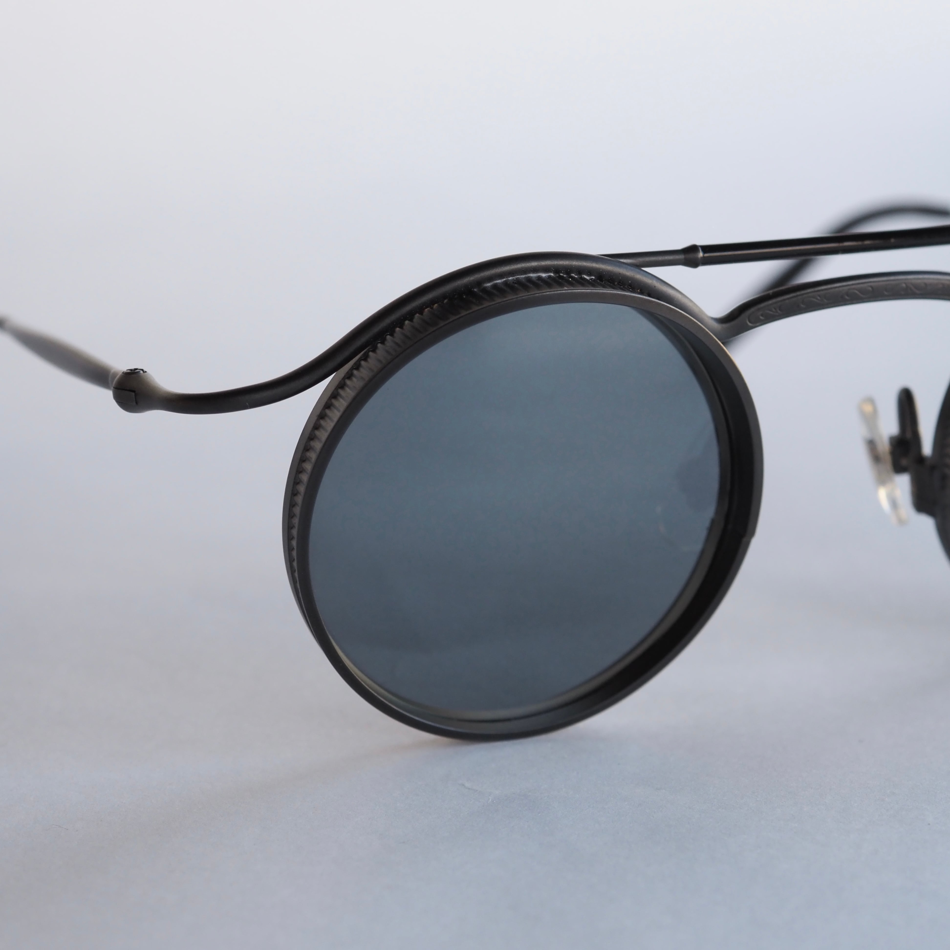 マットブラックを基調に、ブラックの七宝仕上げがテンプルやトップバーに施されることで、シンプルでありながらも奥行きのあるカラーリングになっています。