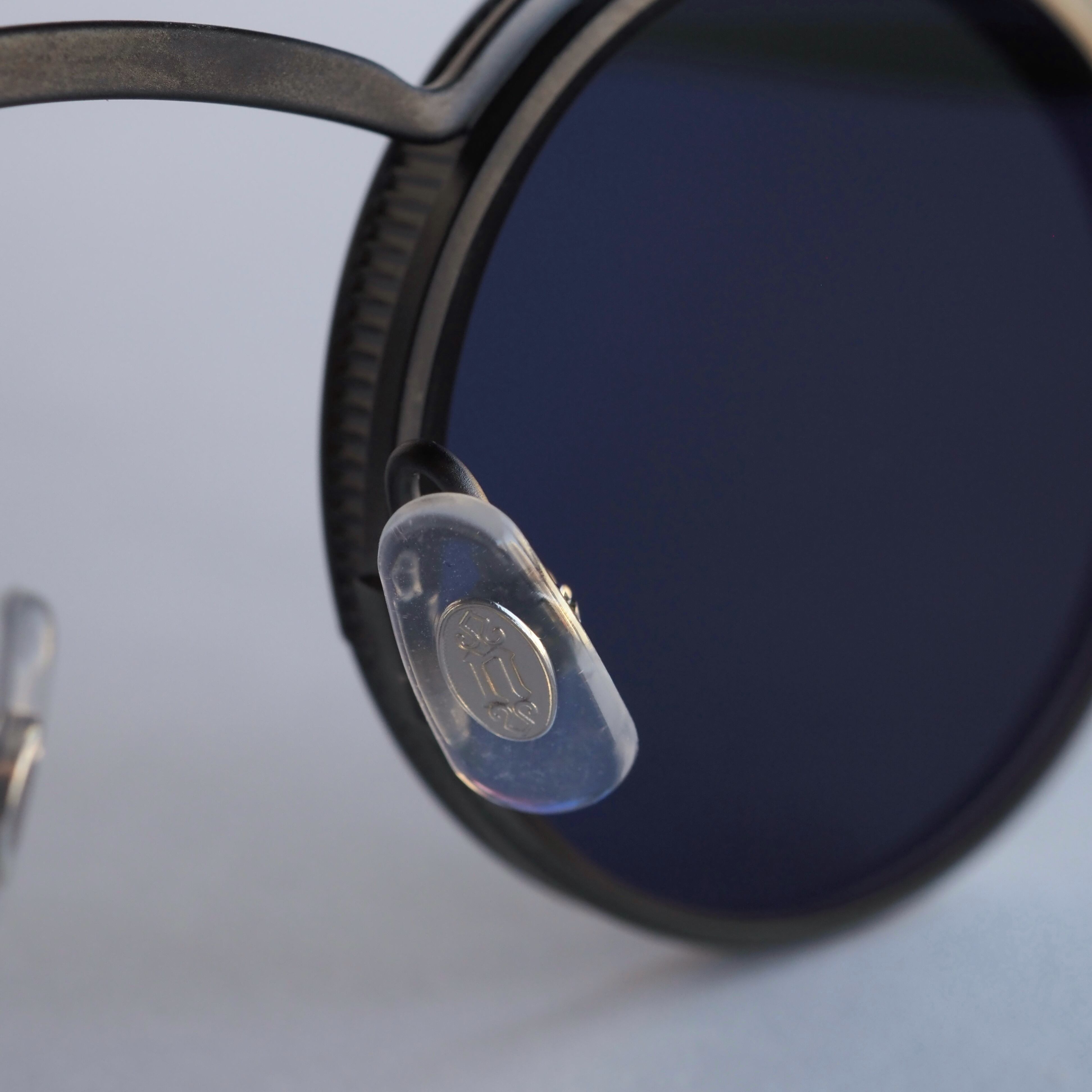このフレームで一番の特徴である上部が大きく前に出ている大胆なメタルリムは、1920年代のクラシックカーのヘッドライトからインスピレーションを受けてデザインされています。