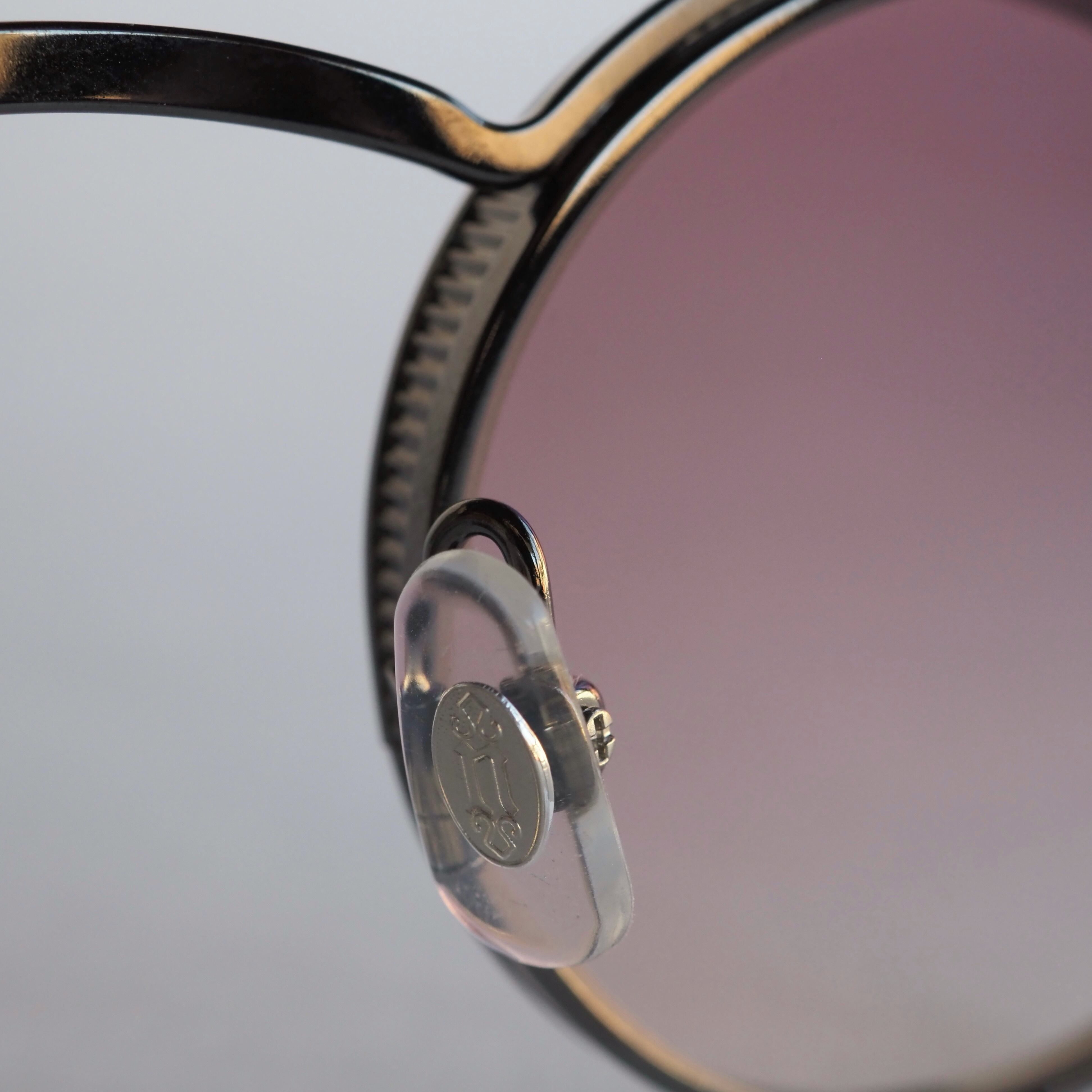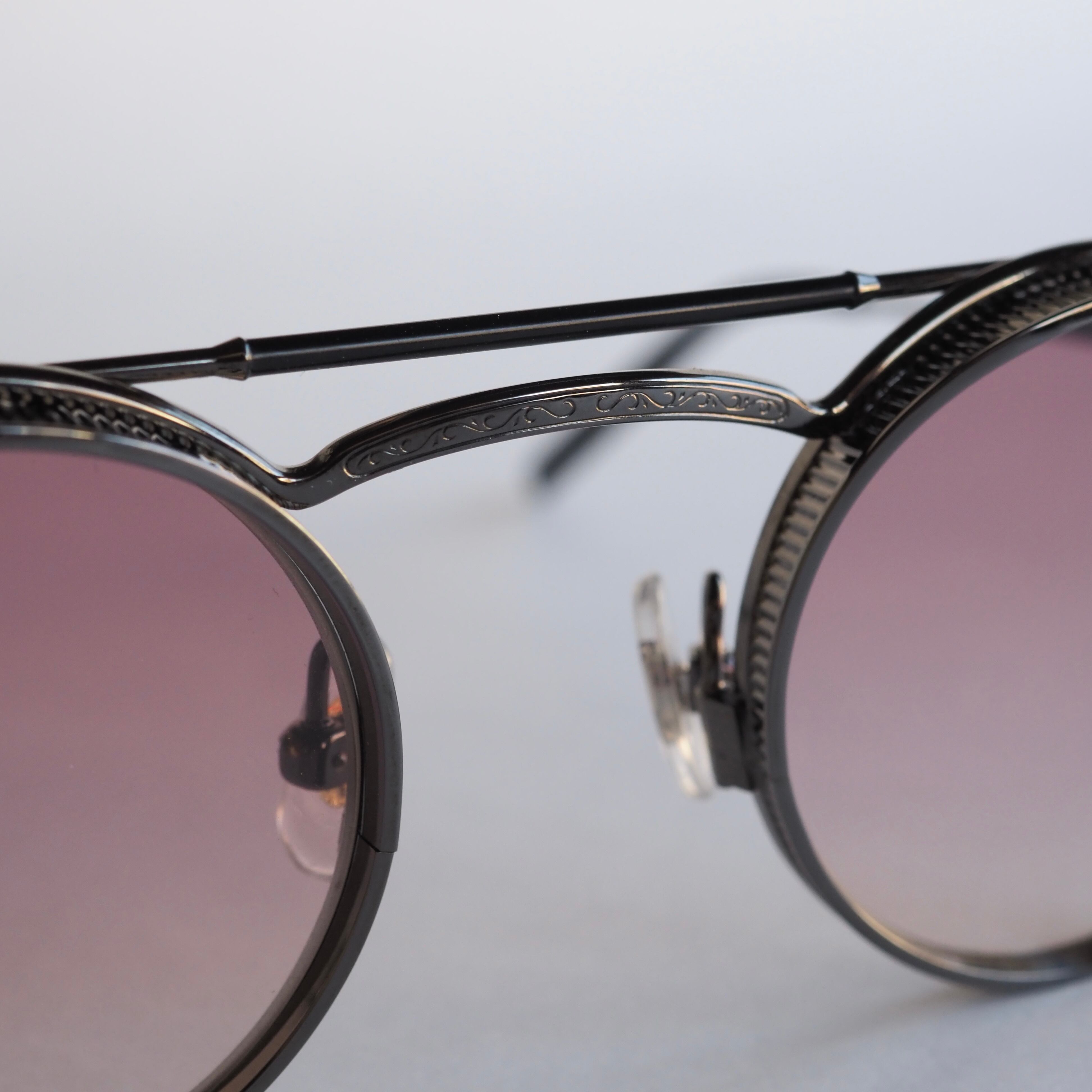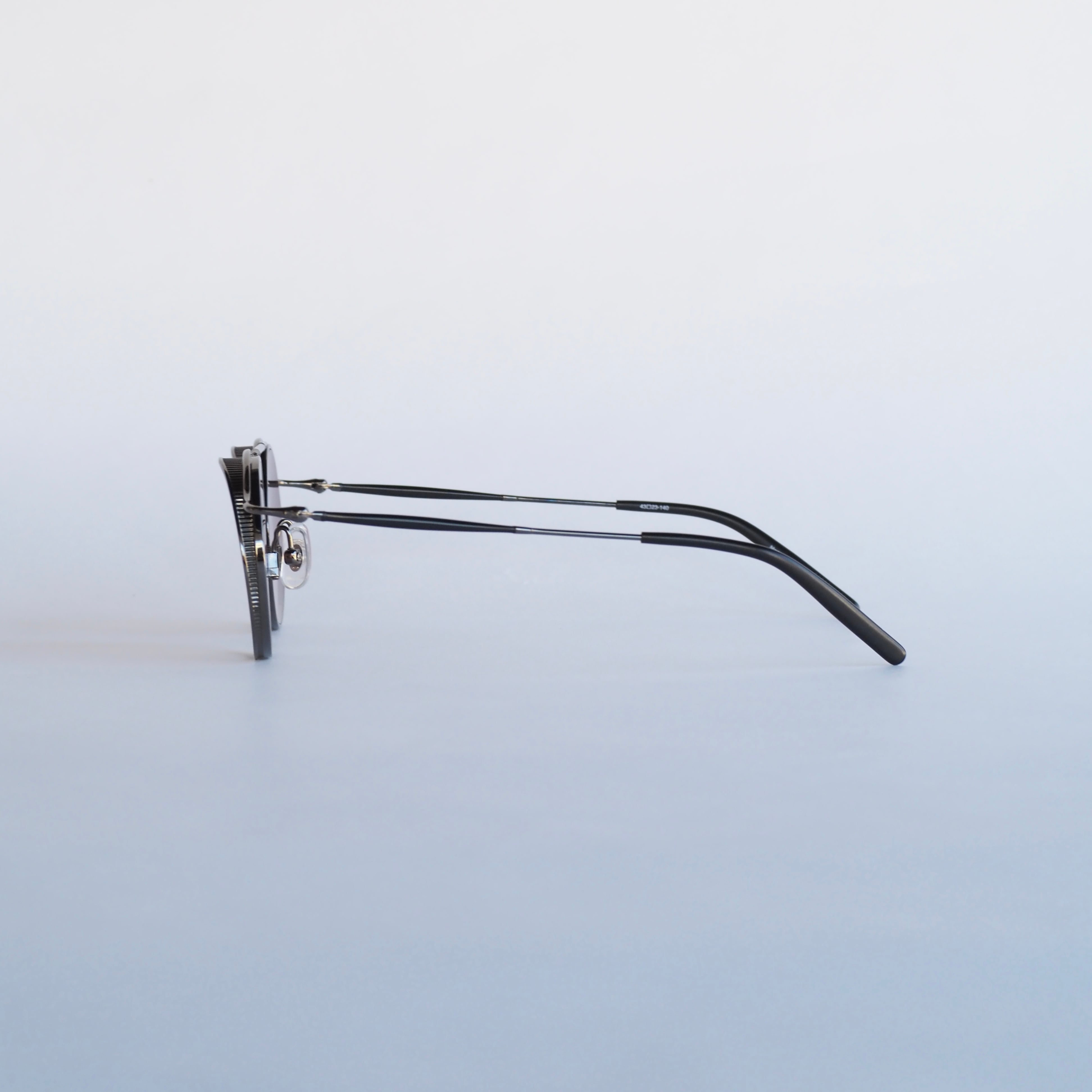 ラウンド型のレンズシェイプで、精巧なメタルディテールが光るメタルフレーム。
