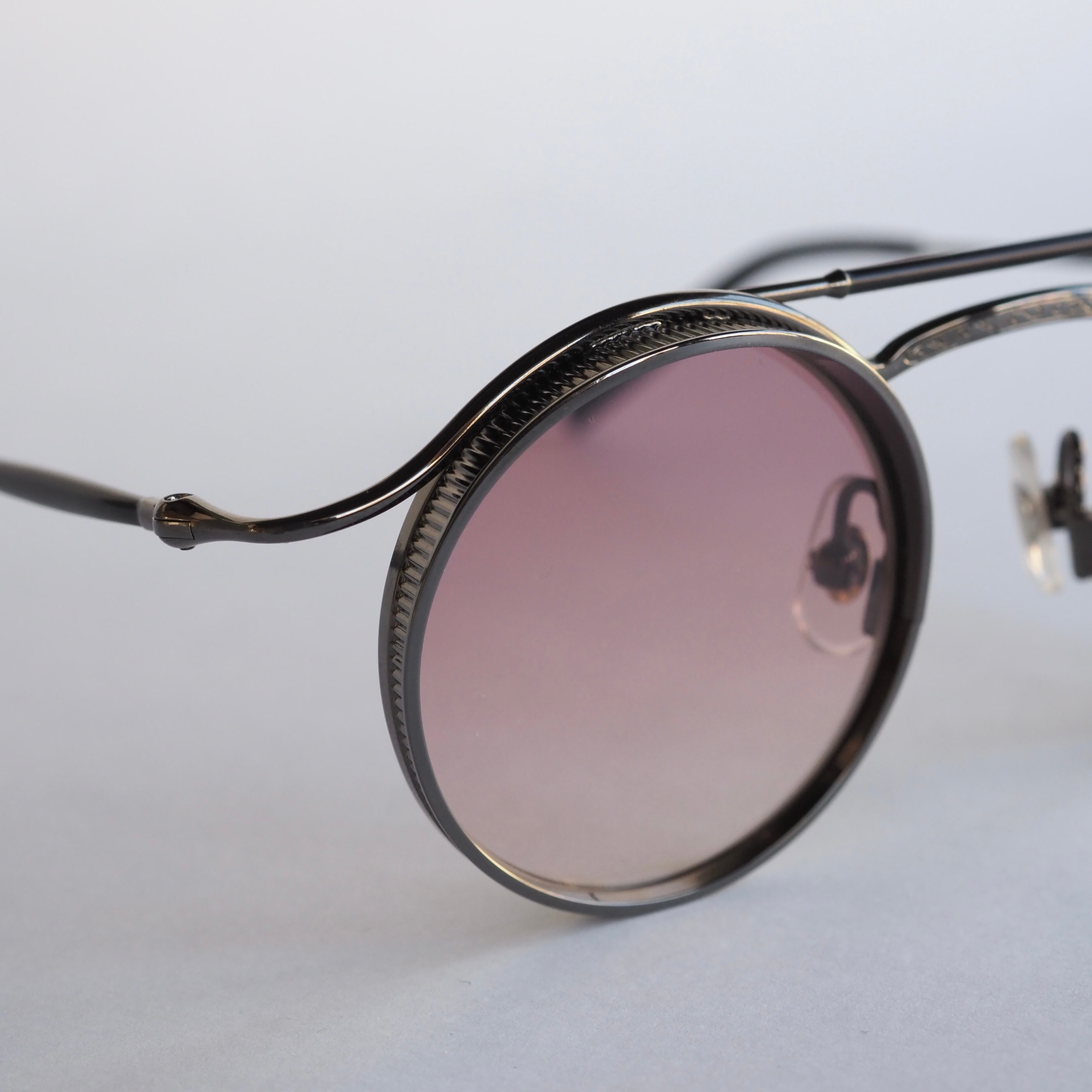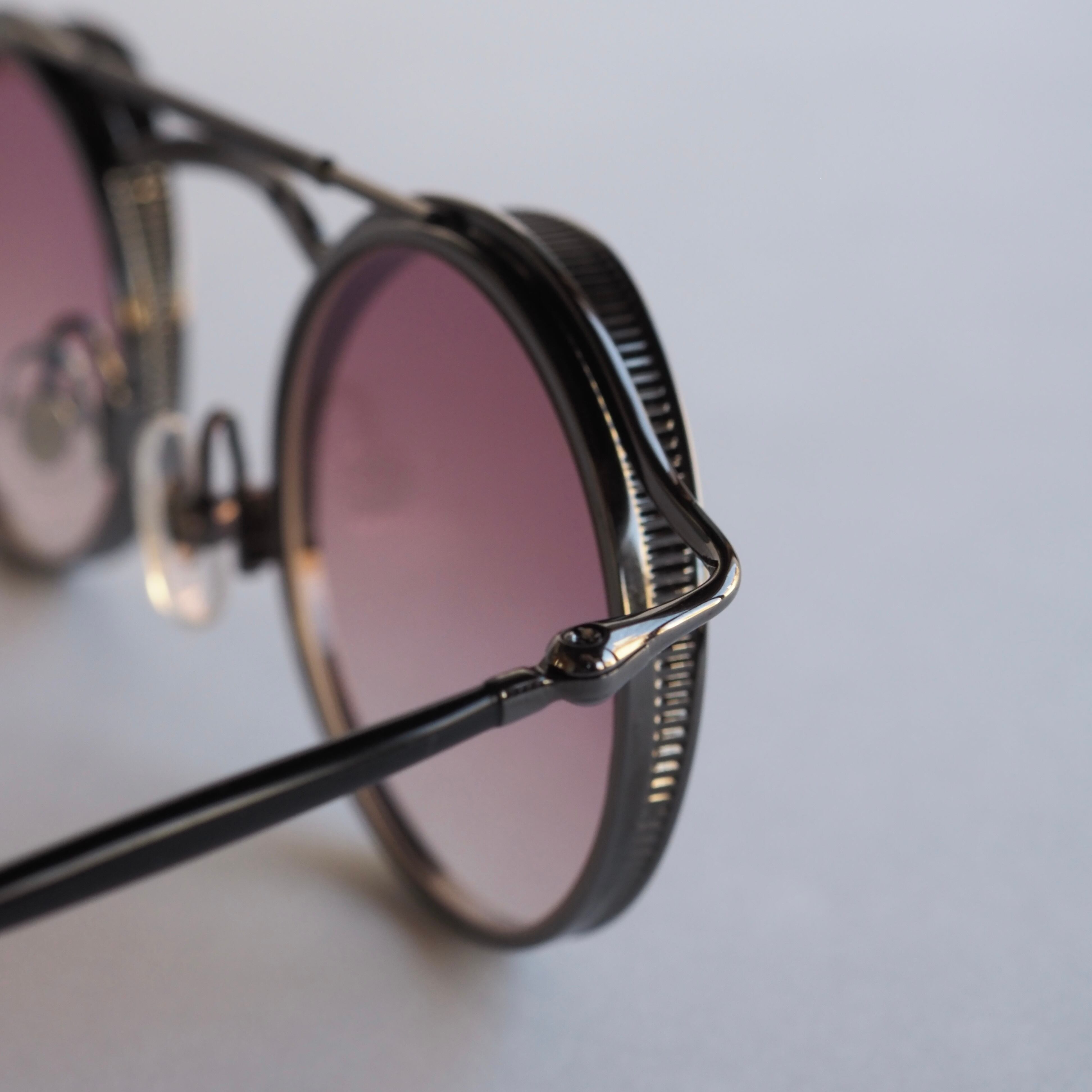 またピンクのグラデーションレンズがフレーム全体のシックな雰囲気を程よく和らげています。