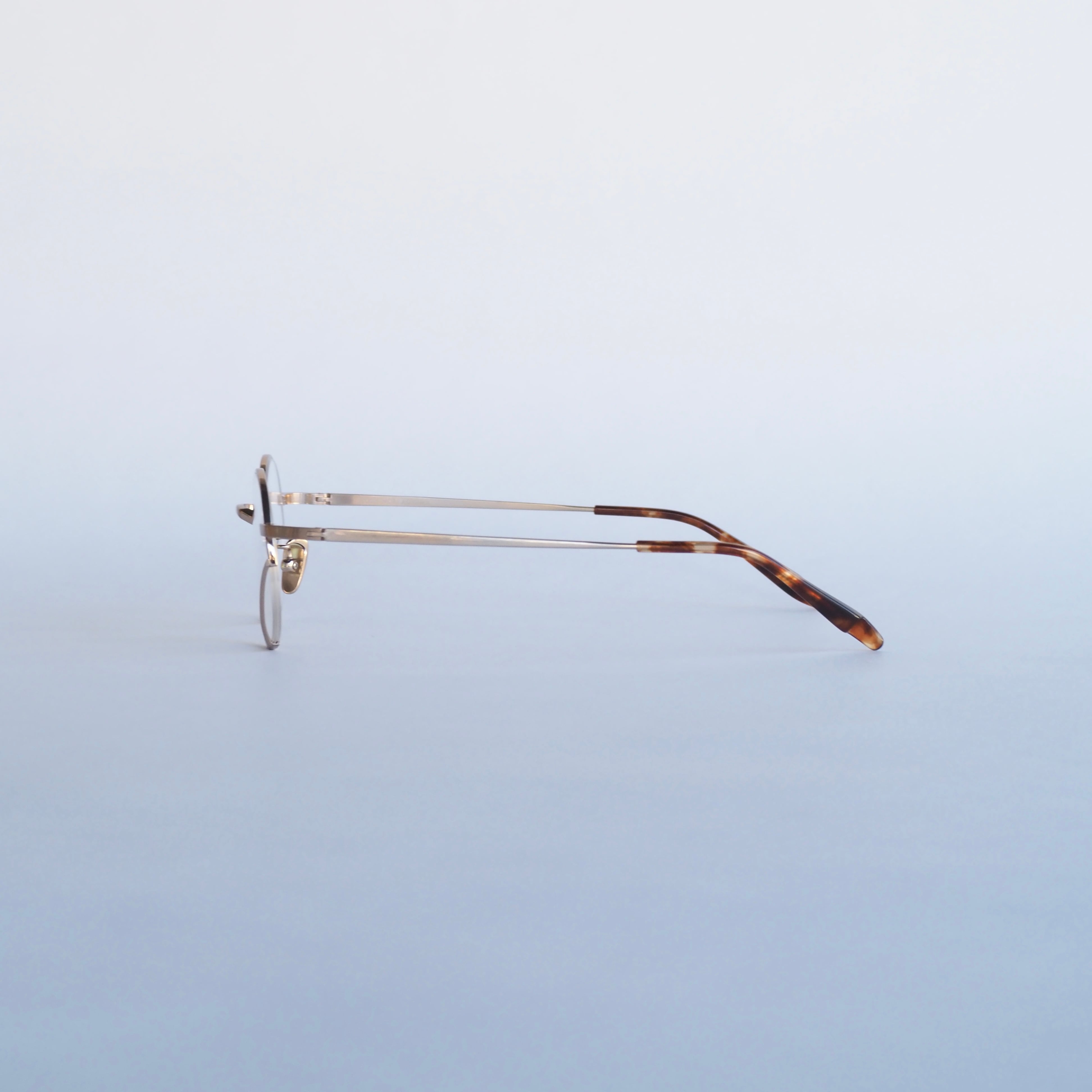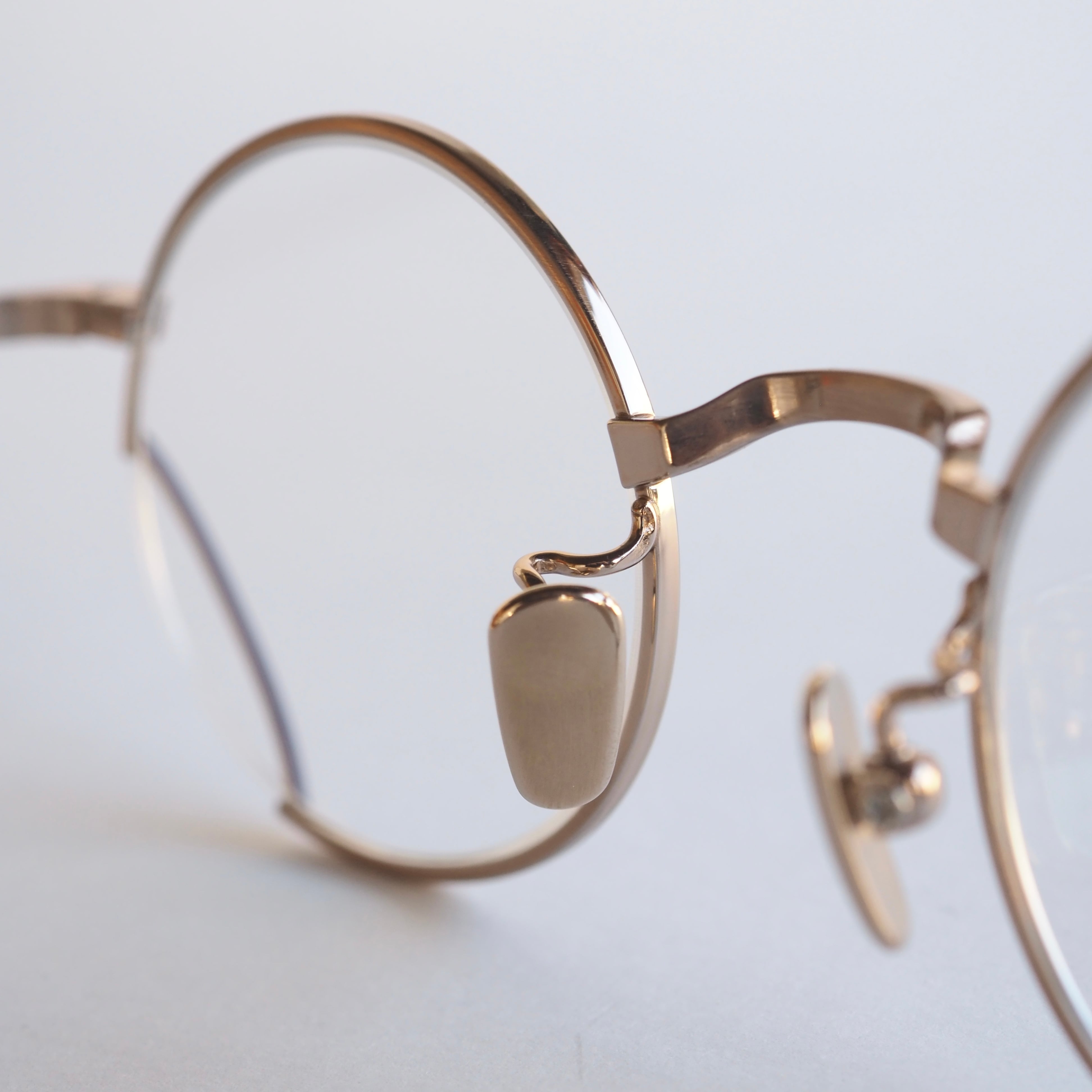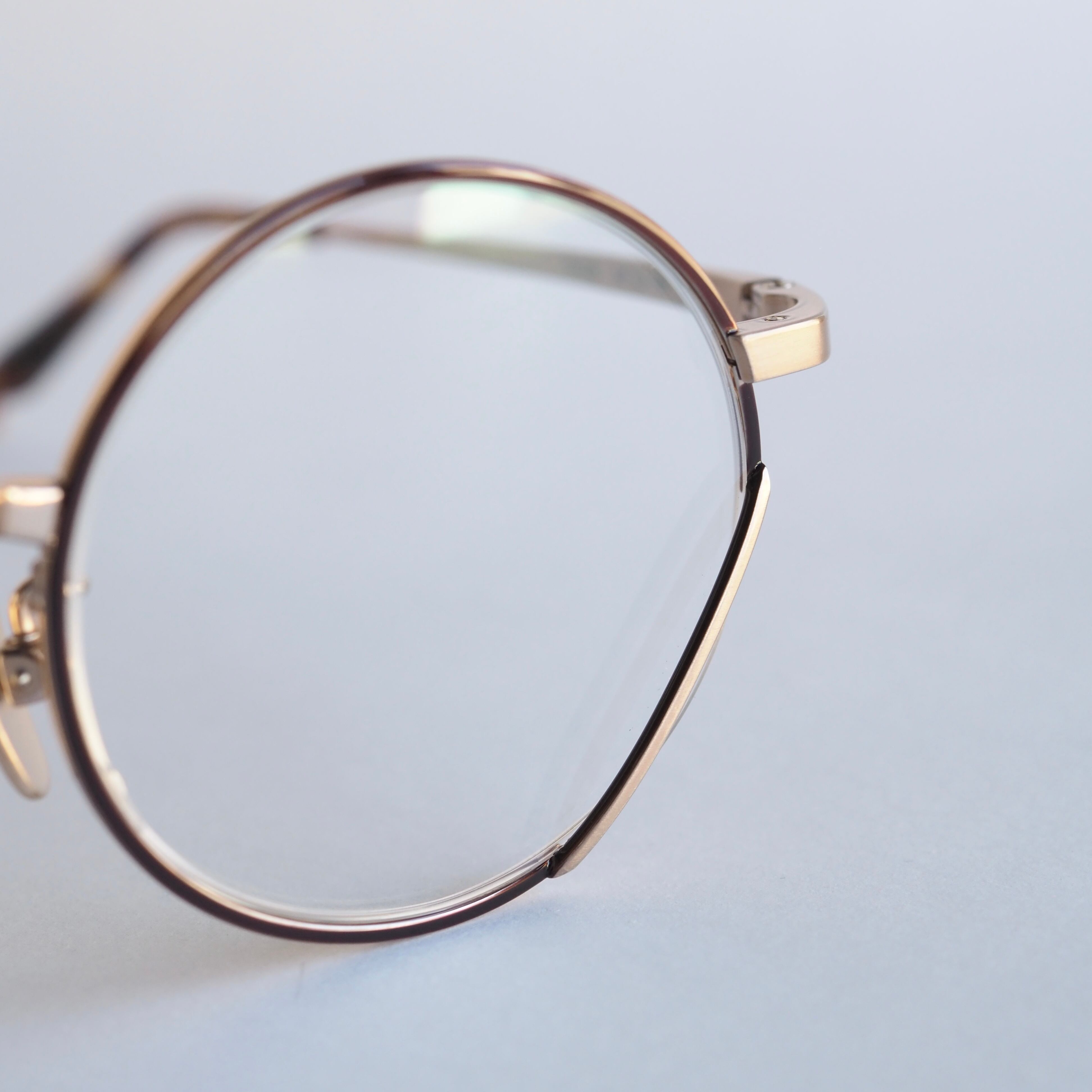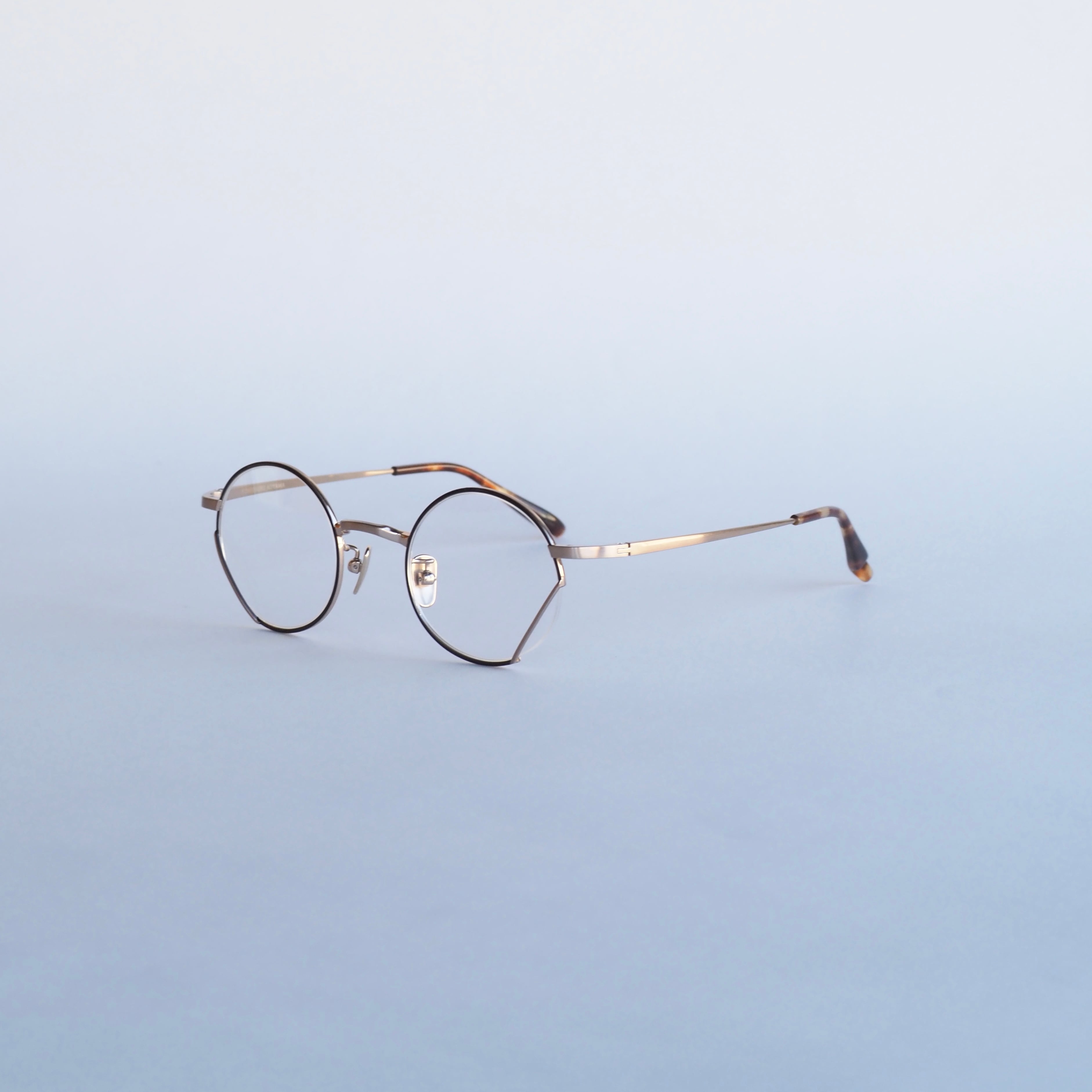ゴールドを基調にリム正面をブラウンで仕上げるカラーリングは、折りたたまれたようなデザインを際立たせながらも、肌馴染みよく上品な印象を演出しています。