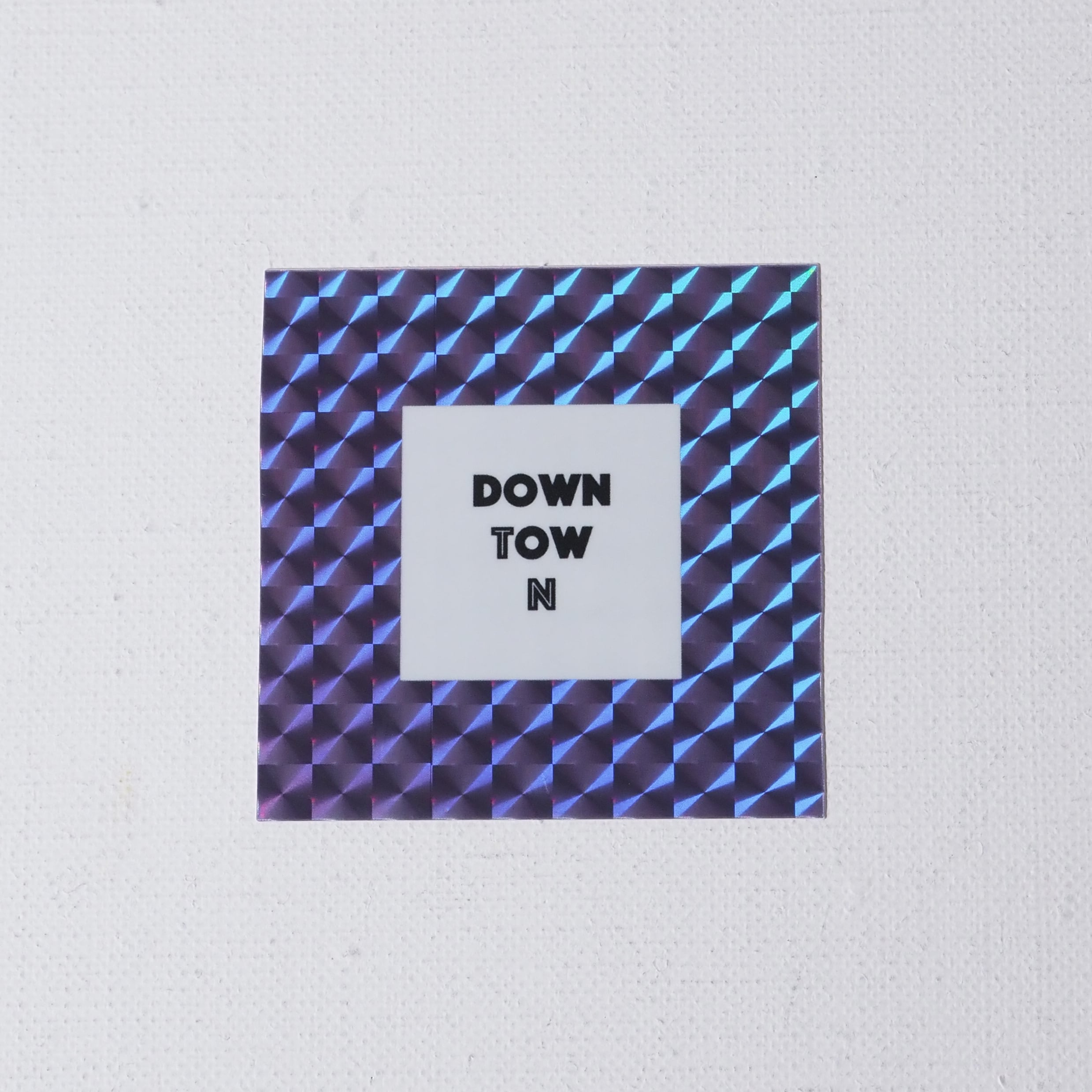 DOWNTOWNロゴを中央に配したホログラムステッカー。